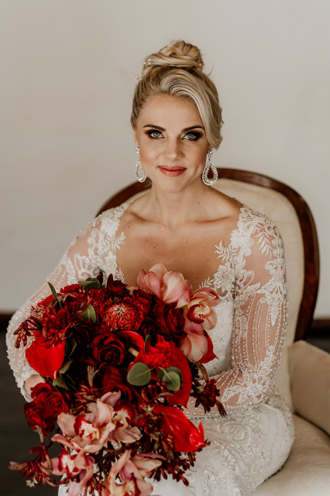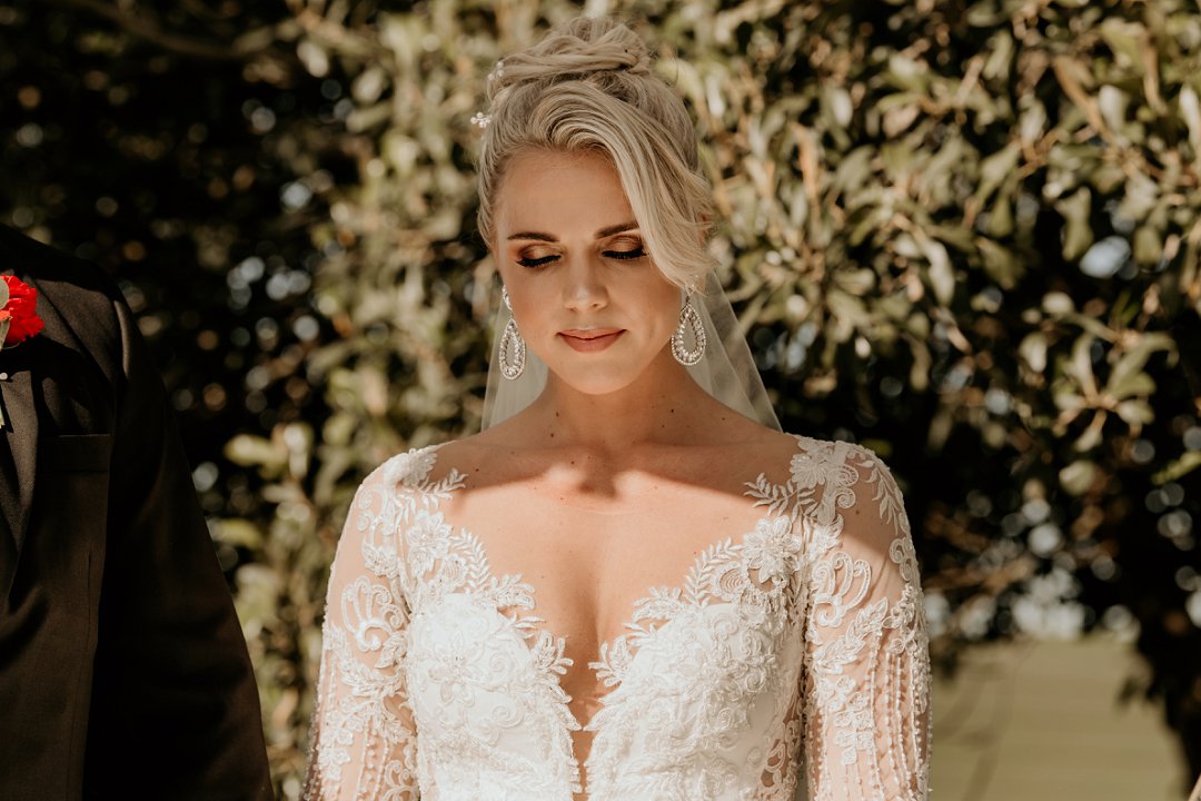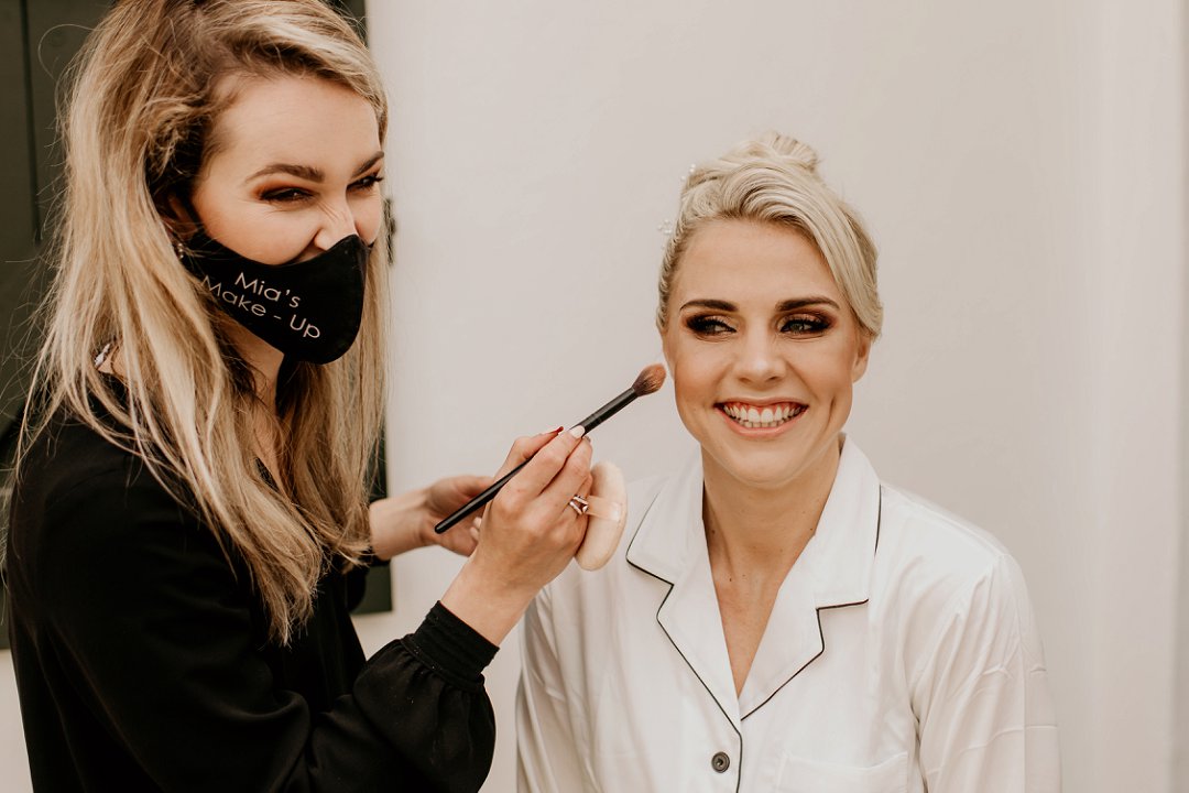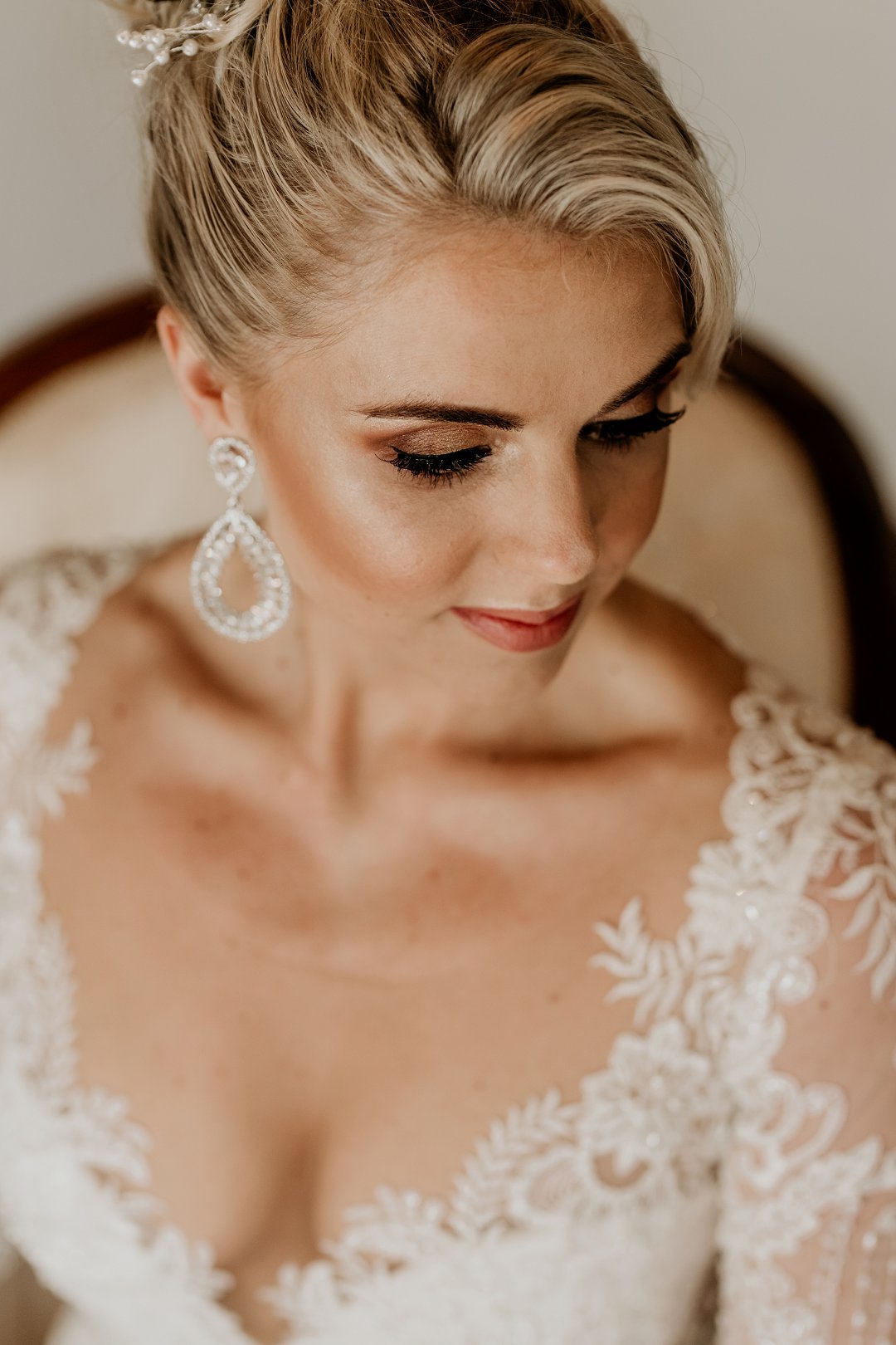 Die beeldskone bruid se trou grimering en hare was stylvol gedoen deur die professionele haarstilis en grimeerkunstenaar, Mia’s Make-up. Sy het vreeslik baie ondervinding met ʼn groot portefeulje van bruids hare en -grimering en het selfs op ʼn paar televisie produksies gewerk.