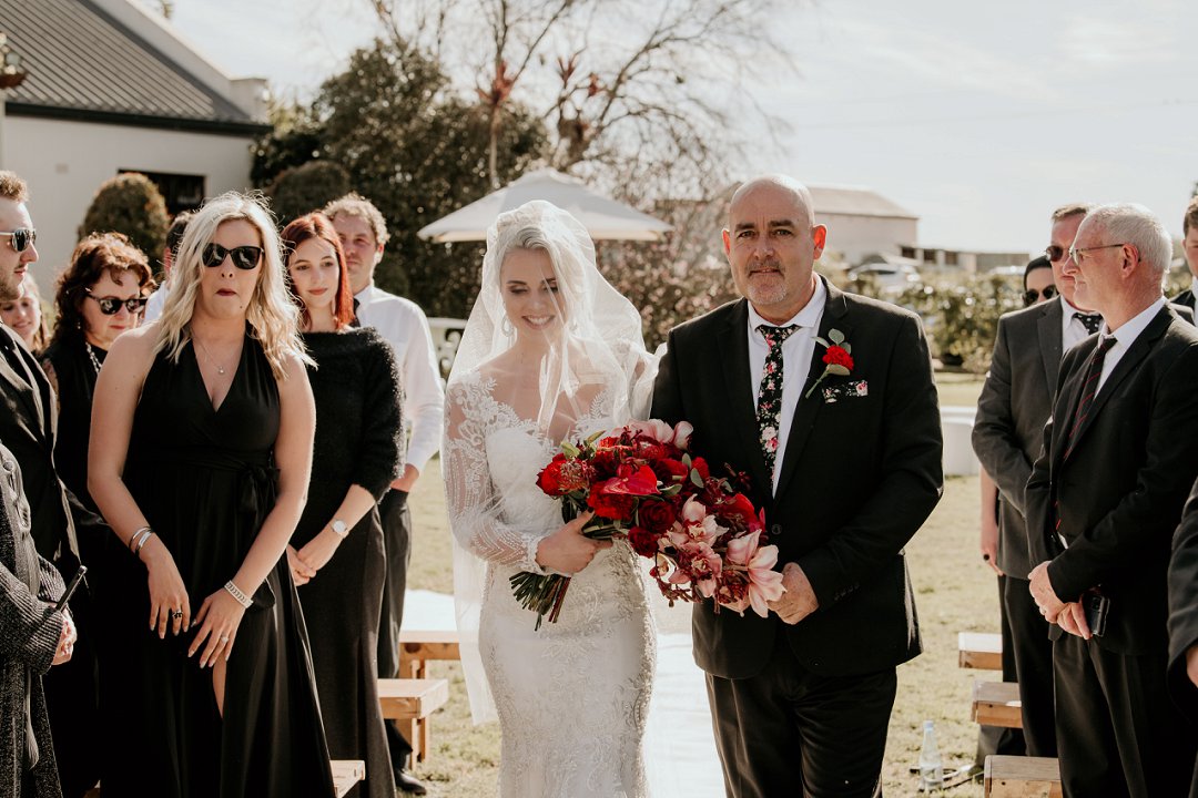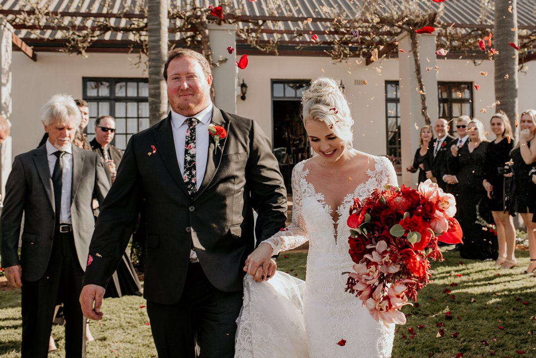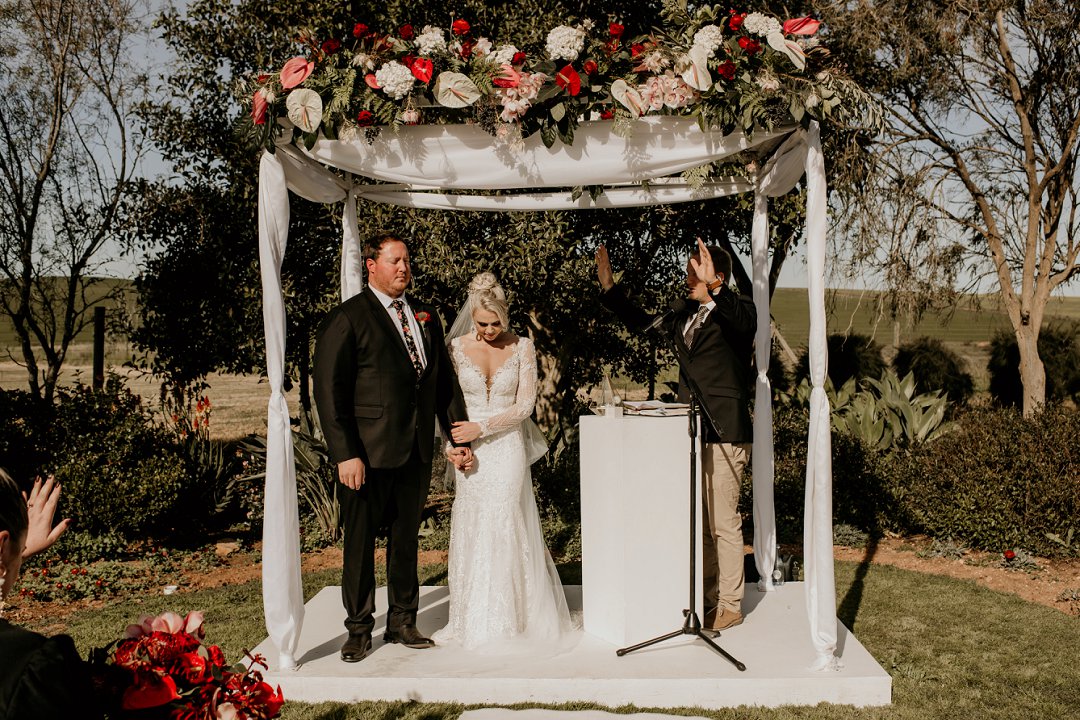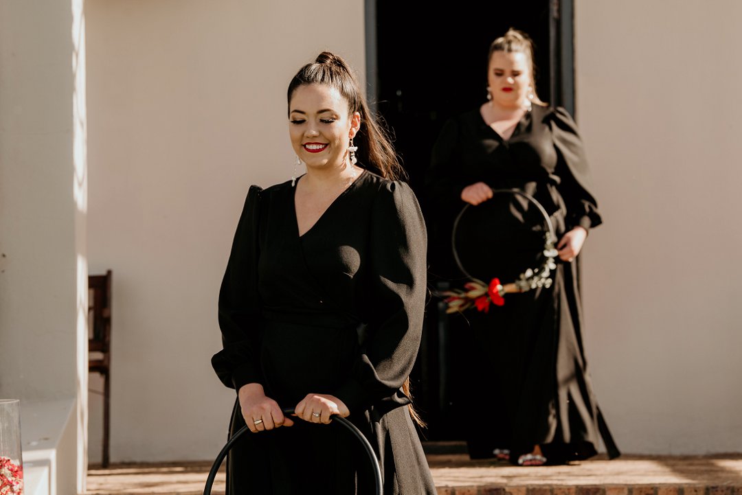 Dié pragtige bruidspaar het in 2017 ontmoet en van daar af het hul liefde vir mekaar net gegroei. Ons by Mooi Troues het al voorheen dié paartjie se verlowing fotosessie met julle gedeel en jul kan hier klik om weer na hul verlowing fotosessie te gaan kyk. Hulle is ʼn stylvolle paar wat gemik het op ʼn tradisionele troue waarby hulle hul styl kom implementeer. Hul stylvolle plaasskuur troue se trou dekor speel met kleure van swart, Roosgoud en Boergondië. Albei Jaco en Mikayla het dieselfde visie gehad vir hul groot dag. Al die elemente van dié stylvolle plaasskuur troue pas so pragtige bymekaar, die bruidspaar het vir al hul gaste gevra om swart aan te trek.