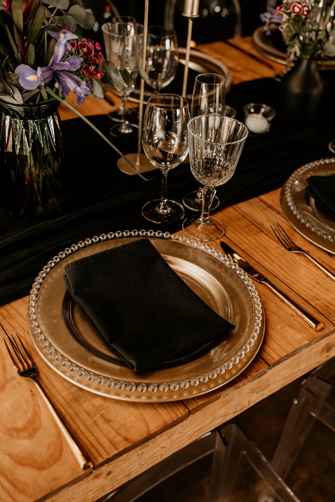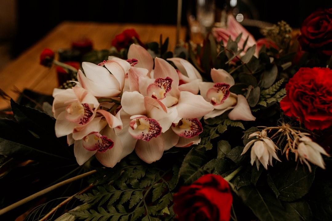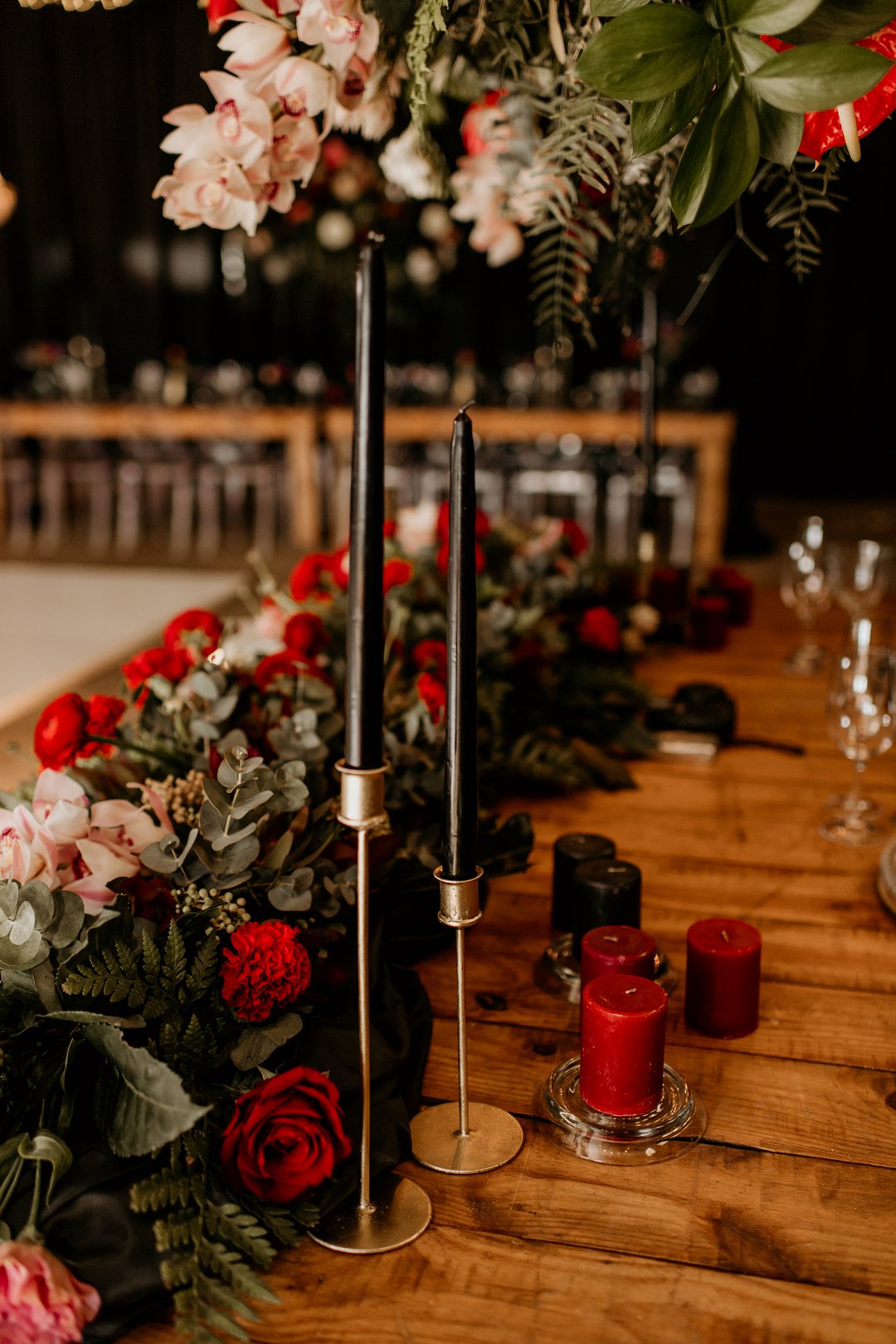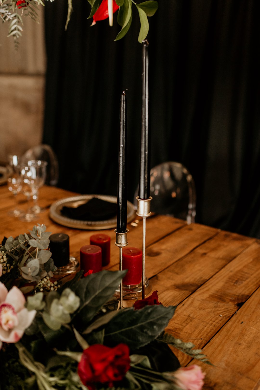 Ons tema was romanties en kleurskema was Swart, Roosgoud en Boergondië. Die idee vir troudekor het ek op ʼn foto gesien en gesê dit is presies wat ek wil hê! Ons het rondom die foto beplan en dit het mooier gelyk as wat ek ooit kon dink! Ons het vir al die gaste gevra om Swart formeel aan te trek na die troue en die fotos vertoon so mooi.