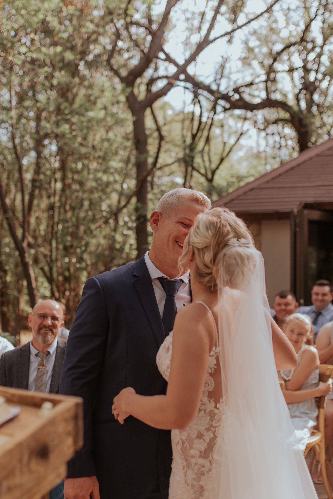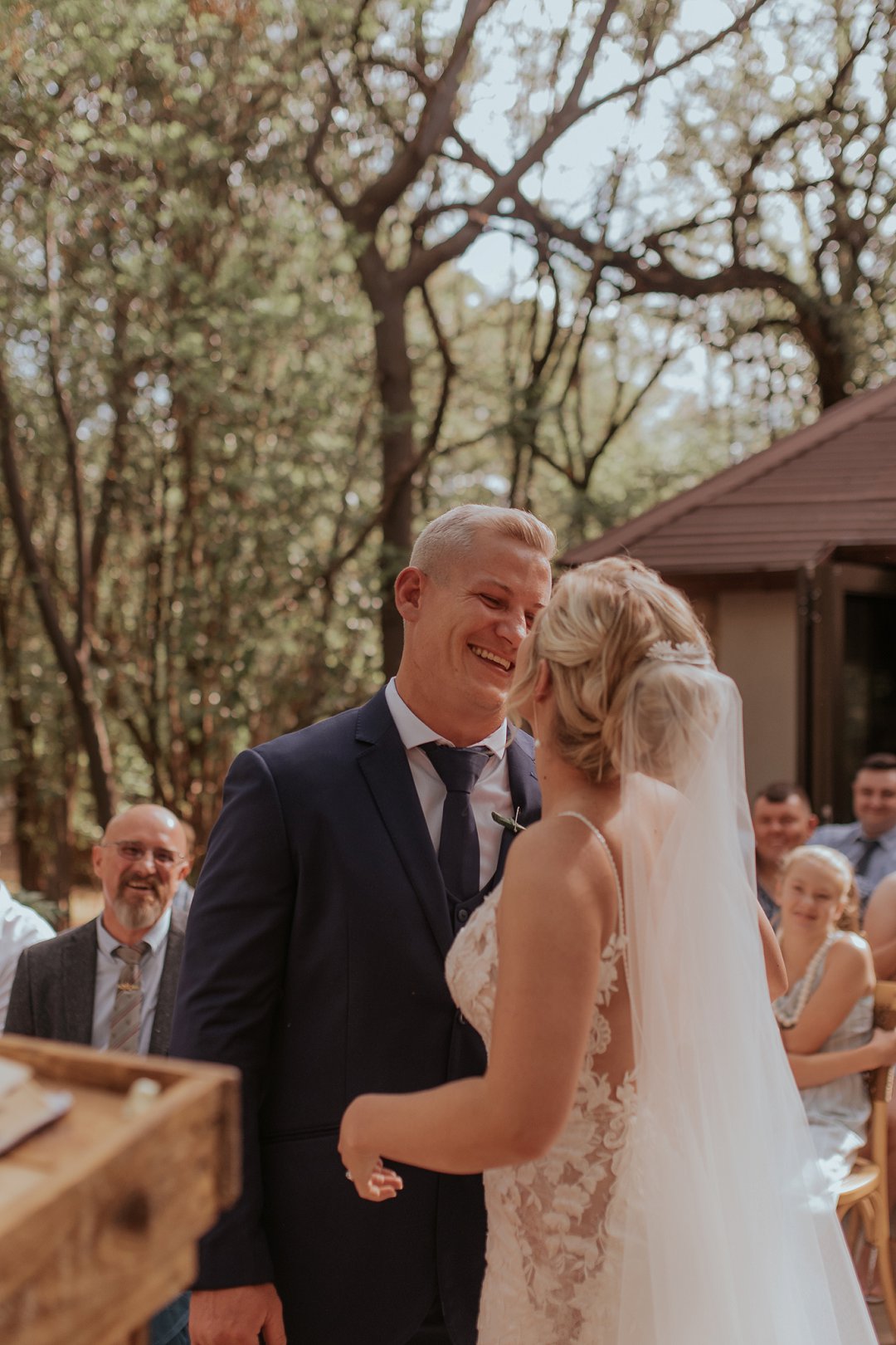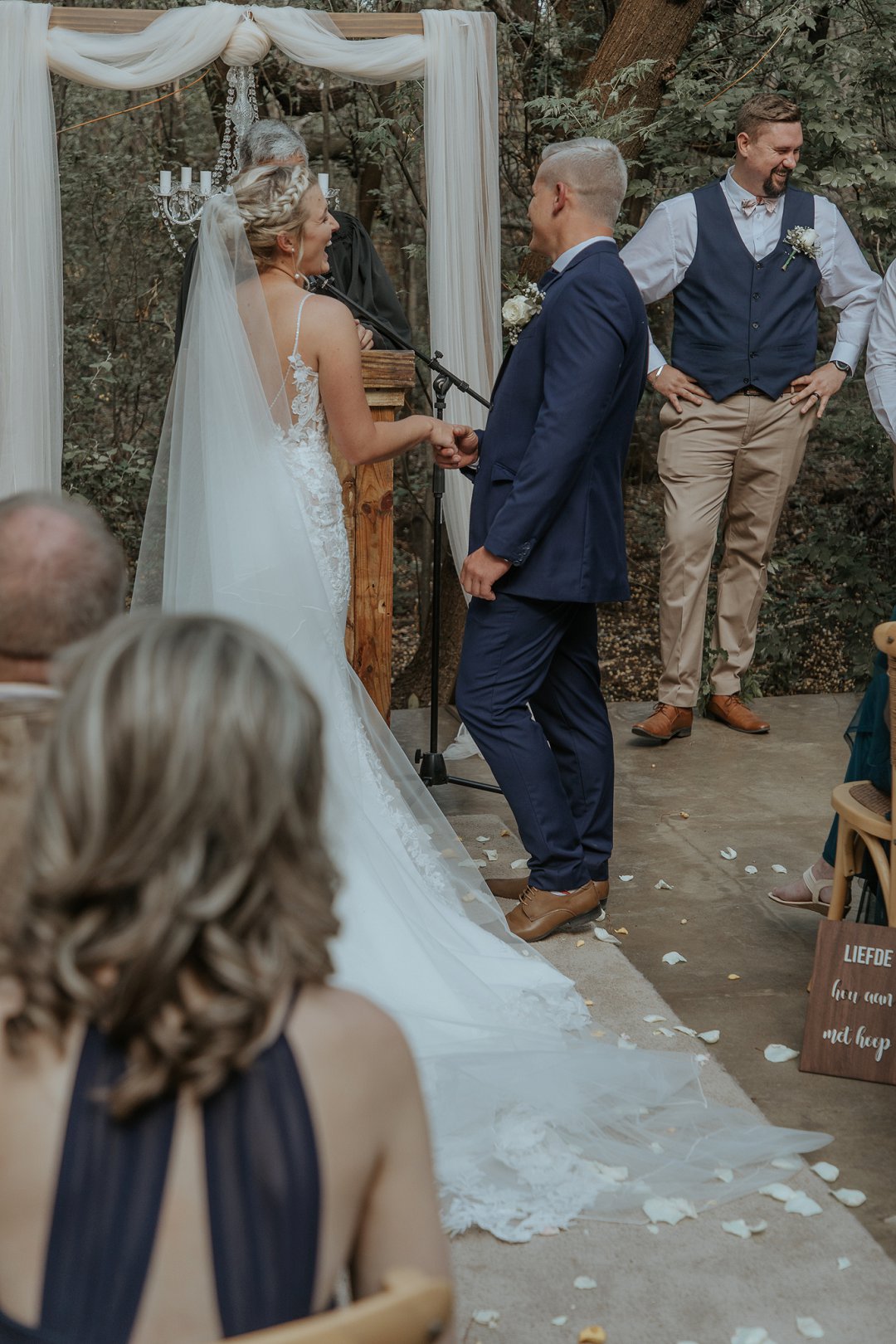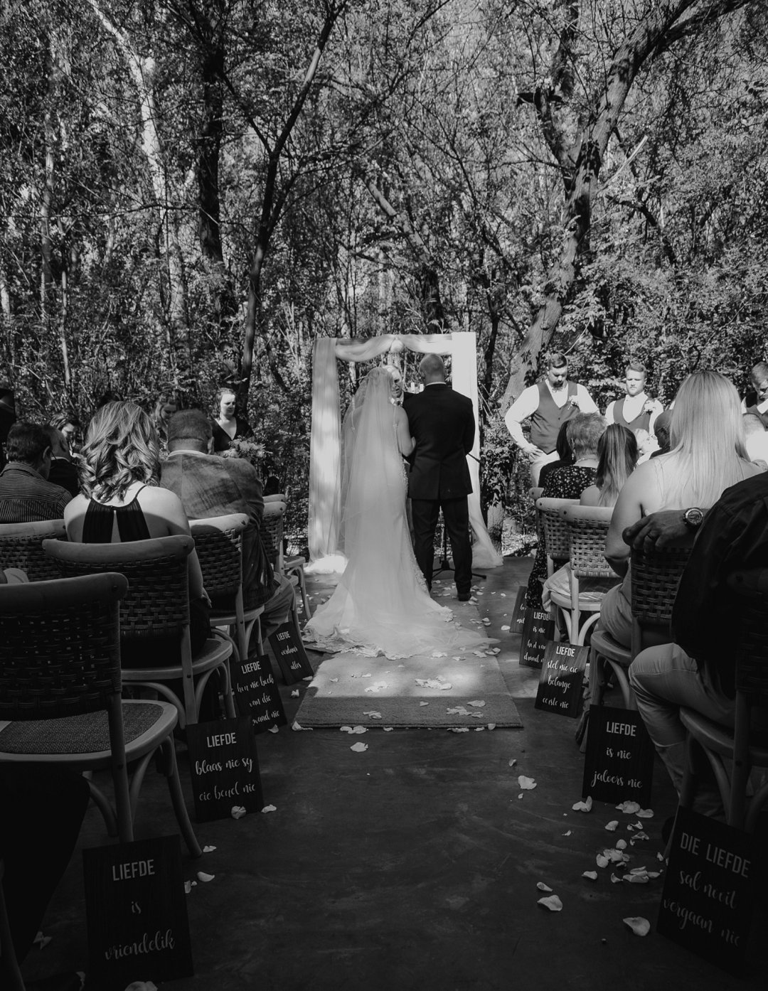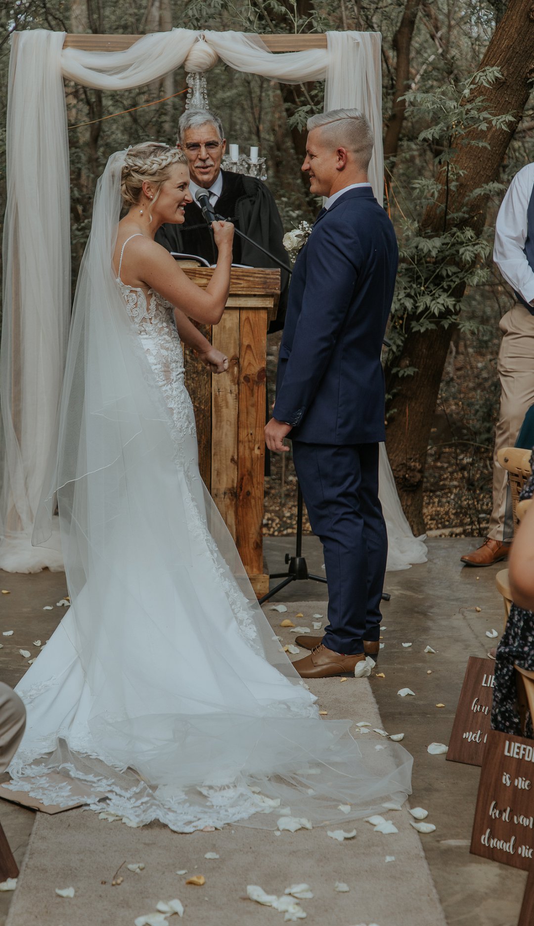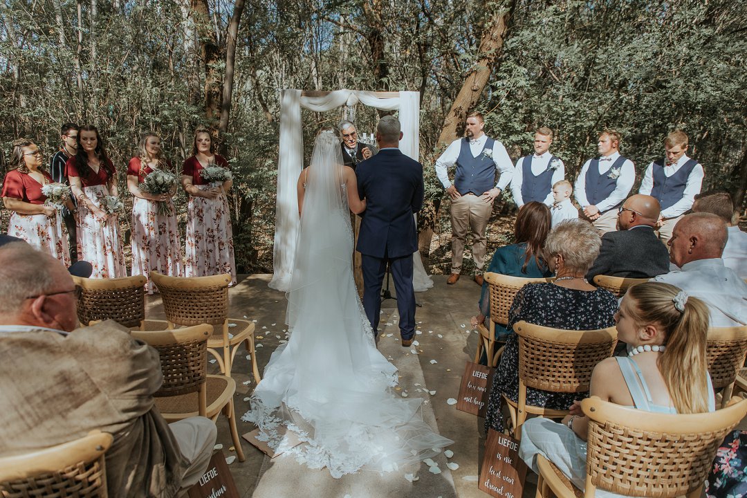 Hul seremonie was buite gewees omring deur bome en die stilheid van die natuurlewe. Ons kan baie gelukkig wees in Suid-Afrika om so ʼn mooi klimaat te hê waar mens wel die buitelig so goed kan benut.