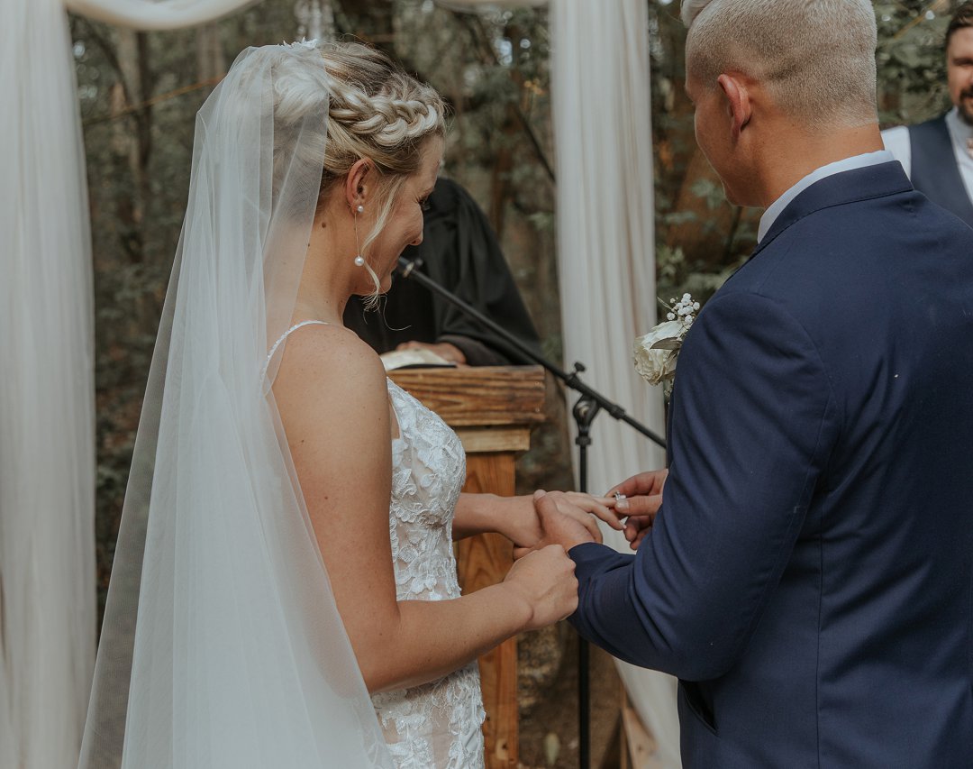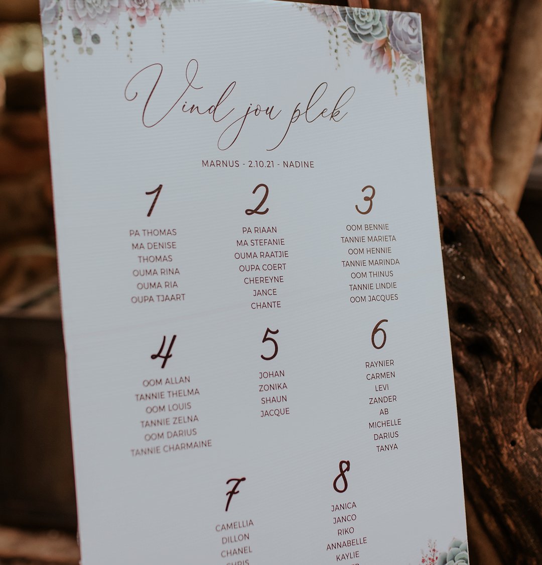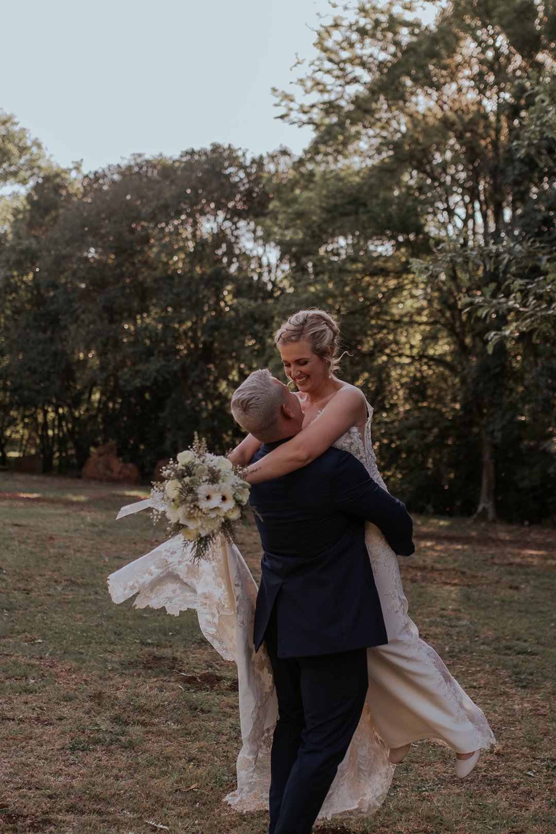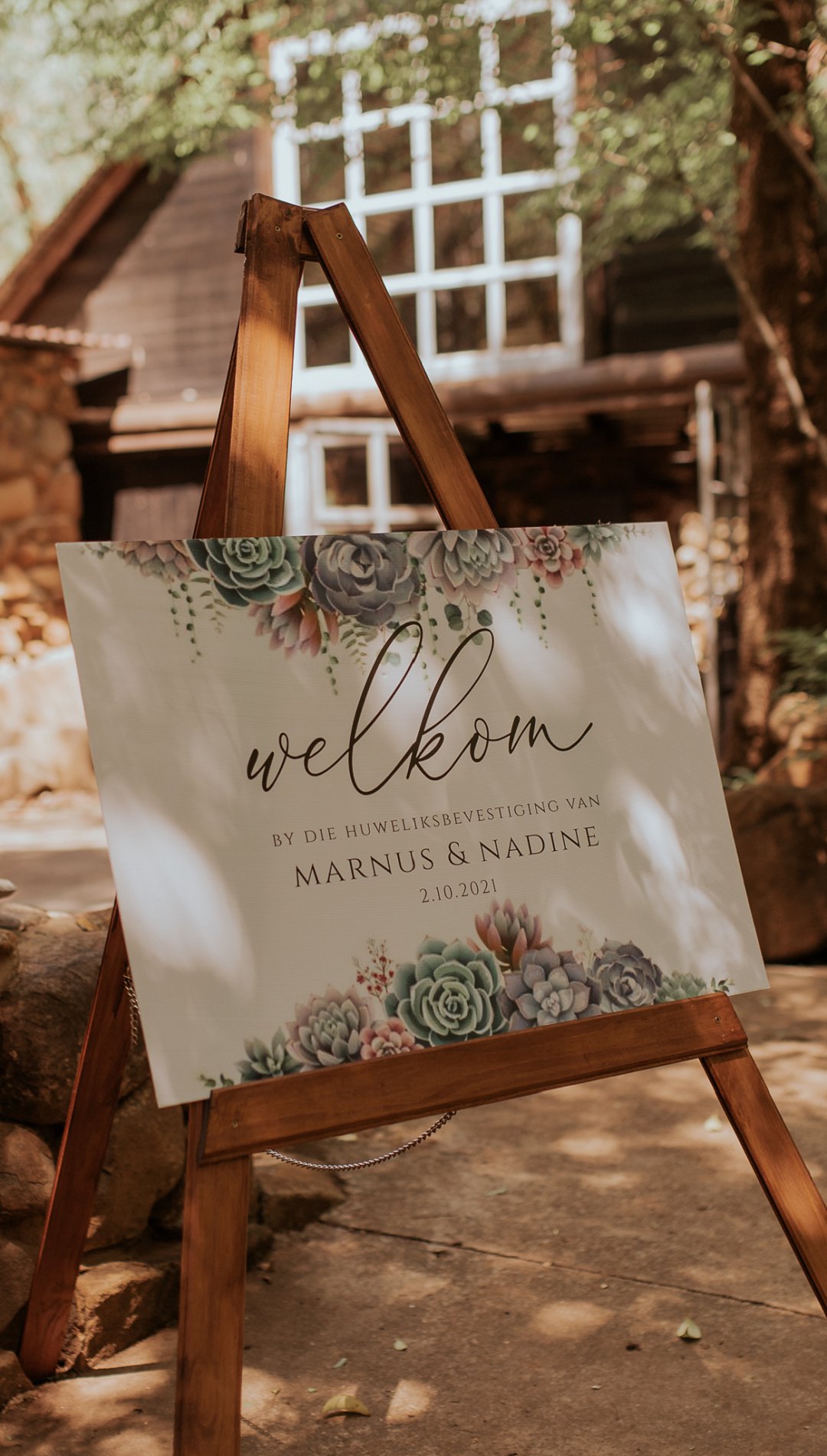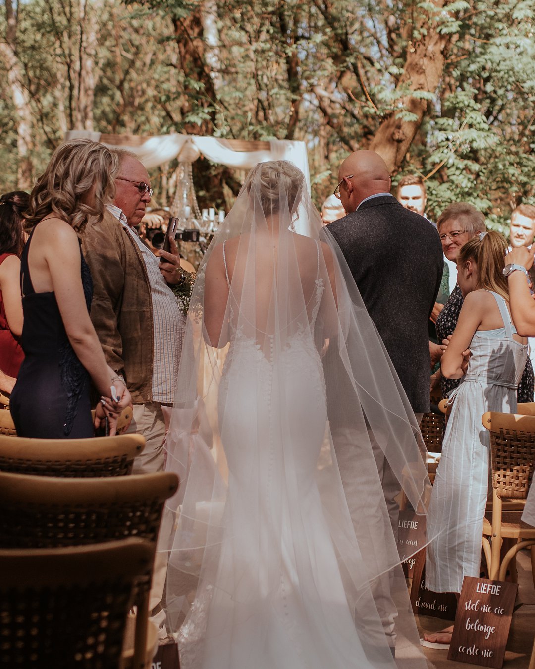 Hul seremonie was buite gewees omring deur bome en die stilheid van die natuurlewe. Ons kan baie gelukkig wees in Suid-Afrika om so ʼn mooi klimaat te hê waar mens wel die buitelig so goed kan benut.