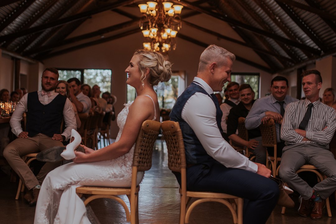 Ons het nie baie vermaak gehad nie. As bruidspaar was ons mos nou die vermaak vir almal (grappie). Ons het slegs ʼn platejoggie gehad en ons het verskeie tradisionele en nie-tradisionele aktiwiteite by die troue gedoen.