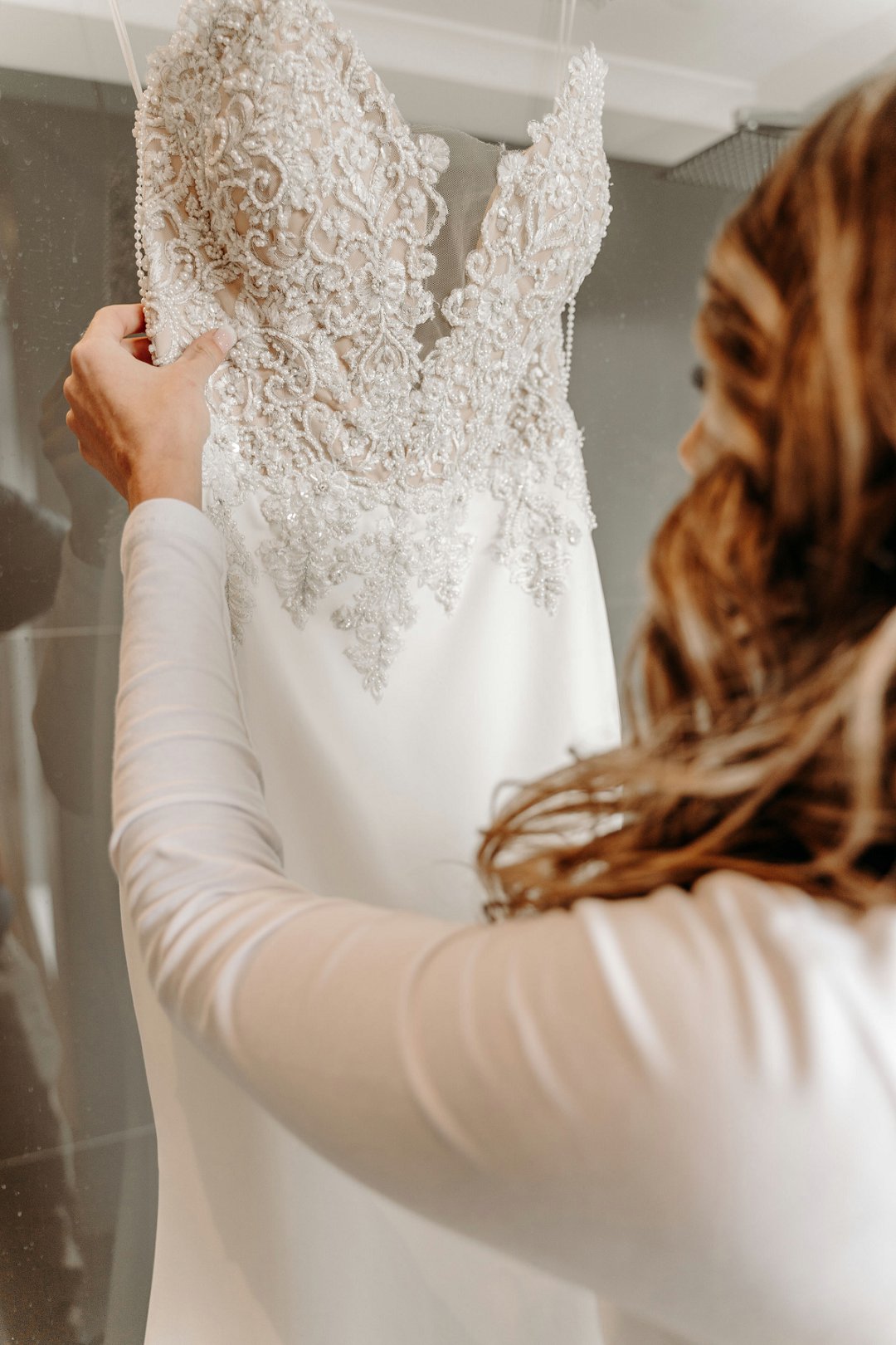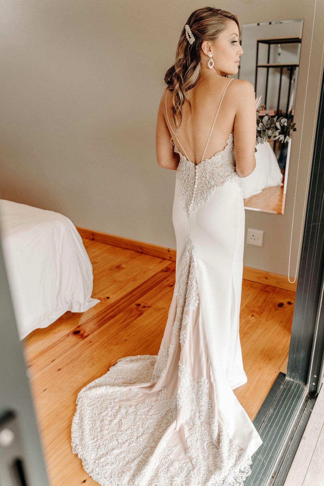 Ek hou van ‘n balans tussen fyn en eenvoudig en detail.Ā Ā My trourok het kralewerk bo gehad met klein pĆŖrels as stappies en ‘n mooi lae rug.