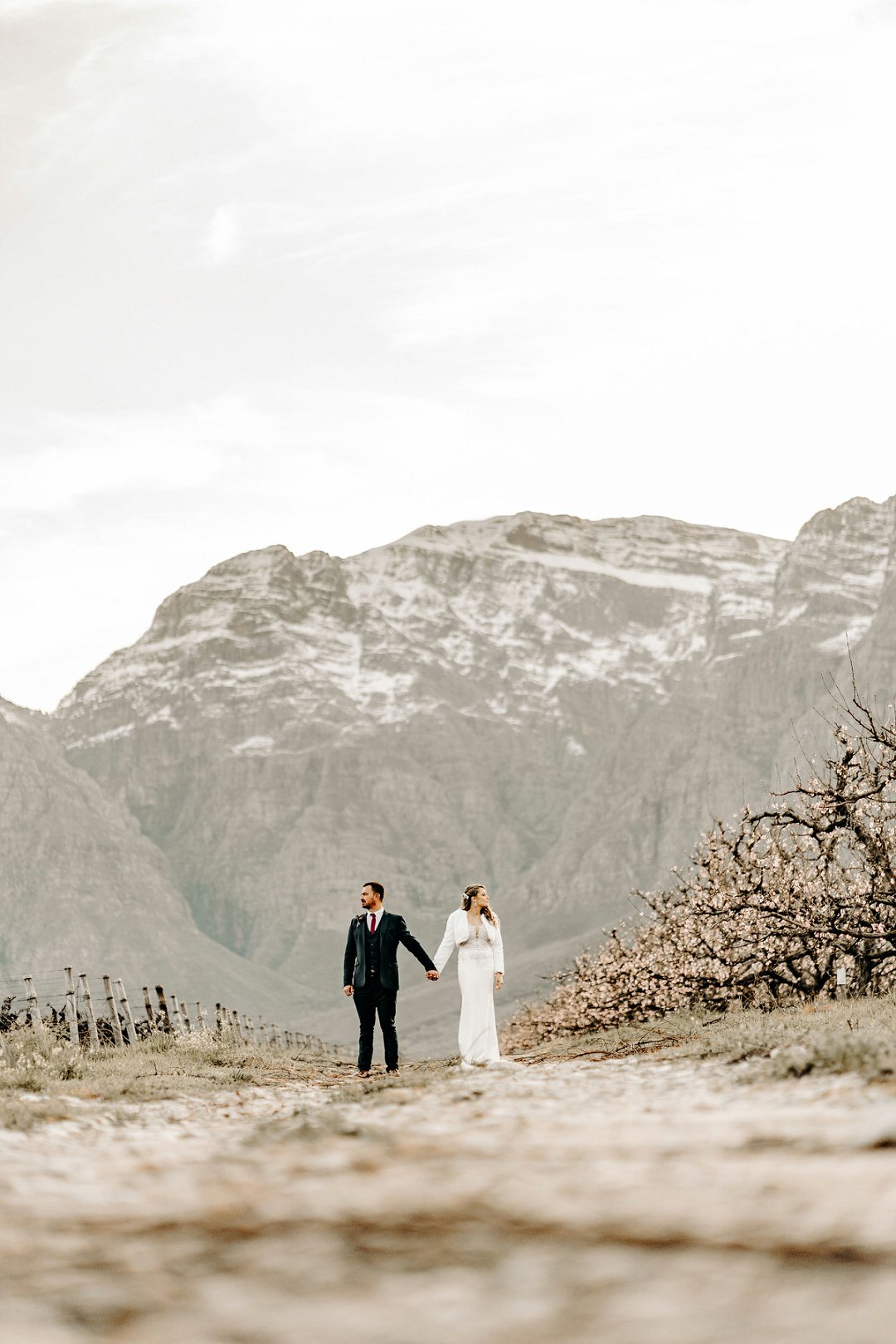 Die gebruik van Å warmer kleurpalet pas perfek in by Å winter troue.Ā Dit skep die illusie van warme en laat jou sommer meer snoesig en gesellig voel.Ā Nelmarie en Pierre se fotosessie is regtig prentjie mooi gewees.Ā Met die lagie sneeu op die berge as hul agtergrond en die mooiste bloeiseltjies wat hul omring is die fotosessie iets vanuit Å sprokies verhaal.