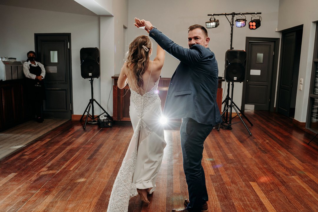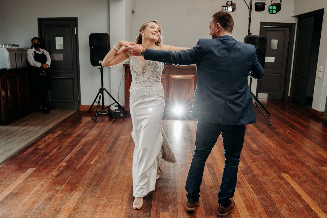 Ons het ons eerste gedans gehad op ‘Reisiger’ van Refentse.Ā Dis ‘n redelike stadige liedjie so in die helfte het ons oorgeskakel na Second Hand Heart van Ben Haenow.Ā Ons het nie geld gehad vir danslesse nie, so ons het dit net ‘gewing’!!