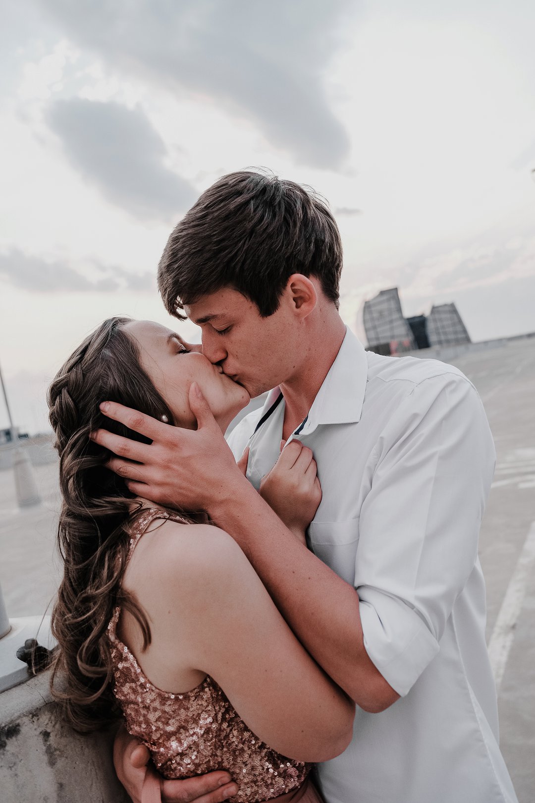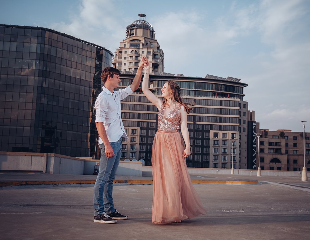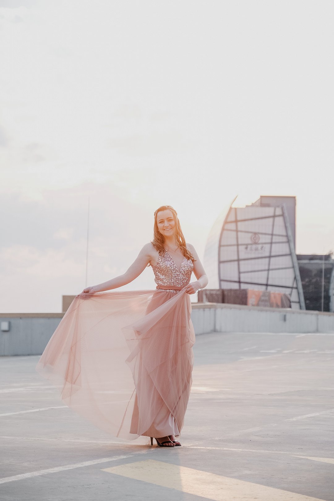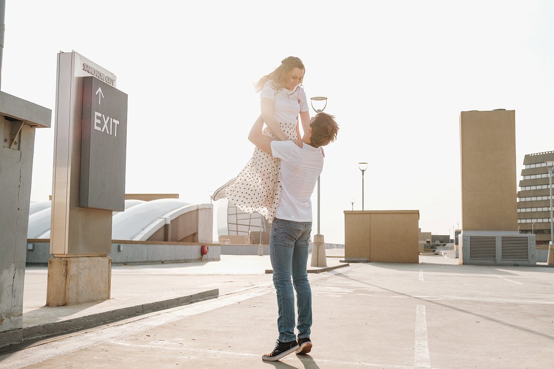 Die tweede deel van Nicole en Ryan se fotosessie was tydens sonsak op ʼn lee parkeerterrein wat jou amper die gevoel gee dat jy bo op die dak van ʼn gebou is. Omring deur die geboue in Nelson Mandela Square in Sandton en die sagte pienk lig van die son wat sak in kontras met die grys en glas geboue in die agtergrond is prentjie mooi.