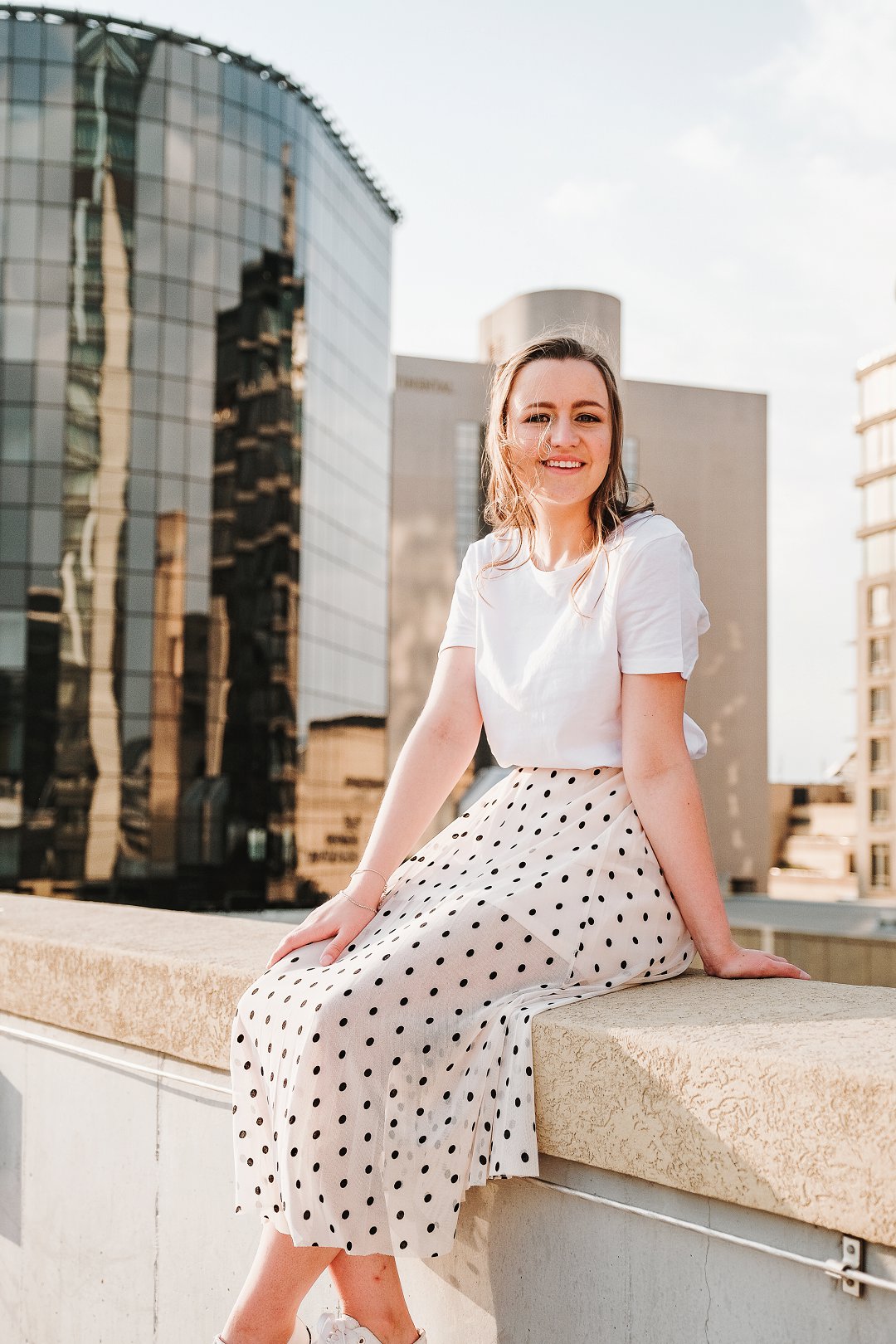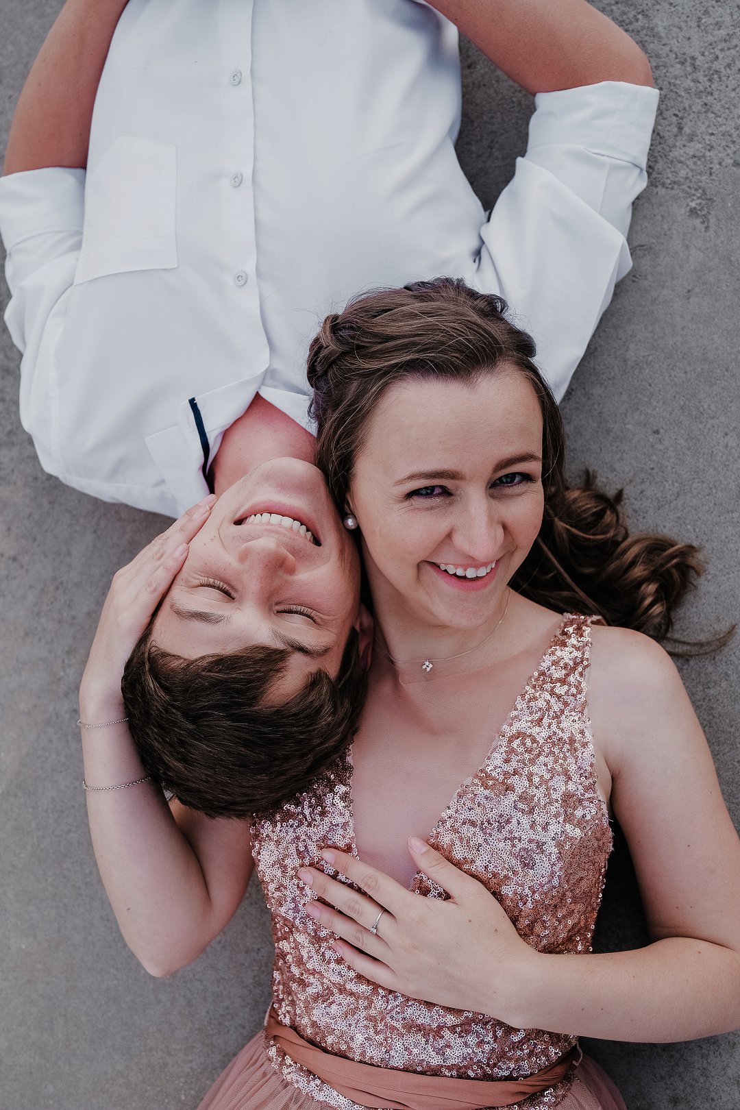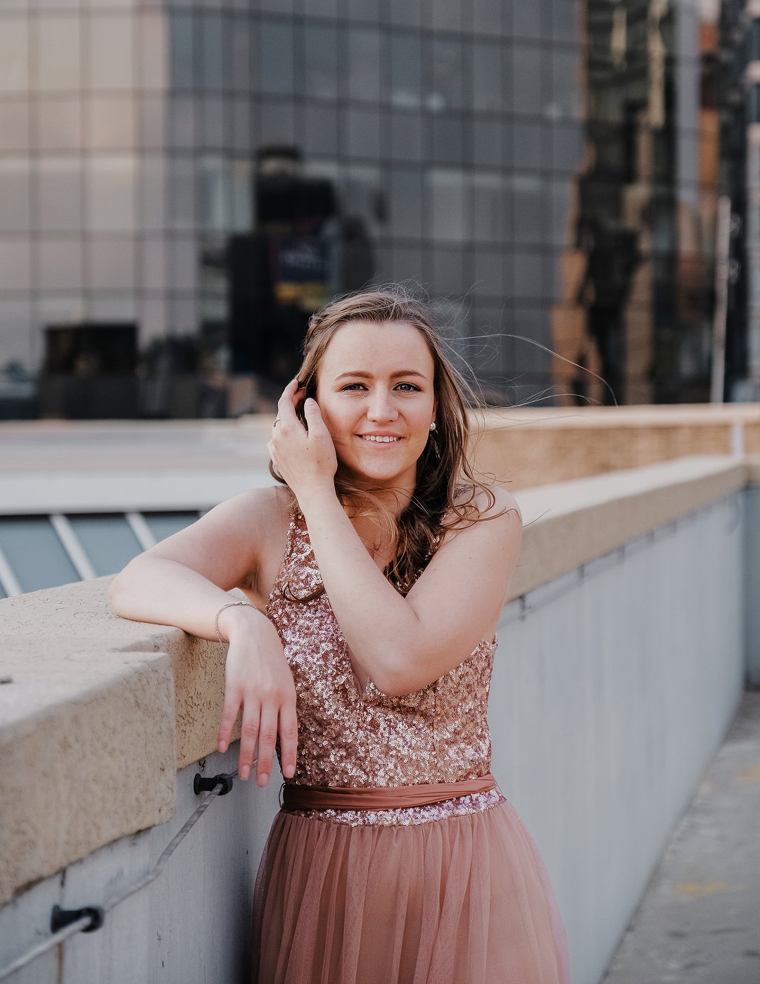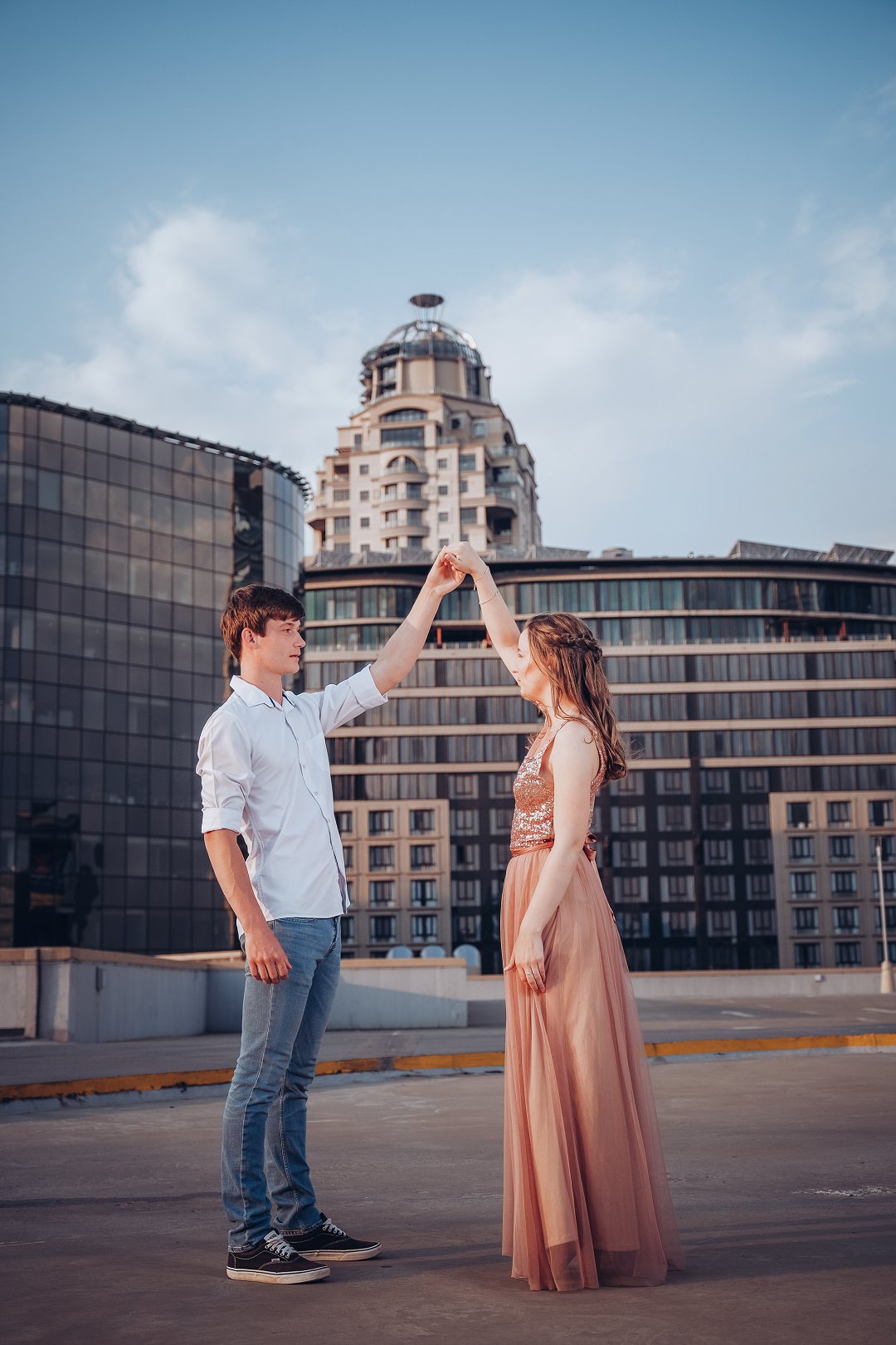 Die tweede deel van Nicole en Ryan se fotosessie was tydens sonsak op ʼn lee parkeerterrein wat jou amper die gevoel gee dat jy bo op die dak van ʼn gebou is. Omring deur die geboue in Nelson Mandela Square in Sandton en die sagte pienk lig van die son wat sak in kontras met die grys en glas geboue in die agtergrond is prentjie mooi.