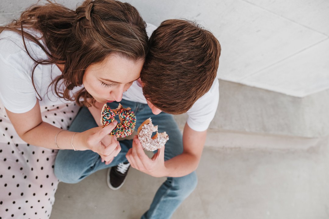 Ons is mal oor die stad, die besige lewe en die hoë geboue. Die idee was om ʼn paar straat fotos te kry met die robotte, die strepe by die voetoorgang en die verkeer in die agtergrond. Ek het toe gevra vir ʼn “golden hour rooftop” sessie, wat die hoë geboue gevang het, asook ʼn paar verstommend sonsak fotos. Die fotos was ongelooflik mooi en ons fotograaf, Lynette, het werklik die beste instink! Daar het verstommend idees opgekom, soos voor die Gautrein bus dans, ʼn paar donuts eet en natuurlik behoorlike romantiese oomblikke!