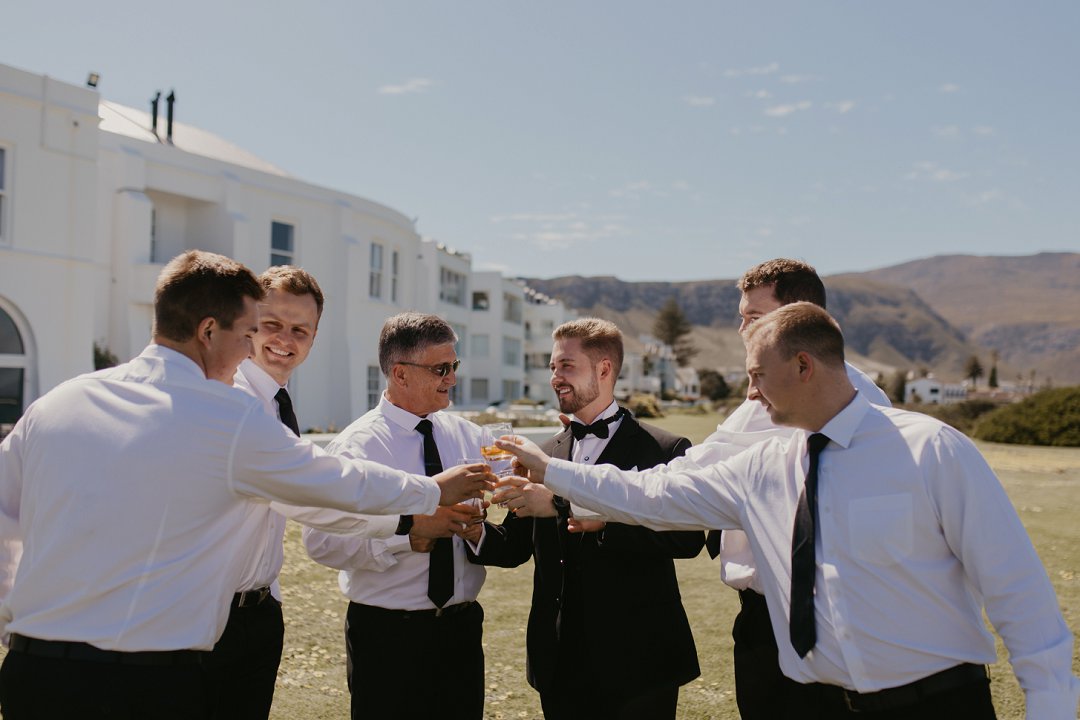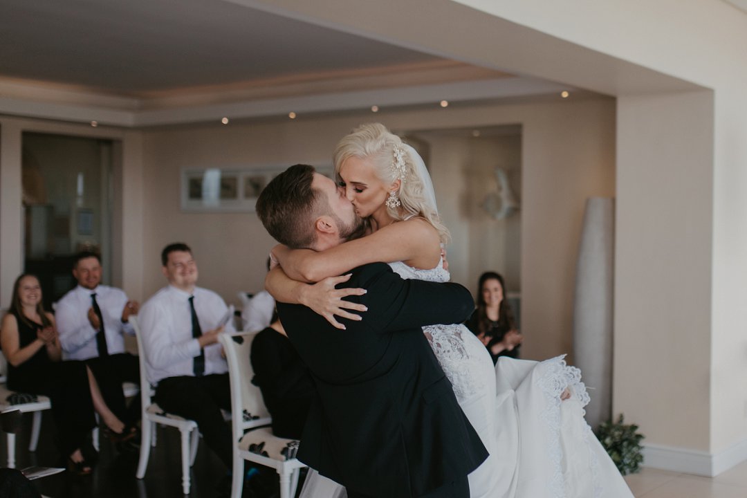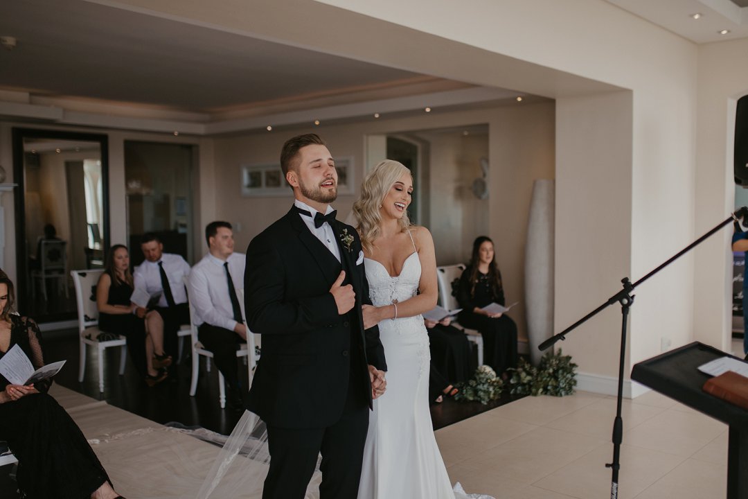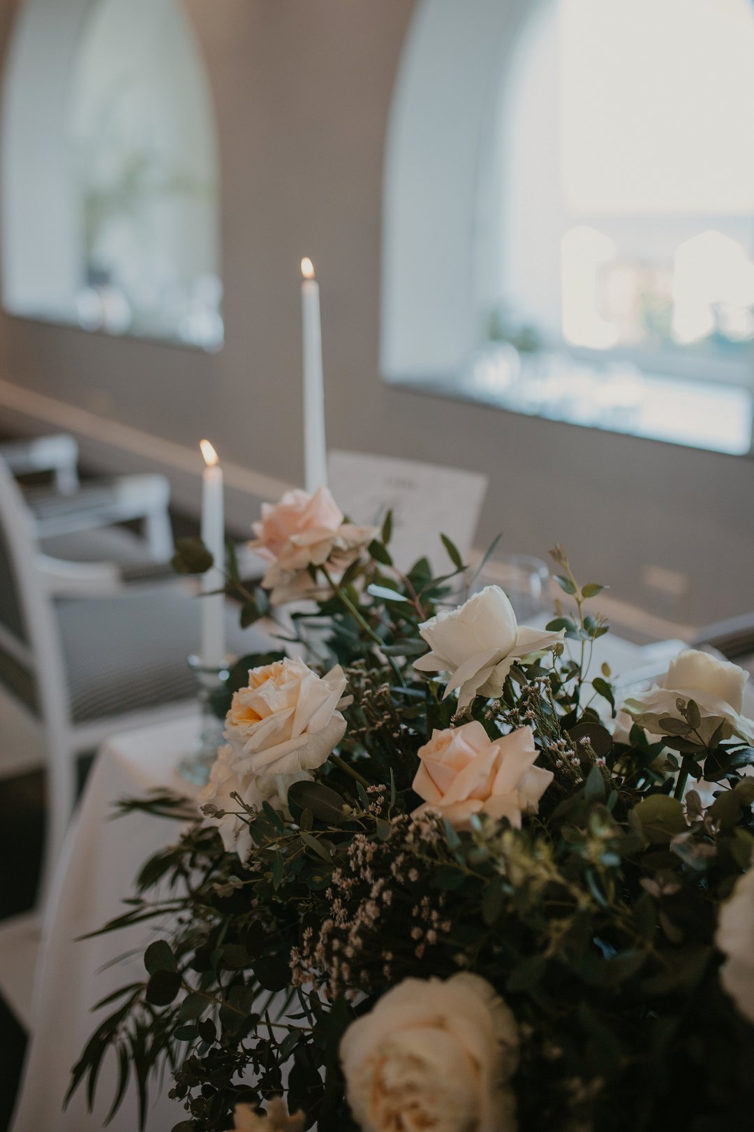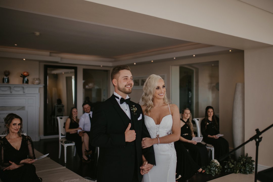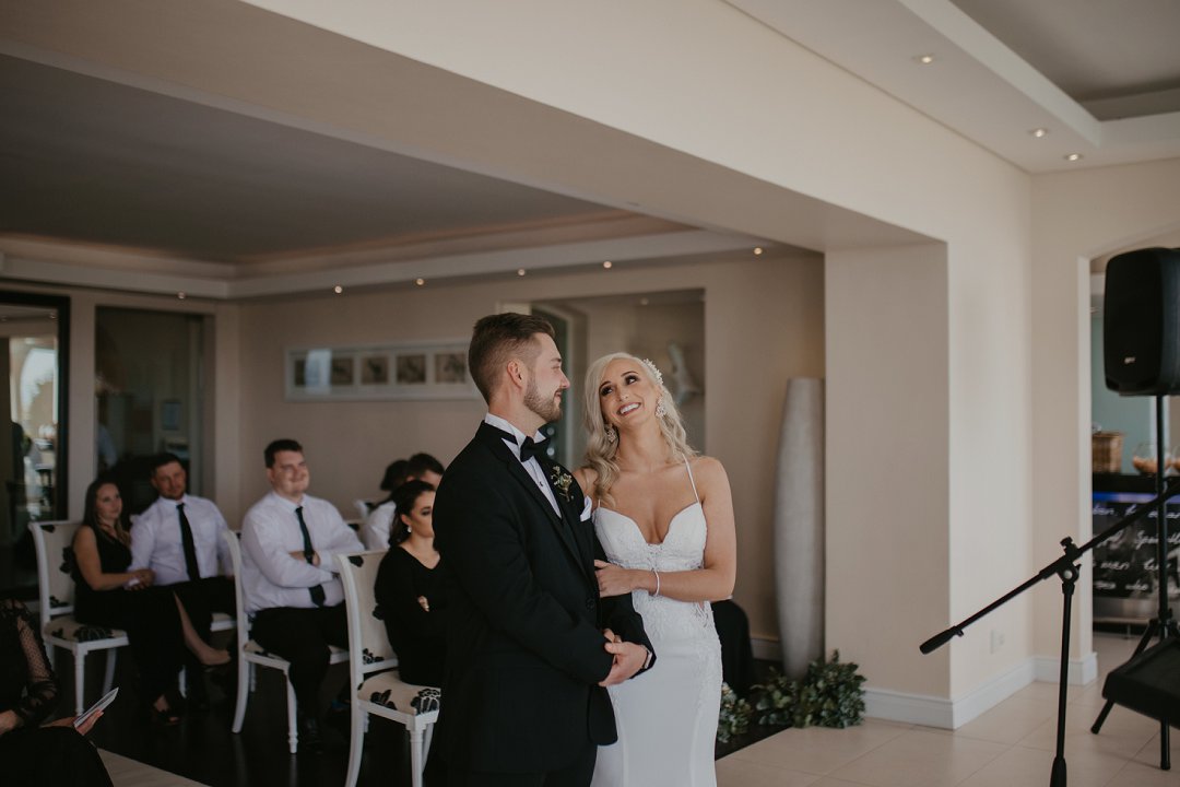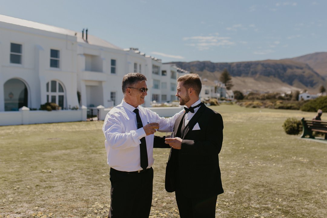 Ons wou graag ʼn wegloop pakket troue gehad het (Elopment Package). So ons was baie bevoorreg dat The Marine Hotel in Hermanus ons kon akkommodeer met ons versoek. Ons sal hulle sterk aanbeveel. Hulle het ons dag baie spesiaal gemaak en uit hulle pad gegaan om ons gelukkig te maak. Die inspirasie agter die trou dekor was om tydloos, romanties en klasiek te wees. Nicolé se liefde vir blomme het ʼn groot rol gespeel en die hoof fokus was die peonie rose.