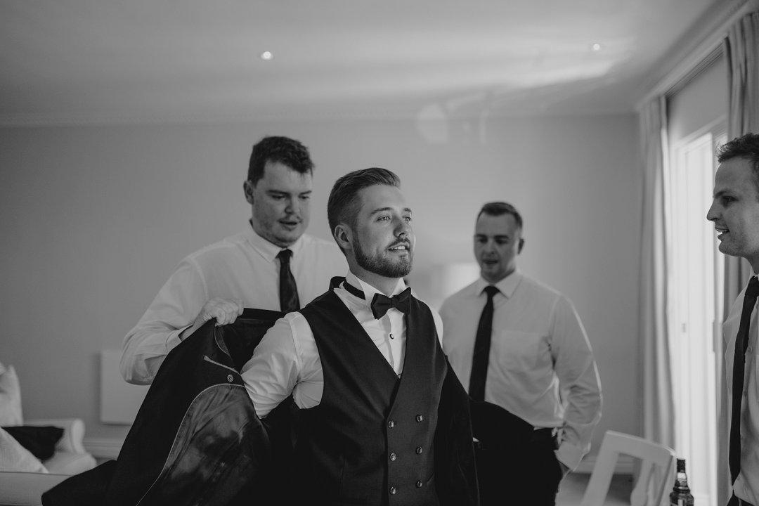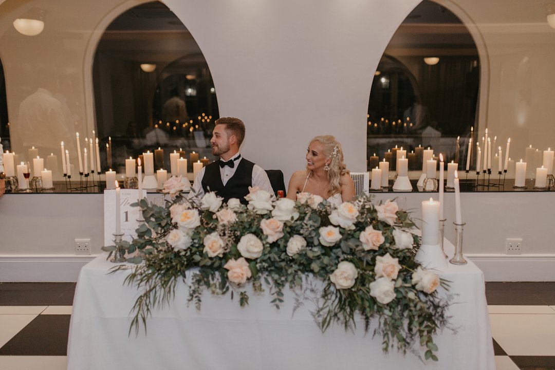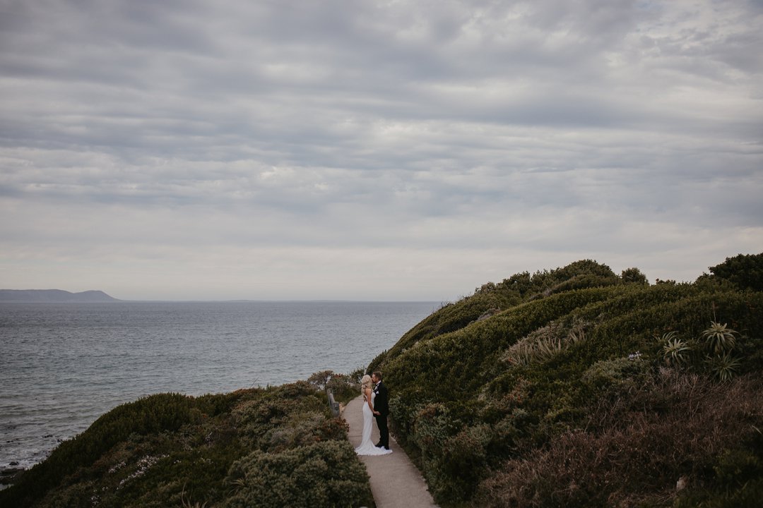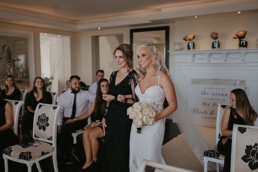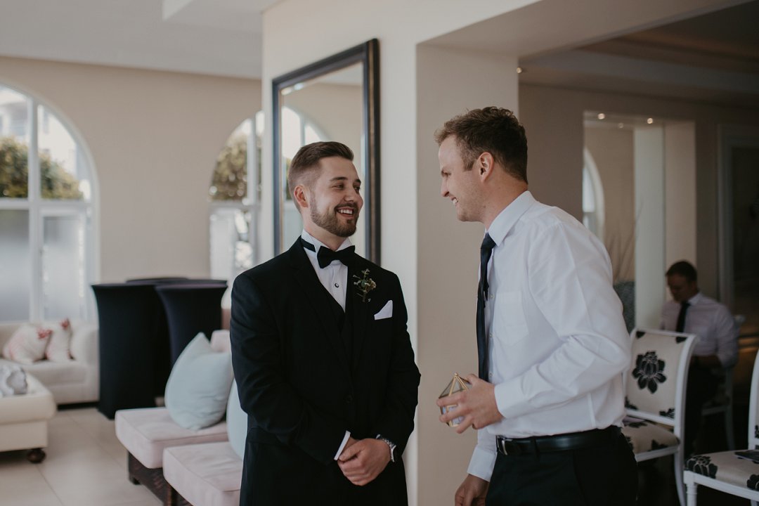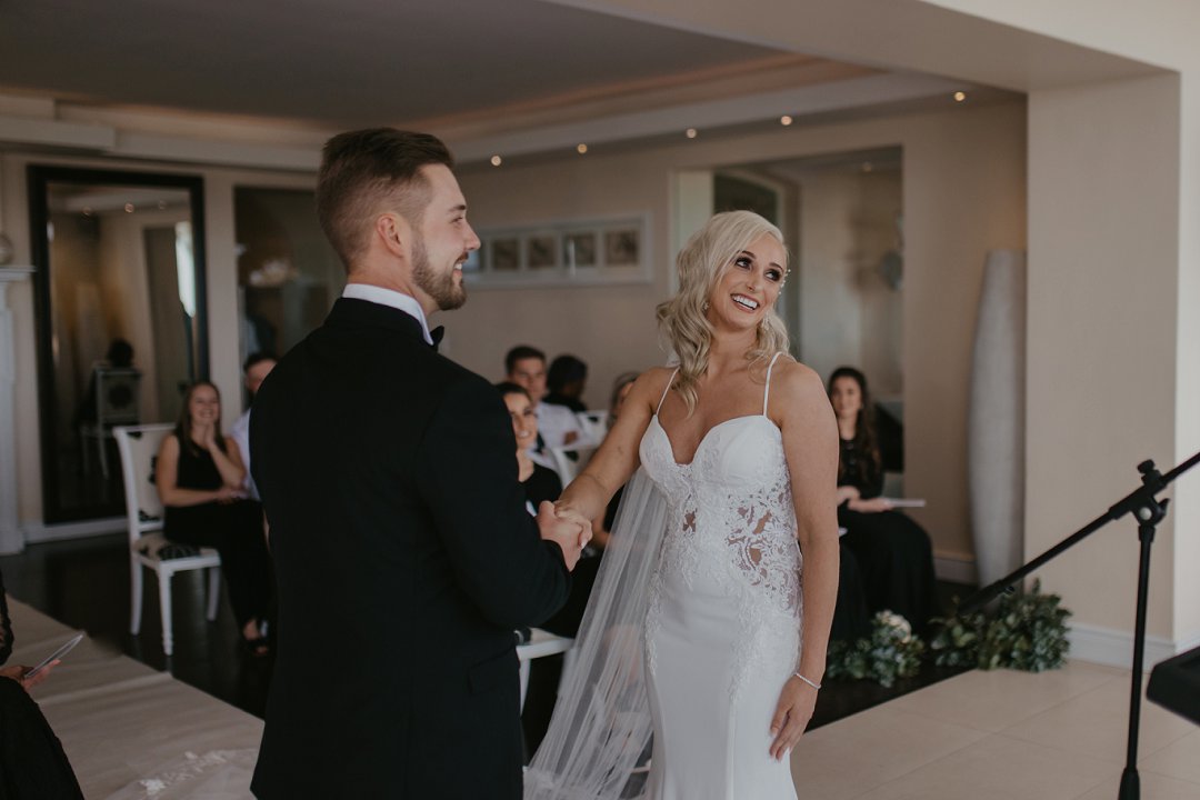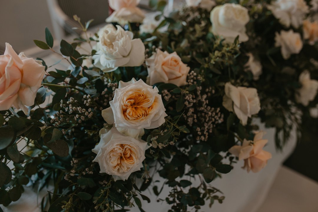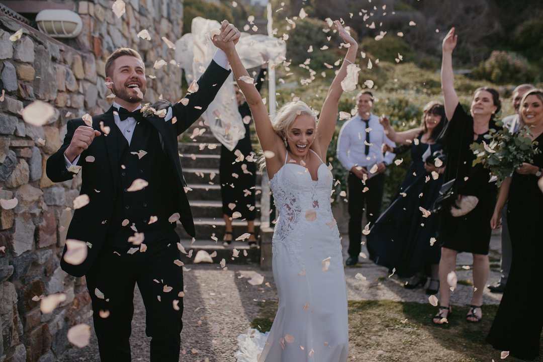 Ons wou graag ʼn wegloop pakket troue gehad het (Elopment Package). So ons was baie bevoorreg dat The Marine Hotel in Hermanus ons kon akkommodeer met ons versoek. Ons sal hulle sterk aanbeveel. Hulle het ons dag baie spesiaal gemaak en uit hulle pad gegaan om ons gelukkig te maak. Die inspirasie agter die trou dekor was om tydloos, romanties en klasiek te wees. Nicolé se liefde vir blomme het ʼn groot rol gespeel en die hoof fokus was die peonie rose.
