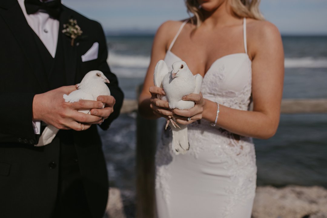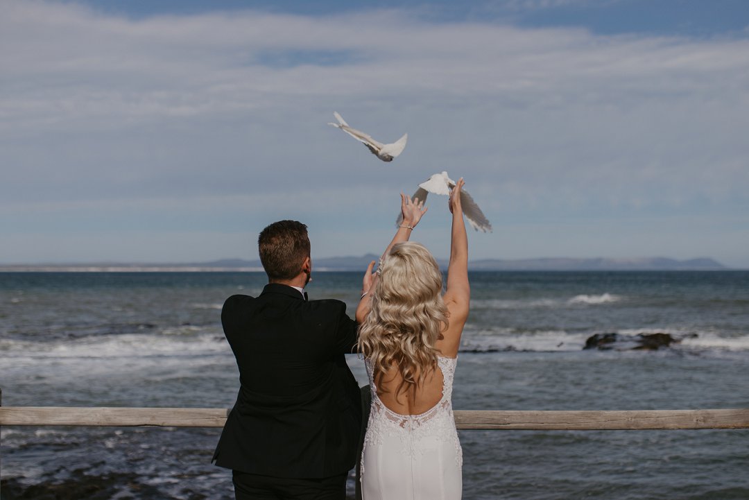 Dit tel dalk nie as ʼn tradisie nie, maar ons het twee wit duiwe vrygelaat op die strand. Ons hutsteken vir die troue was #geringdeSchyfieDuifie. Die duiwe was wit posduiwe wat terug gevlieg het na hulle eienaar.