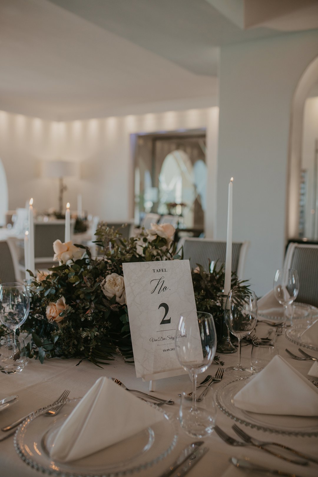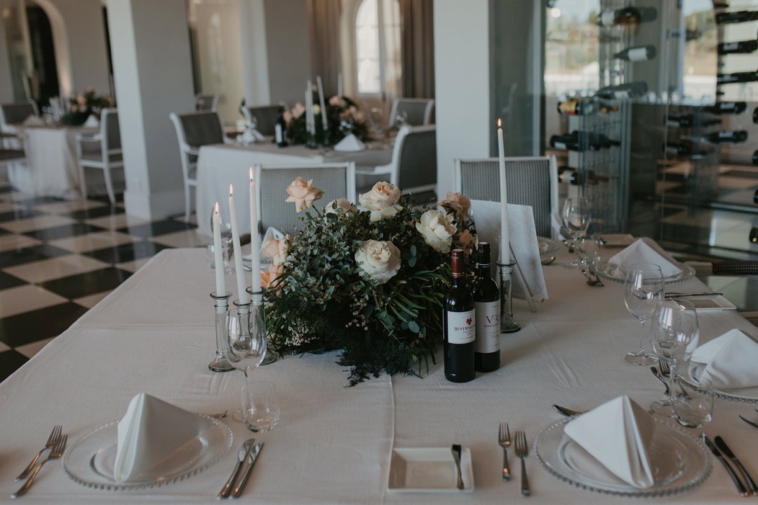 Die neutrale kleurpalet van die paartjie se trou dekor is só mooi. Dit trek die tydlose gevoel so mooi deur. Wit en ligte skakering rose staan so mooi uit teen die groen elemente op die tafels. Die groot aantal kerse skep ʼn gesellige en romantiese atmosfeer. Mooi Troues se span raak altyd baie bly as ons lees dat paartjies ons platvorm gebruik het vir hul trou inspirasie. Nicolé vertel dat sy baie na skryfbehoefte idees op Mooi Troues te gekyk het.