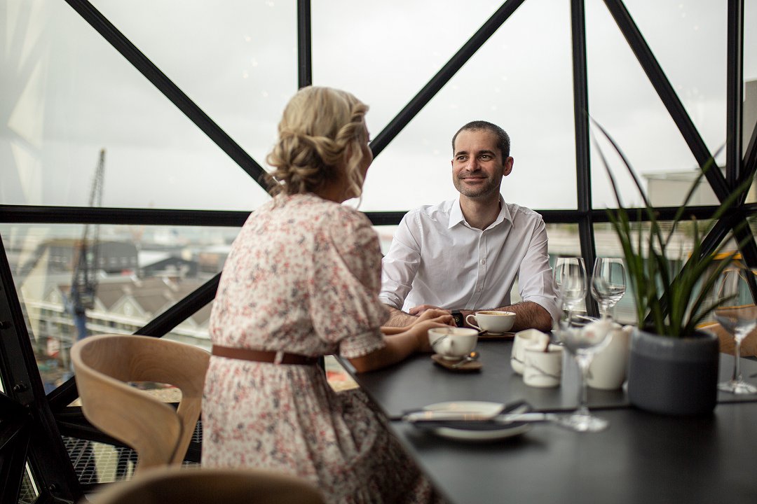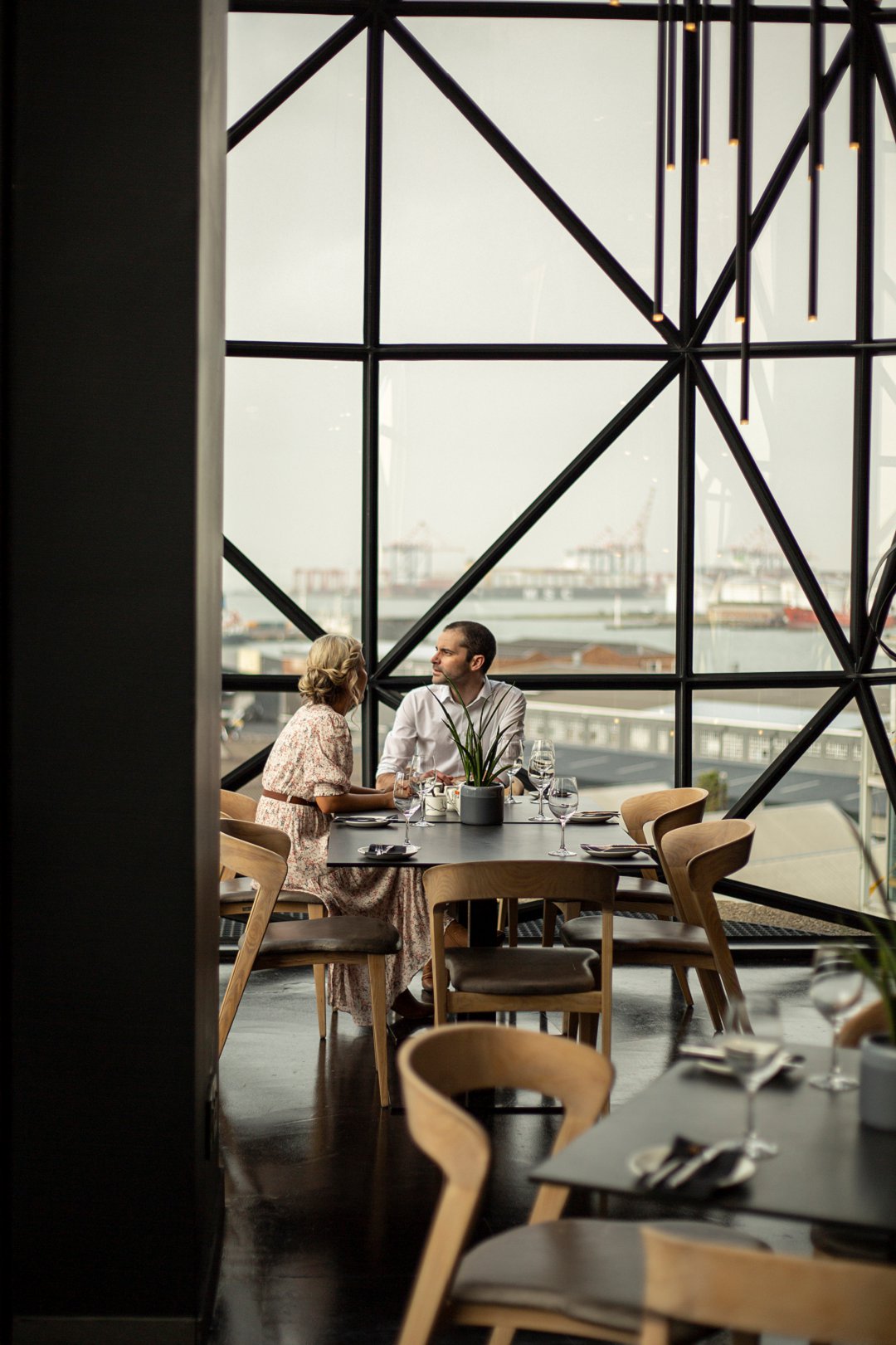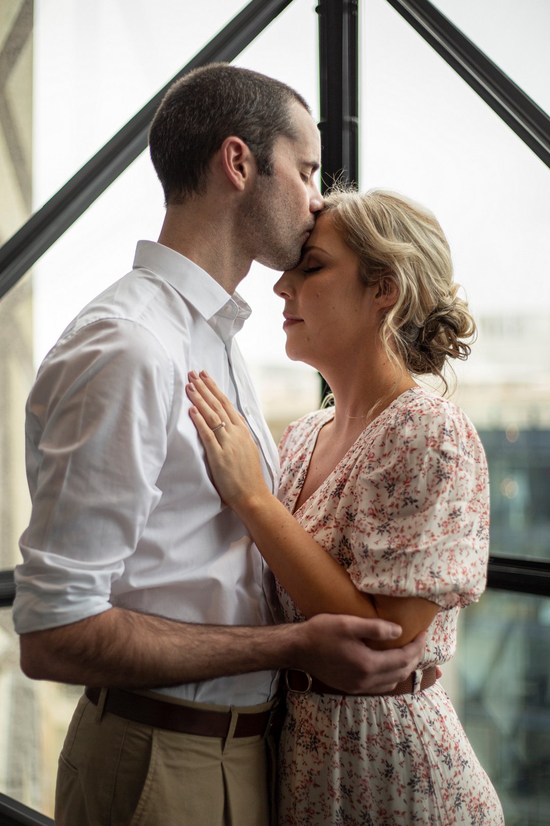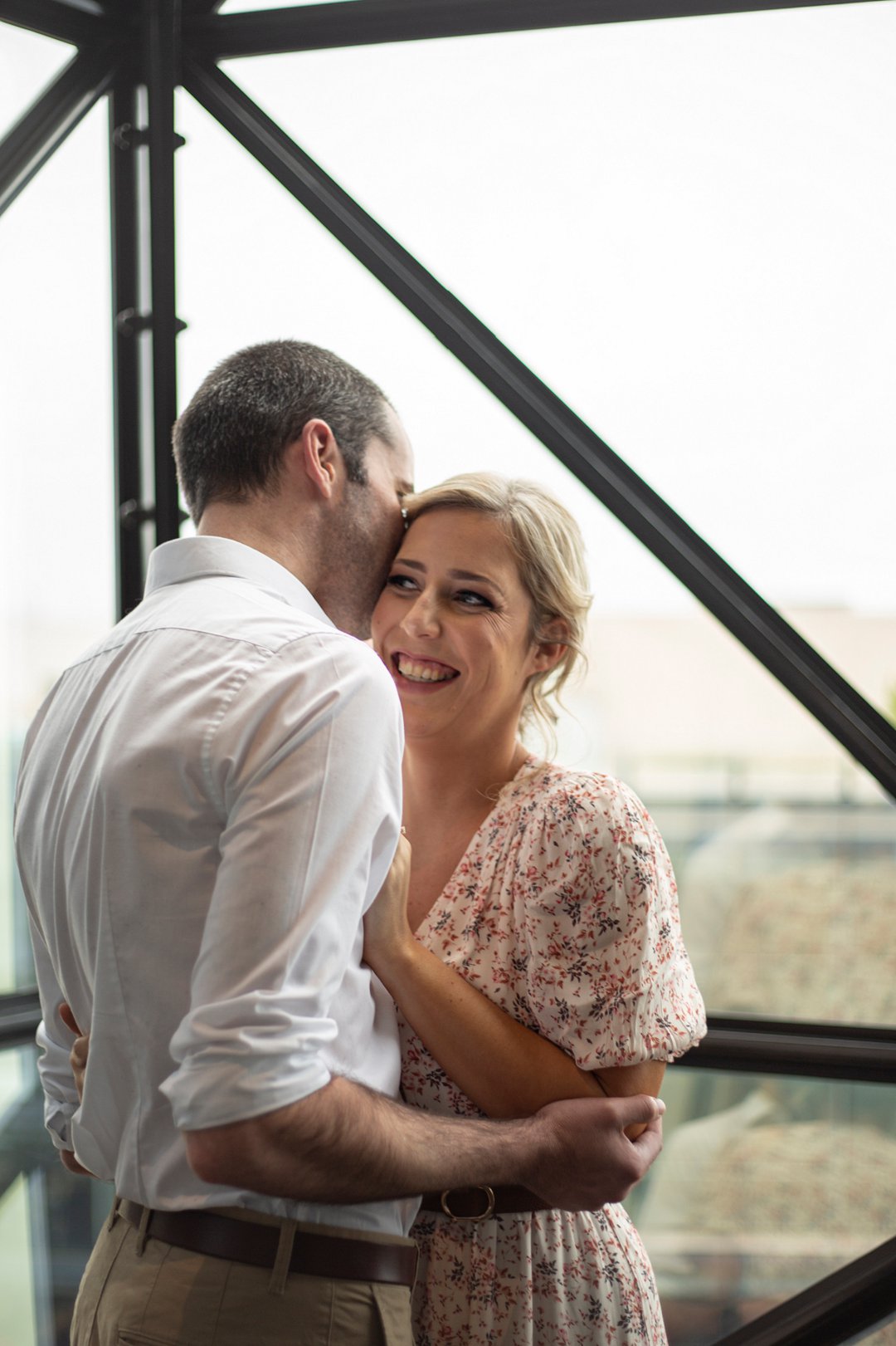 Die fotosessie het plaasgevind by die Zeits Mocaa Museum in die V&A Waterfront in Kaapstad. Dis ʼn destydse graan silo wat omskep is in ʼn museum wat maak vir die mooiste argitektuur. Ons fotosessie was geskeduleer vir ʼn koue, reĂ«nerige Sondag en dus was ons beperk na binnenshuis. Ek het uitgereik na die museum en gereĂ«l vir toestemming om wel fotos te mag neem met die wat hulle kunsuitstallings het. Die museum het ook ʼn sentimentele betekenis in ons verhouding omdat ons daar was op een van ons eerste afsprake en dit was lekker om te kon terugdink na daardie dag en hoe ver ons verhouding gevorder het.