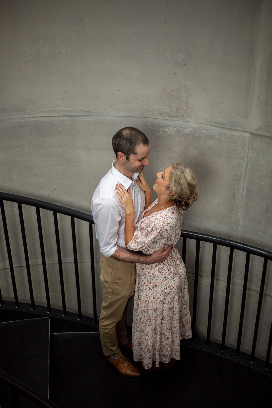 Wat voorheen ʼn graan silo was is nou een van Suid-Afrika se top kunsgalerye. Met soveel mooi teksture en die groot glasruite, maak die fotosessie ekstra interessant. Die paartjie vertel dat hul die fotosessie gedoen het om meer gemaklik te wees voor die kamera. Dit is ʼn baie belangrike punt.