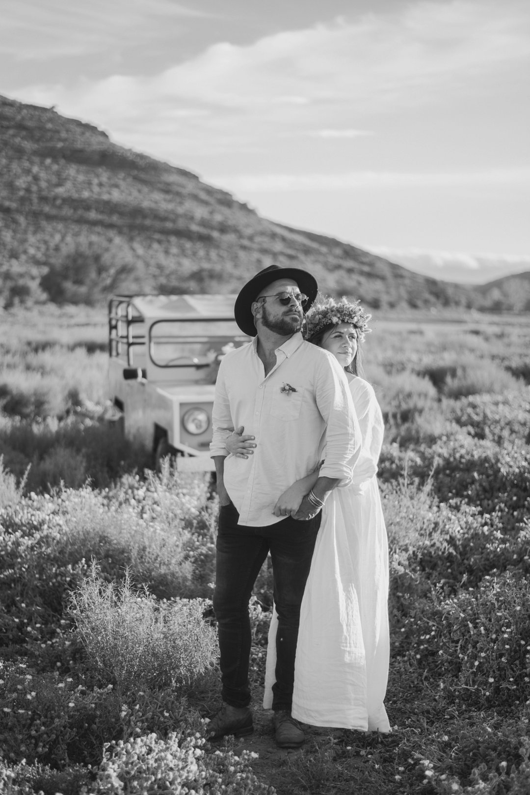 Shané wou graag “elope” in die Karoo, maar die familie wou graag ʼn groter troue hê. Ons het toe besluit om albei sommer te doen. Dié fotosessie is gedoen net voor ons mekaar getrou het op die Garcia pas tussen Riversdal en Ladismith.
