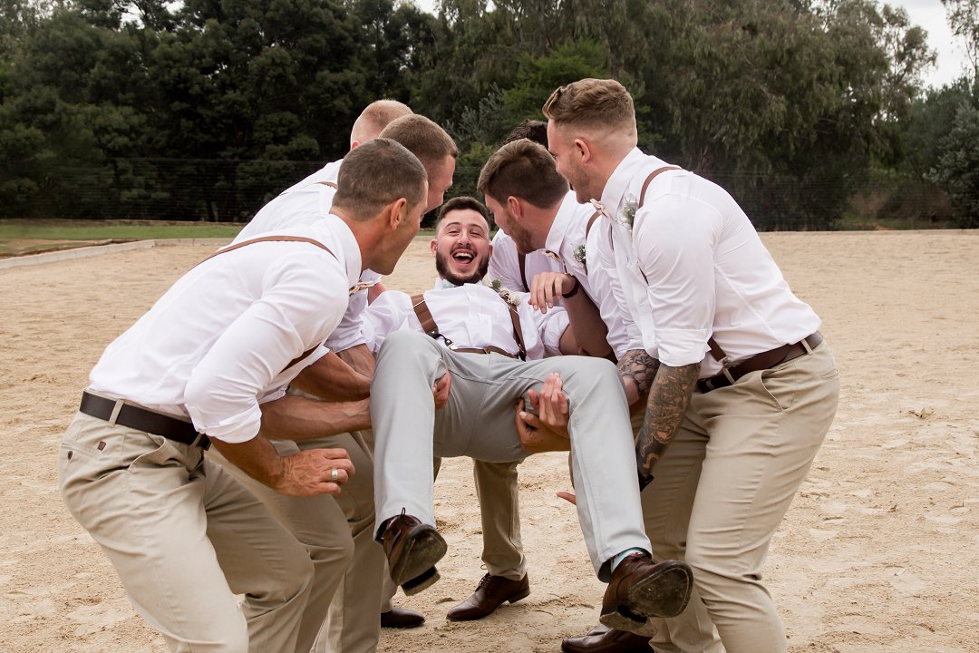 Bruidegom se pak was chinos, kruis bande en ʼn strikdas, wat net baie mooi by ons tema in gepas het.