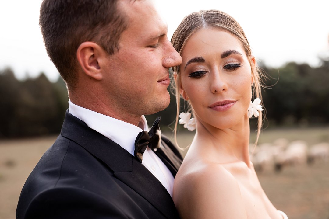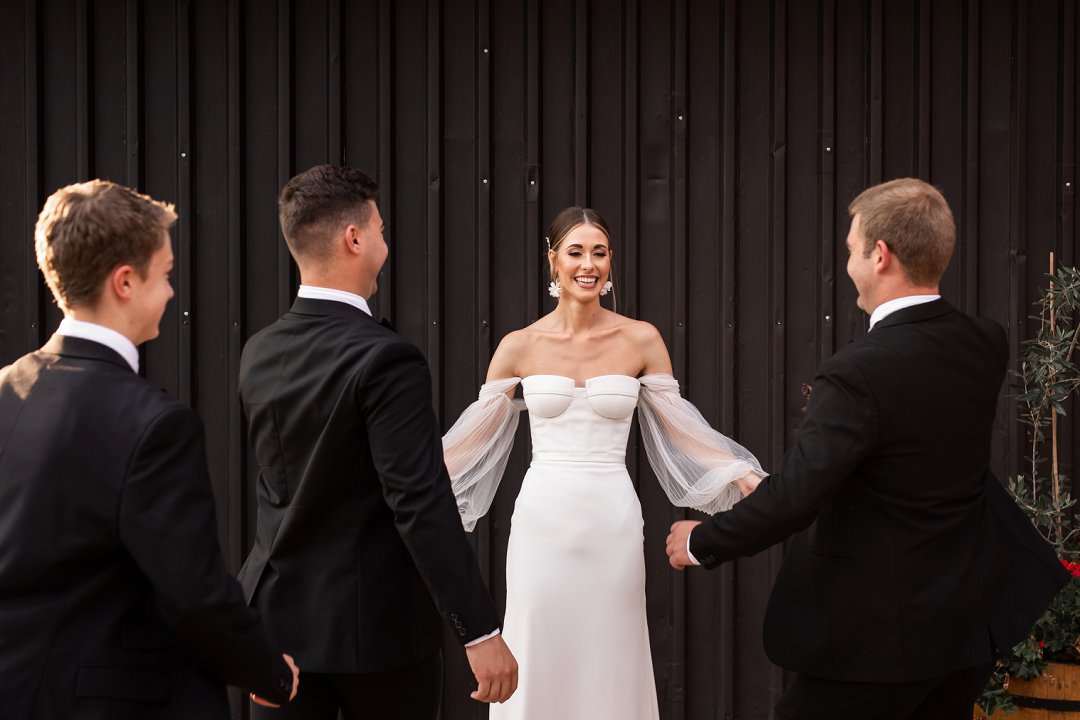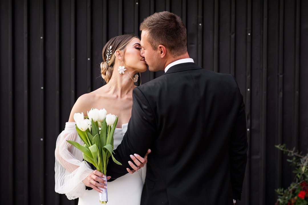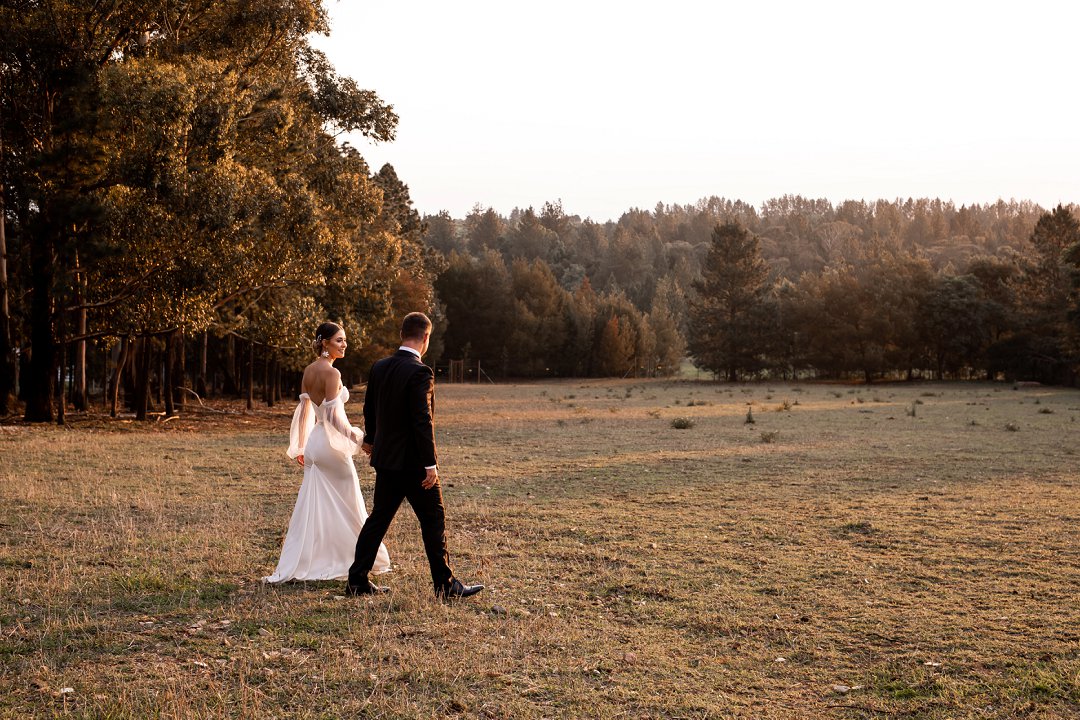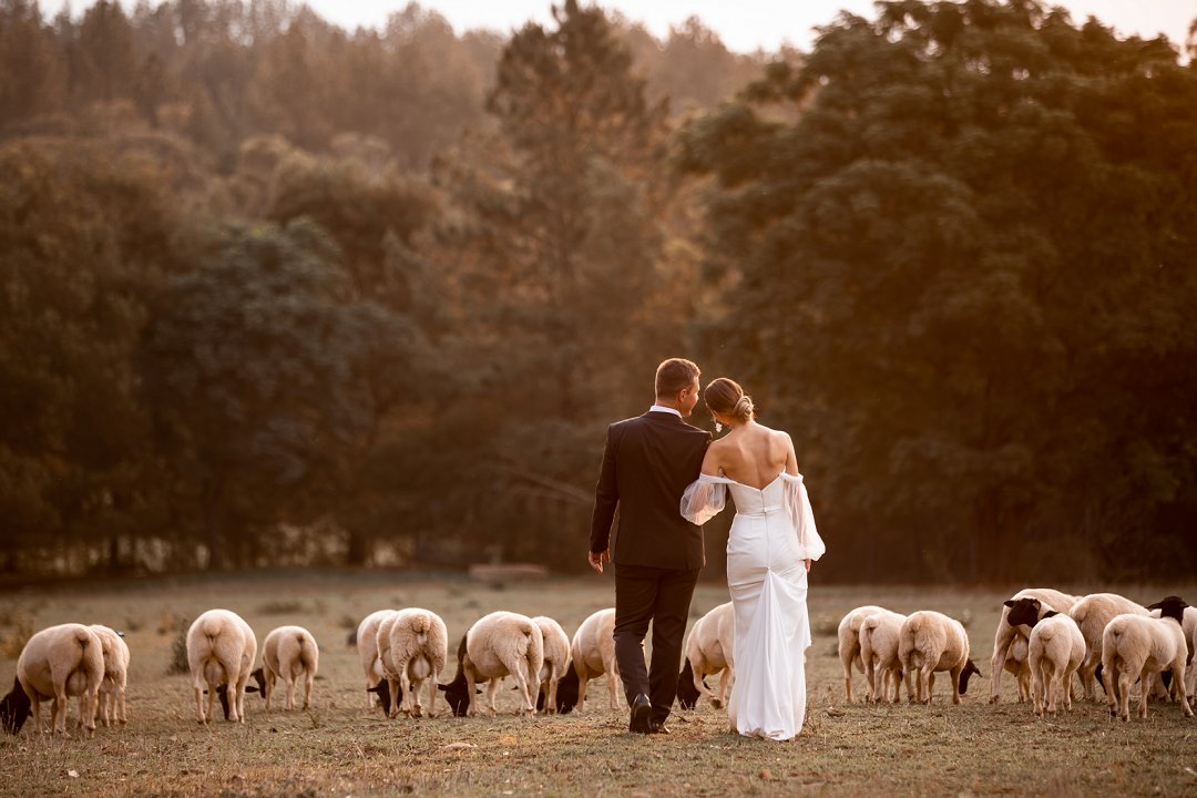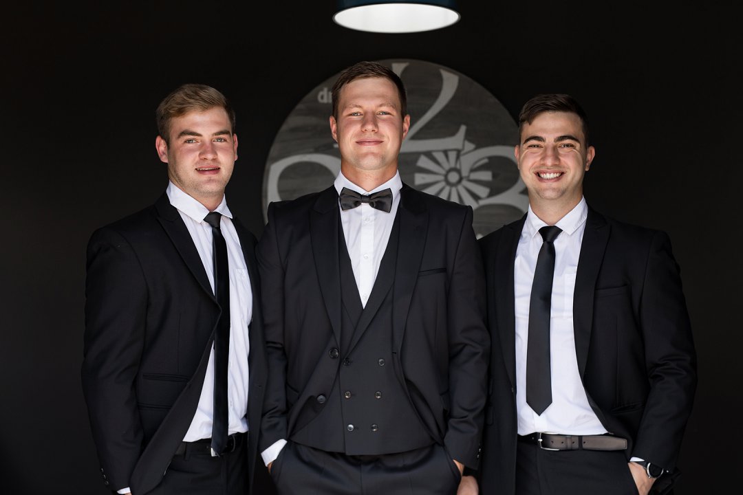 Henko het ʼn swart troupak gedra met ʼn onder baadjie en strikdas Van Hugo Boss. My trourok se inspirasie was baie modern en minimalisties maar steeds uniek gewees, ek het twee rokke gekombineer van die ontwerper Alena Leena, die Monstera rok in Crepe wat baie “slim fit” was met “mermaid cups” en ʼn lae V-rug gekombineer met die moue van die ARMERIA rok om ʼn sagte en unieke element by te dra aan die rok.