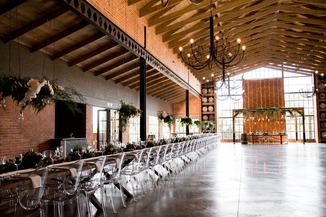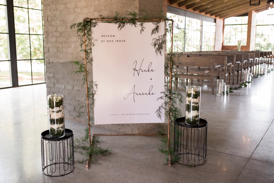Ons het toevallig verby Rolling Waters gery en na dat ons na dié venue gaan kyk het, dadelik geweet dit is die regte een! Ons het dit gekies omdat dit so mooi by die visie gepas het, die hoë groot vensters met ʼn industriële gevoel en moderne minimalistiese effek was presies wat ons wou hê.