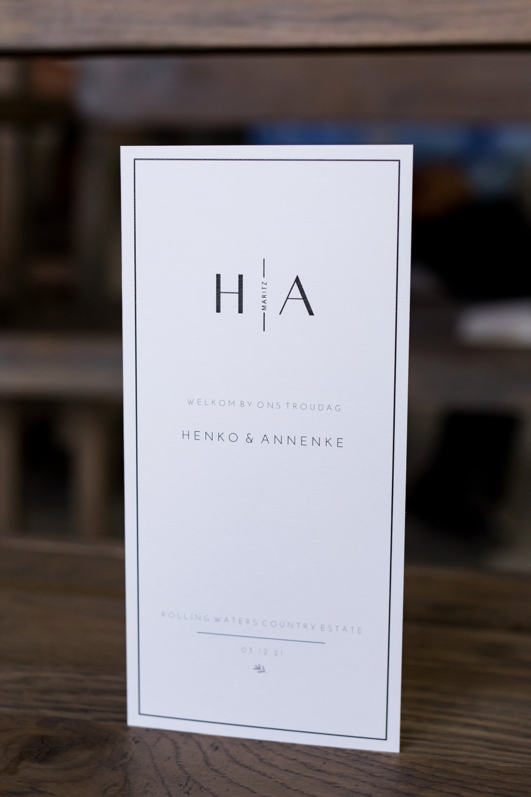Annenke en Henko het gegaan vir ʼn meer formele voorkoms vir hul troue en het elemente van Swart en Wit gebruik om die tema te inkorporeer. Al die strooijonkers en ook strooimeisies het swart aangehad. Dit is so mooi en definitief iets wat altyd in die mode sal wees.