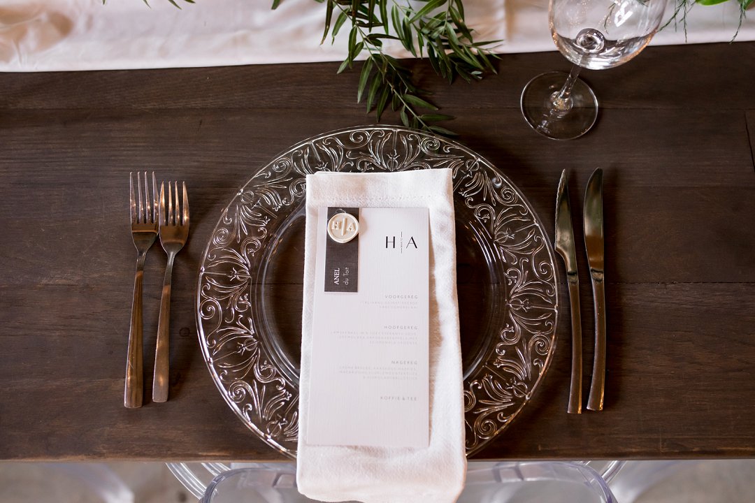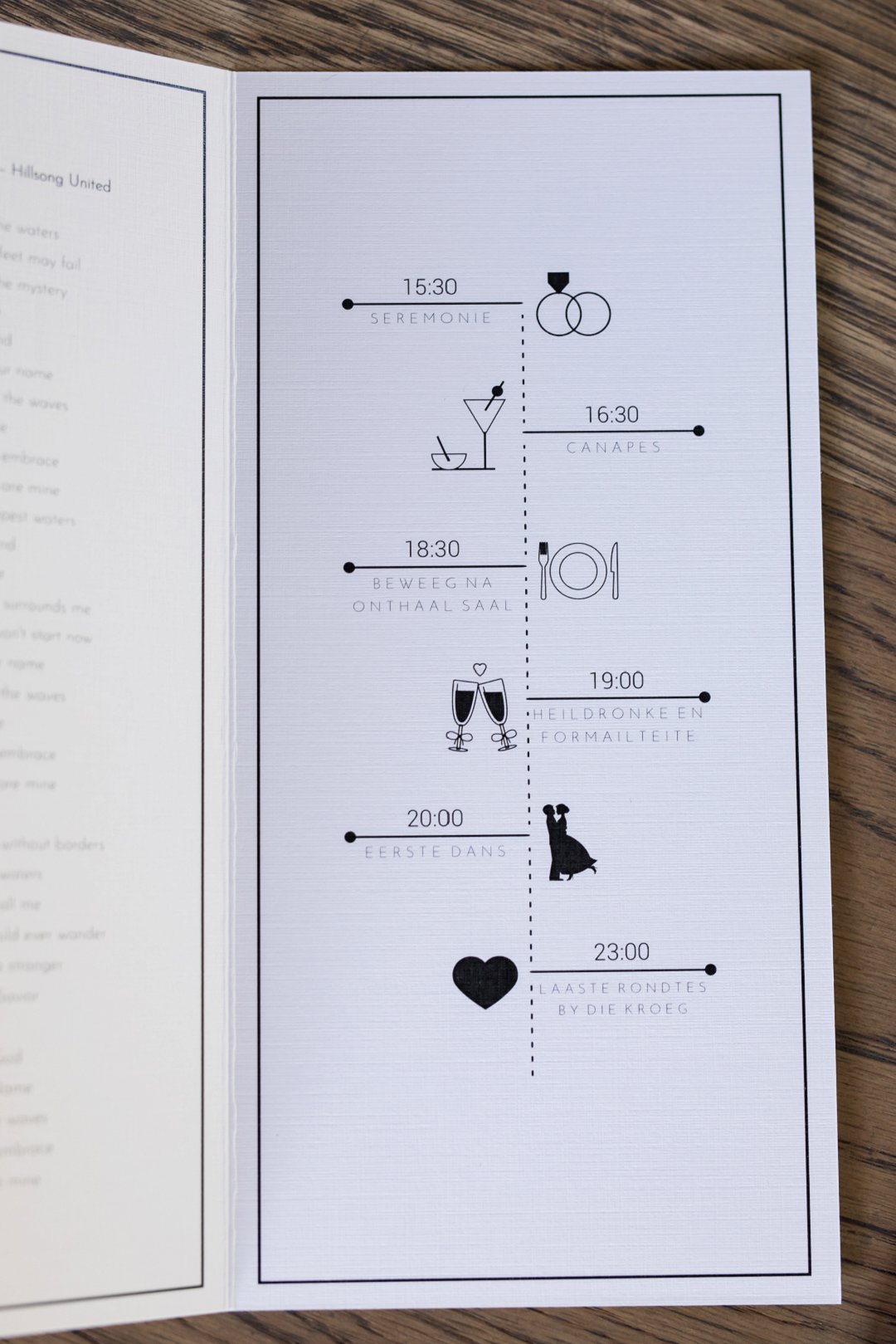 Die trou styl wat ons in gedagte gehad het was formeel, baie wit, swart, modern en strak.