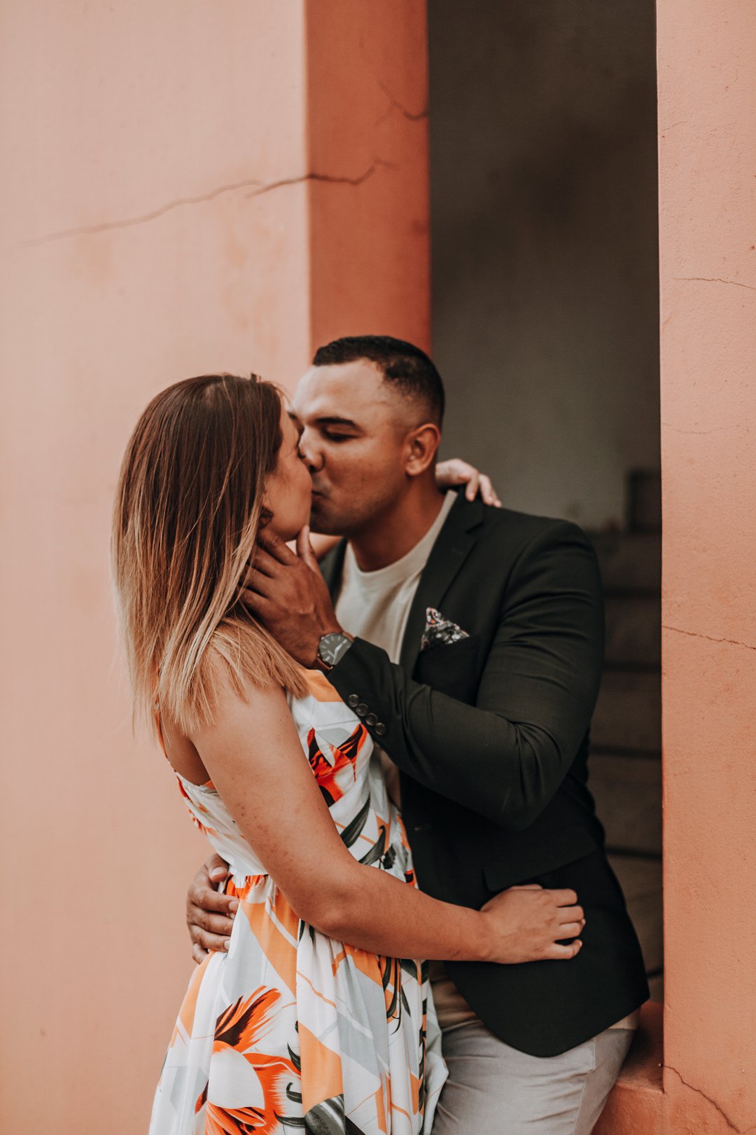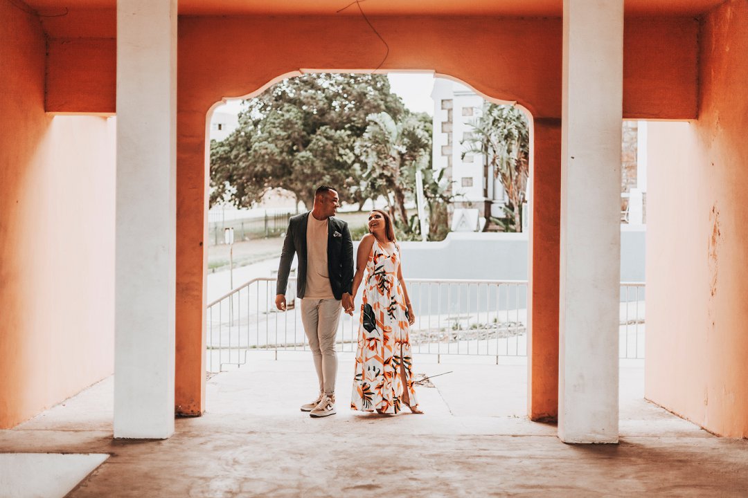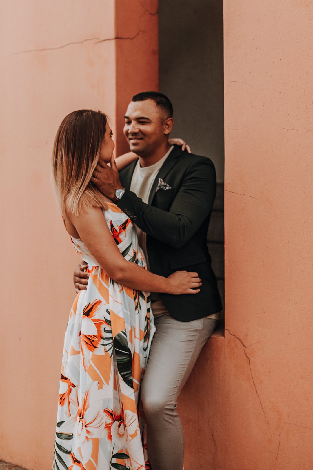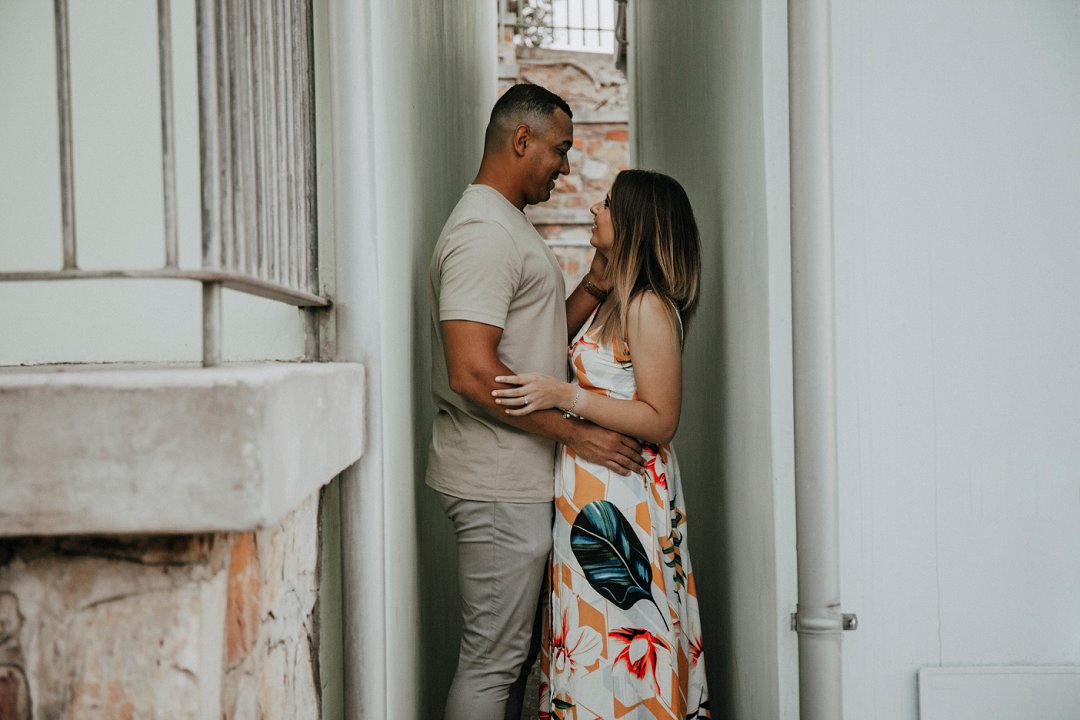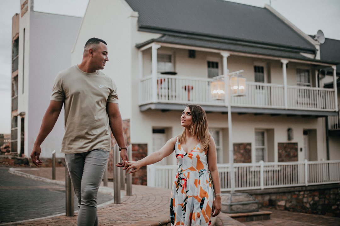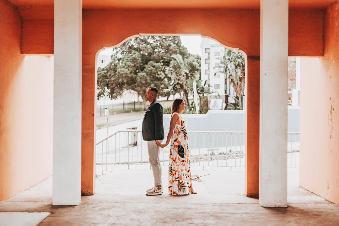 Ons het gehou van die idee dat daar geboue in die agtergrond moet wees – ʼn tipe van ʼn fotosessie in ‘n stad – omdat ons troufoto’s in die natuur gaan wees. Albei van ons was wel bietjie bang dat dit te besig gaan wees en sou nie gemaklik voel daarmee met klomp mense rondom ons nie. Ons fotograaf het darem die perfekte plek vir ons uit gewys waar daar die mooiste kleurvolle geboue was en dit was privaat – perfekte kombinasie.