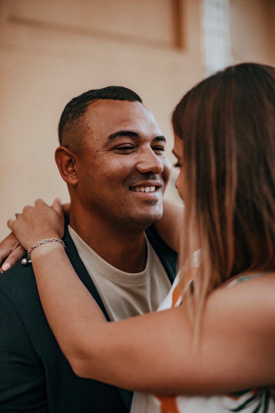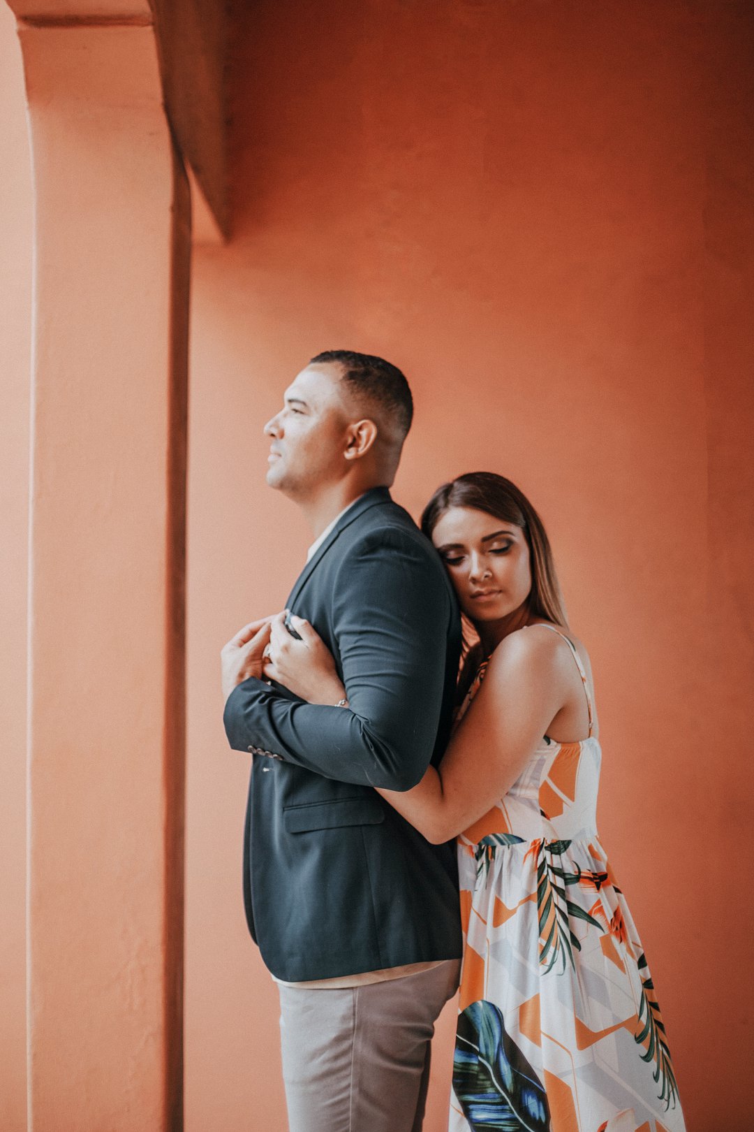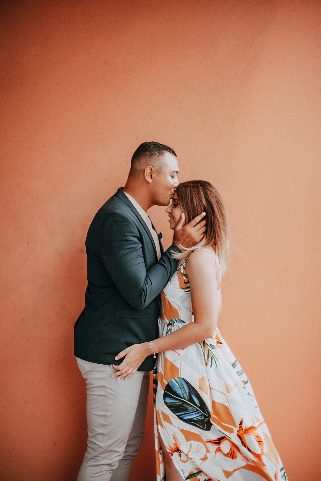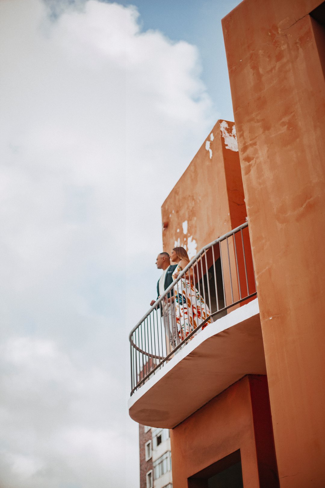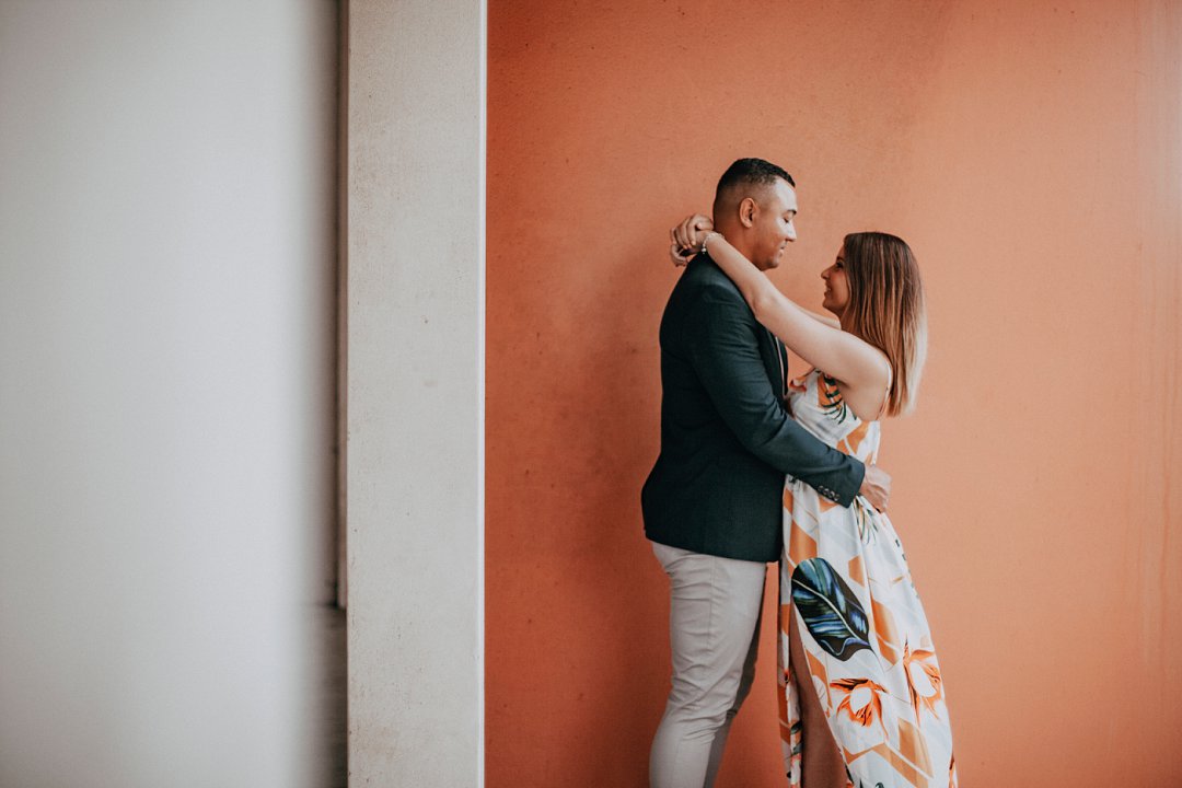 Ons het gehou van die idee dat daar geboue in die agtergrond moet wees – ʼn tipe van ʼn fotosessie in ‘n stad – omdat ons troufoto’s in die natuur gaan wees. Albei van ons was wel bietjie bang dat dit te besig gaan wees en sou nie gemaklik voel daarmee met klomp mense rondom ons nie. Ons fotograaf het darem die perfekte plek vir ons uit gewys waar daar die mooiste kleurvolle geboue was en dit was privaat – perfekte kombinasie.