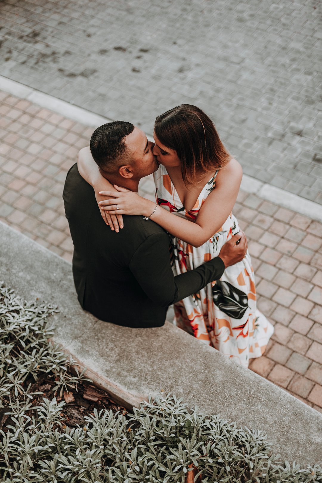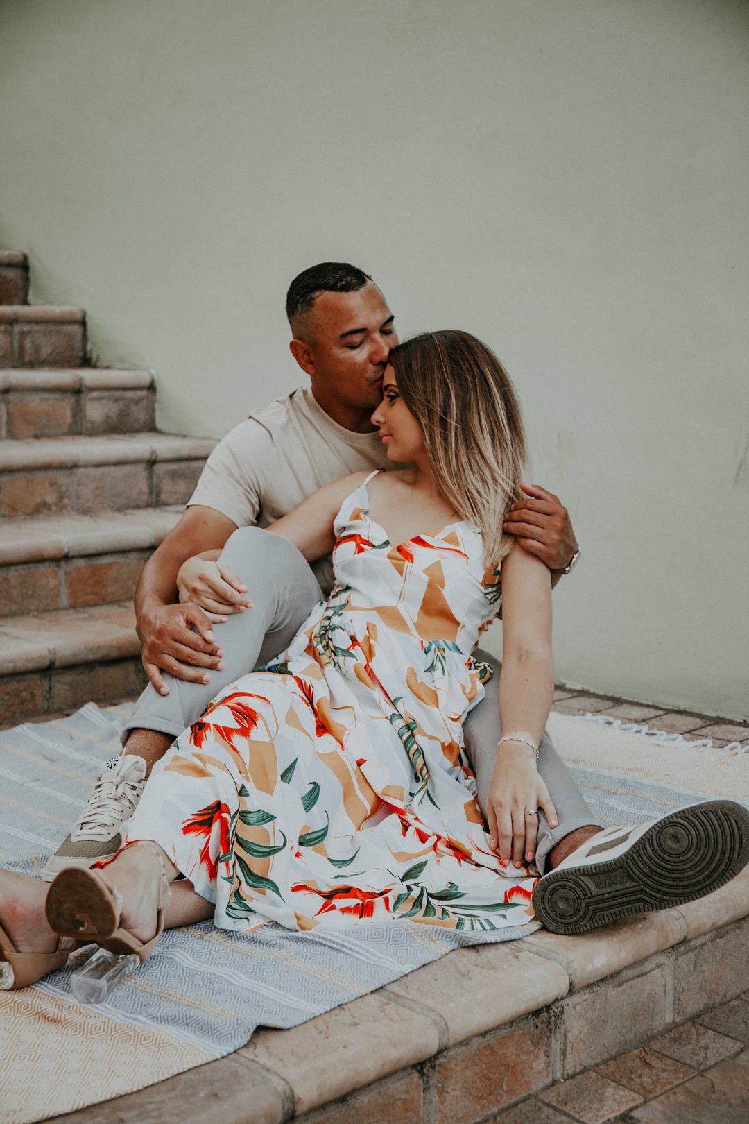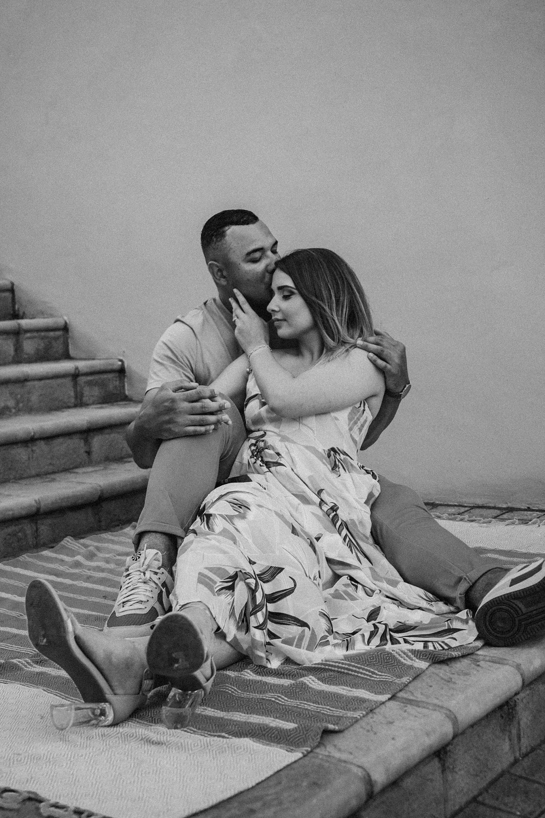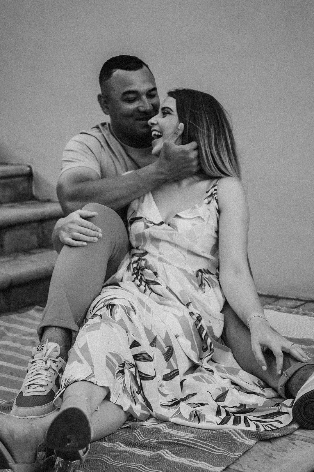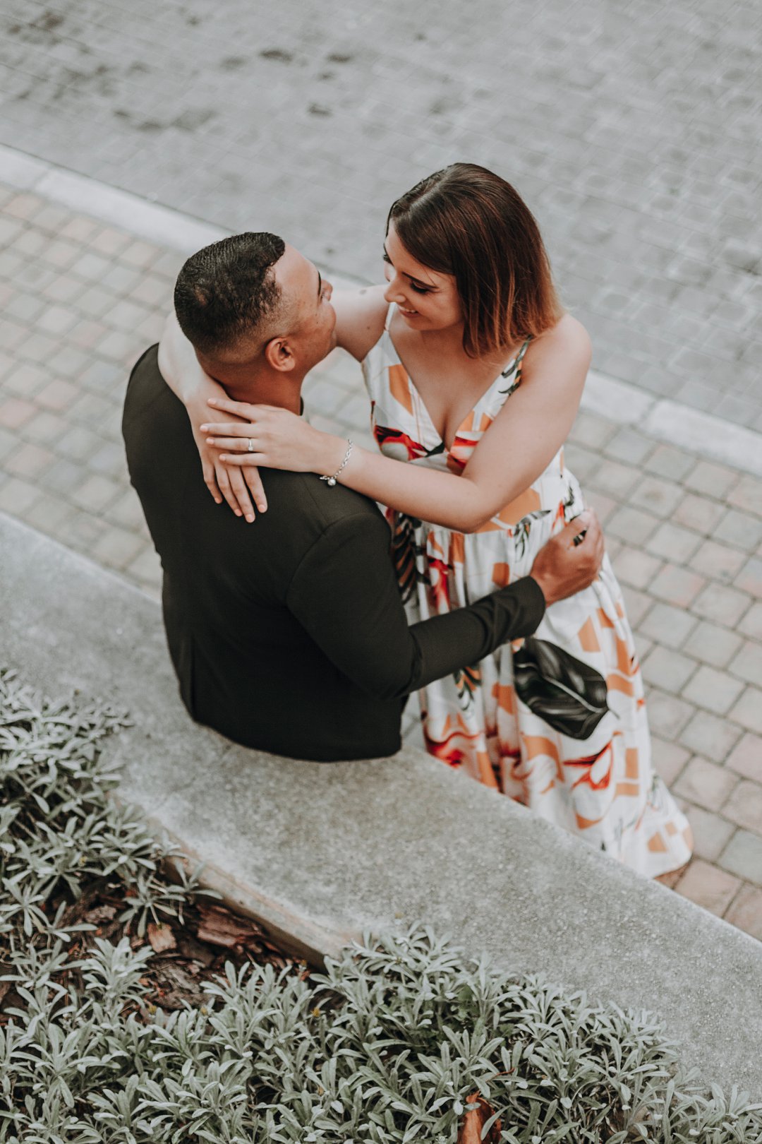 Die paartjie se uitrustings het só mooi gelyk in kontras met die geboue in die agtergrond. Tiffany se vloeiende blomme rok gee die fotosessie ʼn vakansie atmosfeer. Jy kan sien die paartjie het die fotosessie vreeslik geniet en het tot ʼn glasie vonkelwyn geniet! Dit is mos hoe dit gedoen moet word.