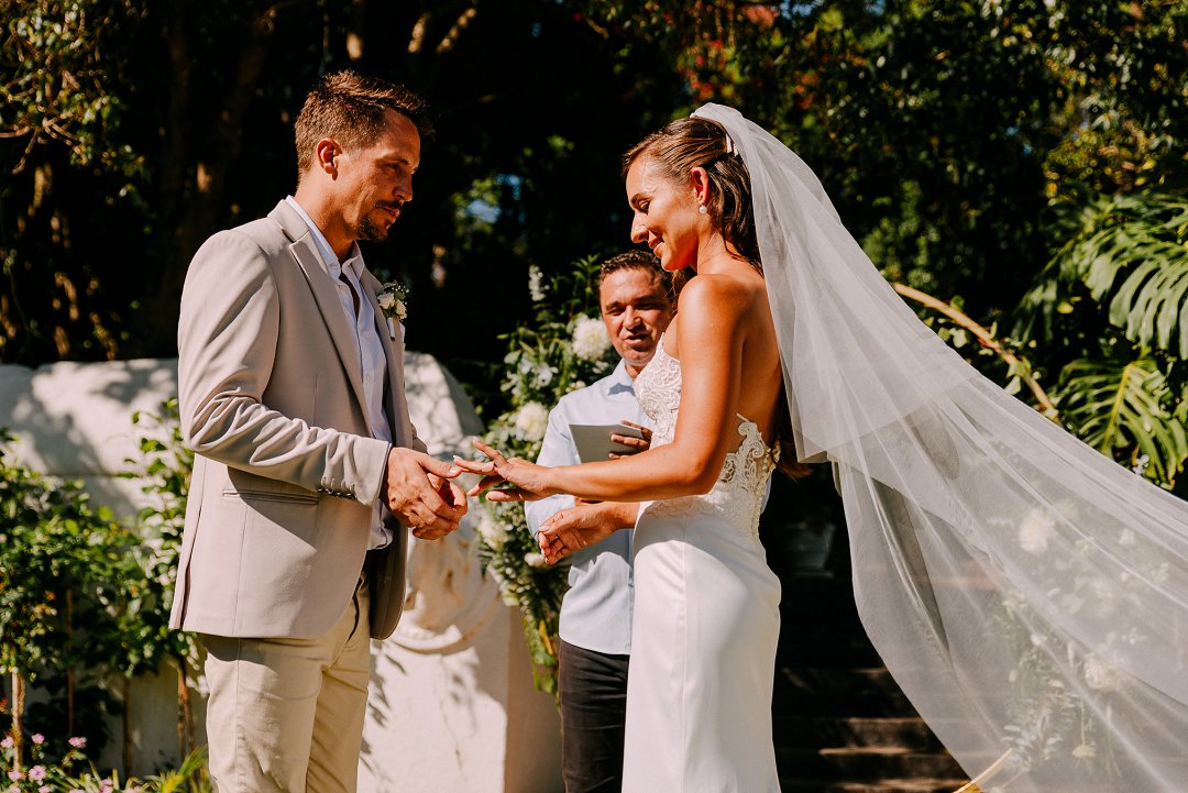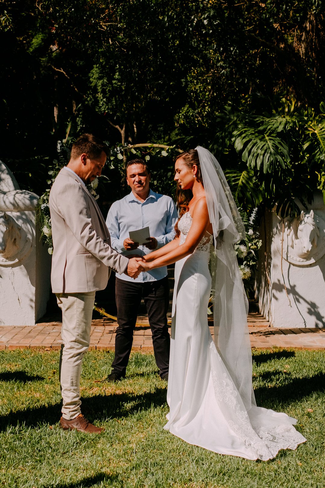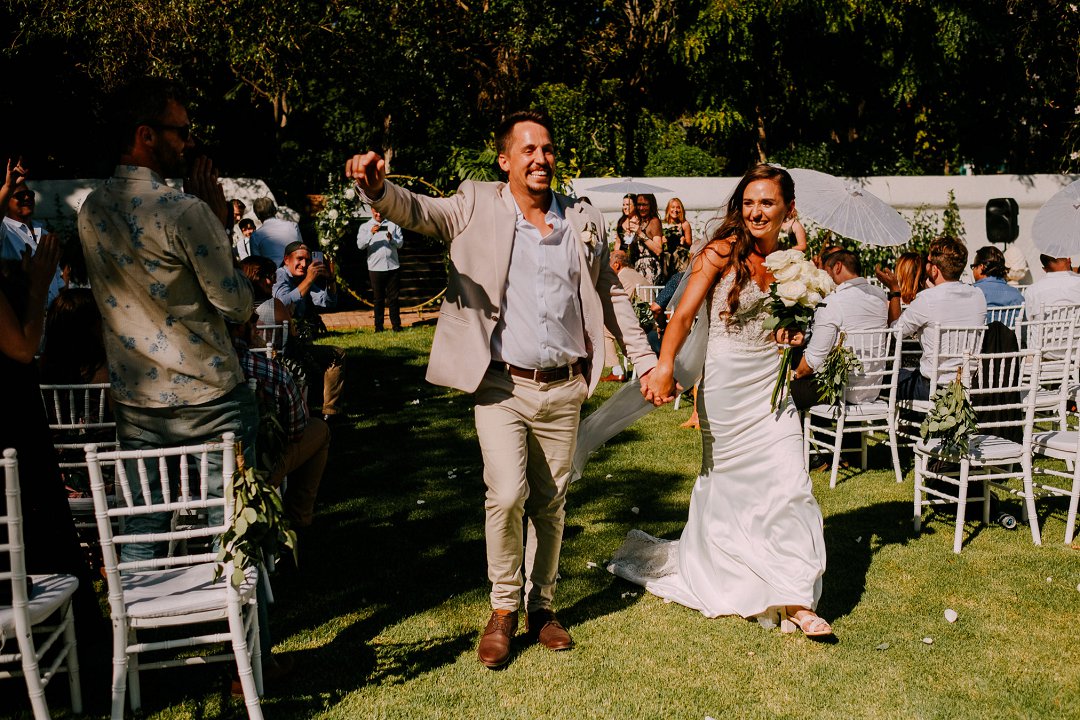Rol af om meer te lees oor Jean en Courtney se buitelug tuin troue en hul liefdesreis.