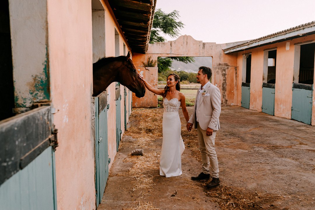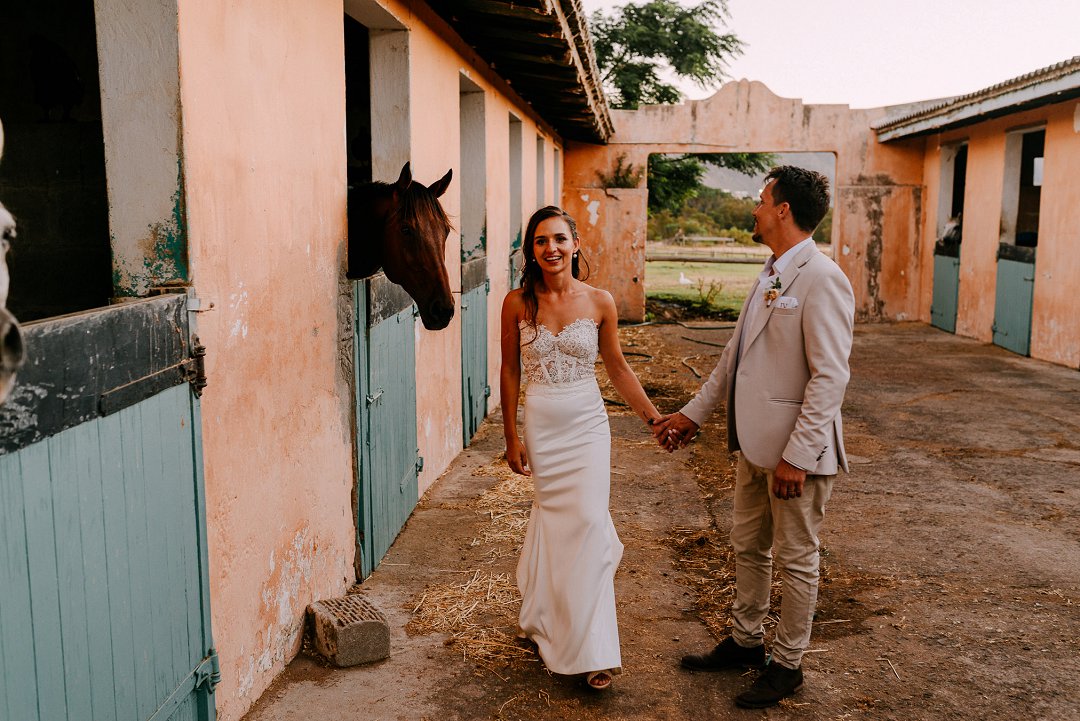 Ons is gaande oor die paartjie se fotosessie gewees. Die pragtige oranje sonsak lig is so romanties en mooi! Hulle het tot ʼn draai by die perdestalle gemaak waar die perd saam vir ʼn foto poseer het. Vir hul wittebrood het hulle ʼn lieflike wegbreek geniet na na Mosambiek.