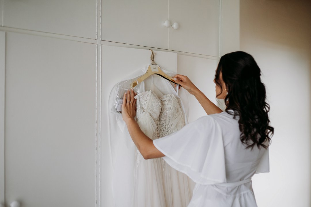 Ek het nie ʼn spesifieke styl vir my trourok in gedagte gehad nie. Al wat ek geweet het was dat ek wou hê dit moet gepas wees vir die omgewing en my mooi laat voel. Ek het die trourok van my drome by Vonvé Bridal gevind met die hulp van my ma en suster. Ons het so ʼn prettige dag gehad om verskillende rok-style te probeer en vonkelwyn te drink en ek het dadelik verlief geraak op die gedetailleerde hand borduurwerk en die spierwit/melkerige kleur van die Lora-rok, van Wona Concepts. Ek het dié trourok bietjie aan gepas deur die skouer moue by te voeg, wat ek later die aand kon afhaal.