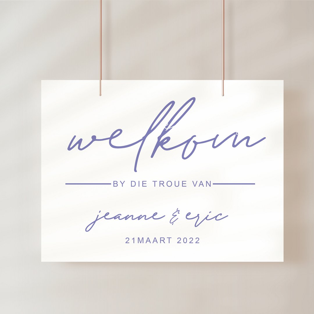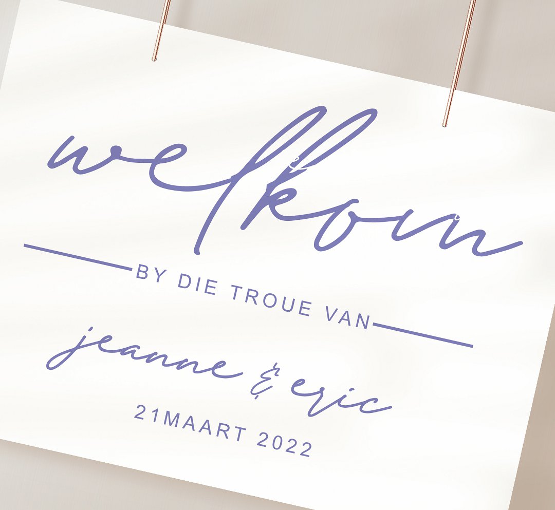 Veri Peri is die Pantone Kleur vir 2022 en ons deel ʼn Veri Peri Troue welkombord idee vir jou troudag ontwerp deur Invitation Café. Alle paartjies het hul eie idee vir hul trou skryfbehoeftes, party paartjies hou van iets helder, ander van ligter kleurskakerings. Soms wil paartjies ʼn meer simplistiese styl hê en ander soek weer baie ontwerp elemente.