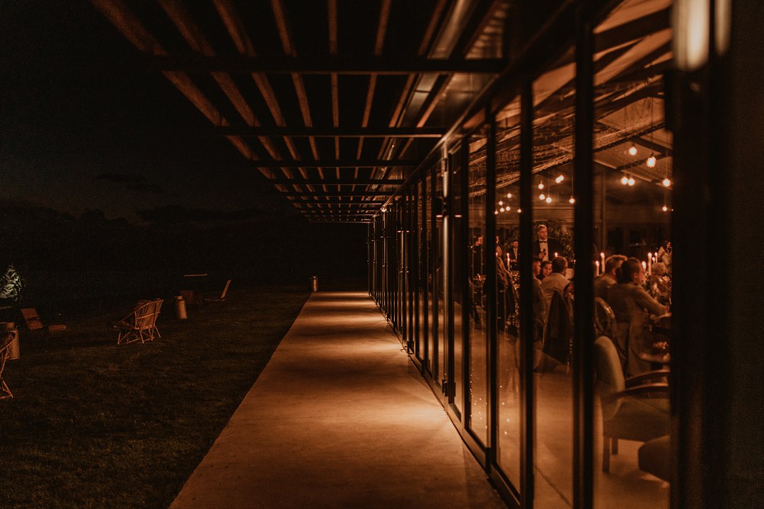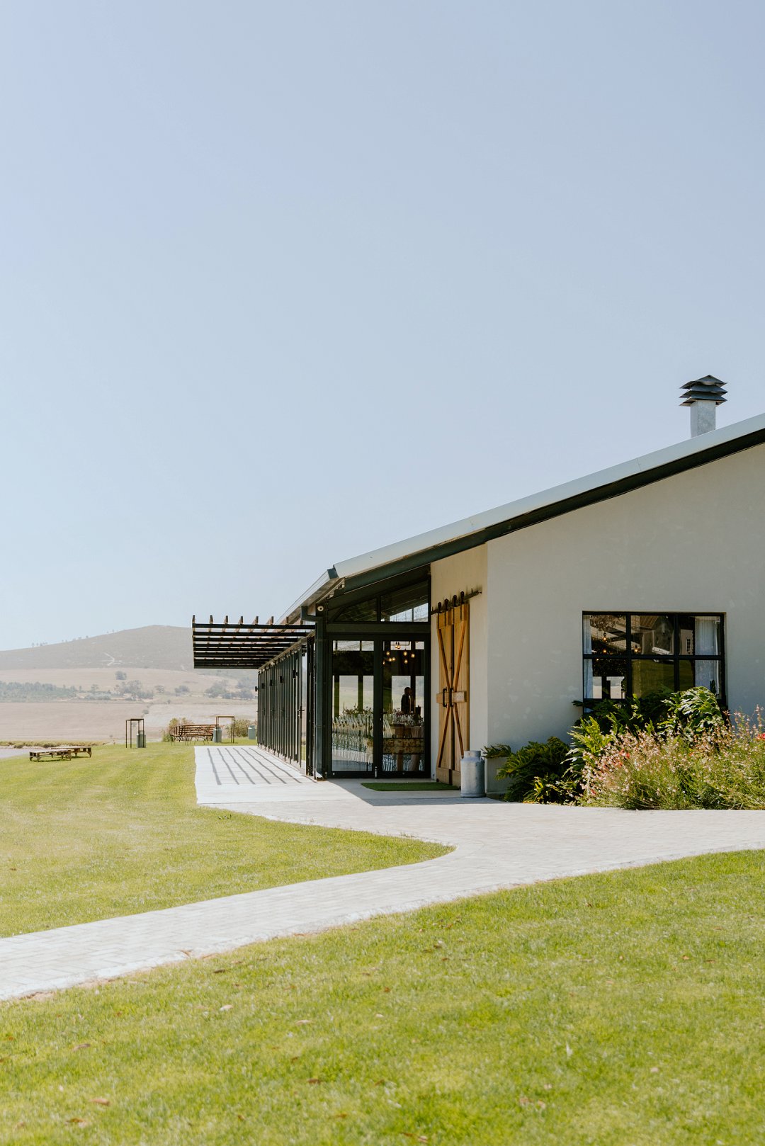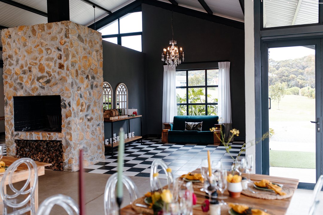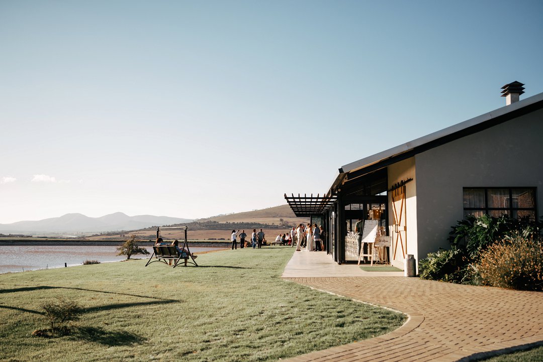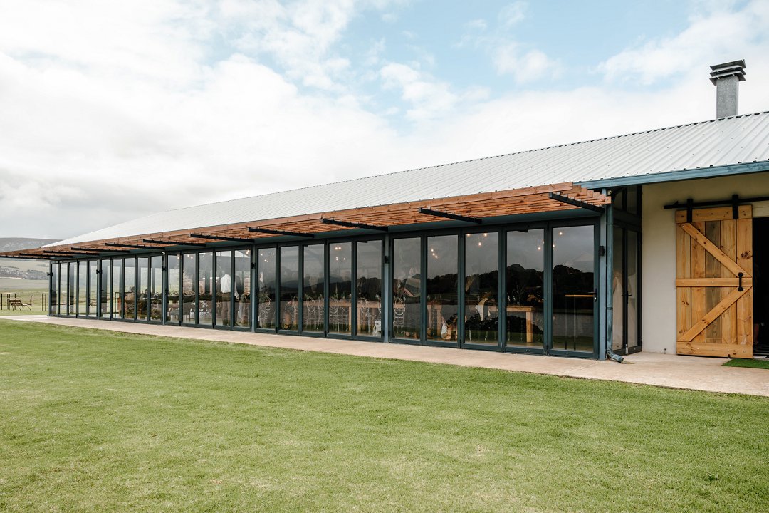 Die trou venue is ʼn moderne gebou met meestal glas aan die een kant van die onthaal-lokaal. As jy instap by die onthaal lokaal sal jy sommer onmiddellik tuis voel. Die rou steen mure gee daardie warm gevoel, waar die glas in kontras weer die moderne elemente in bring. Met die dubbel volume dak en die klomp glas deur is paartjies en hul trou gaste verseker dat hulle pragtige uitsigte sal hê en ook die sonsak vanuit die trou venue kan aanskou.