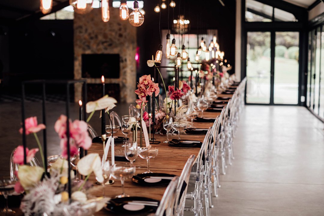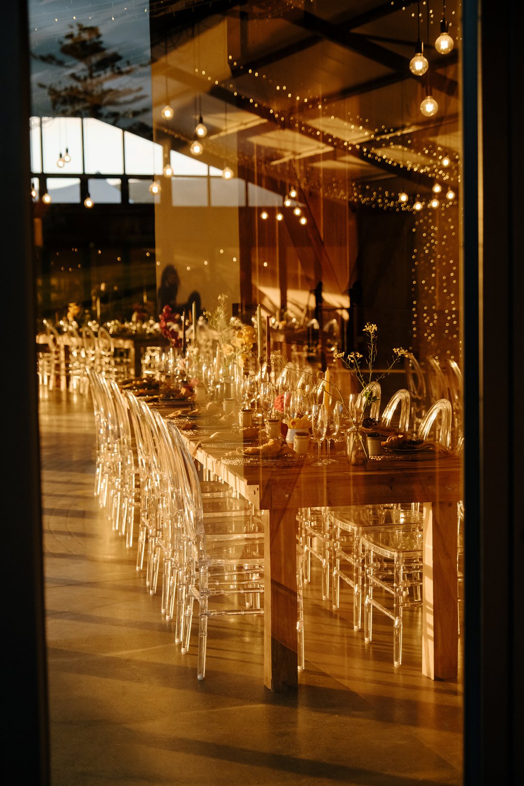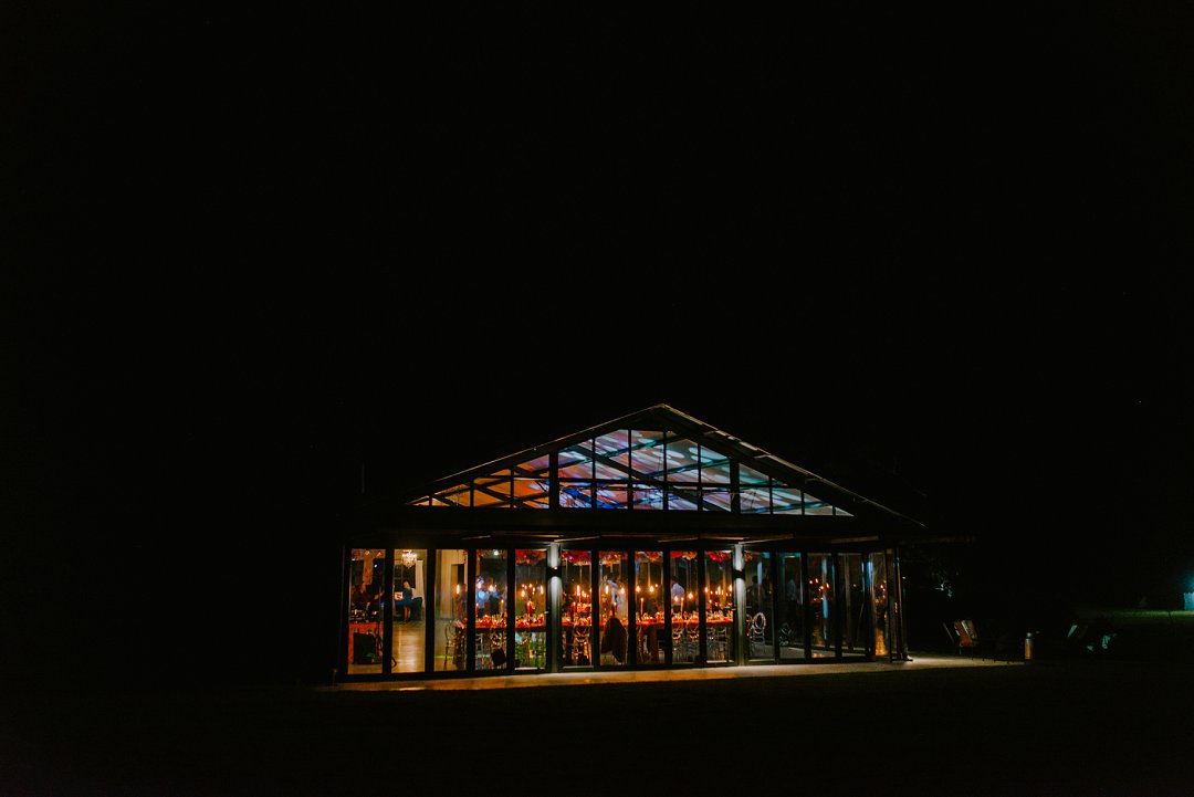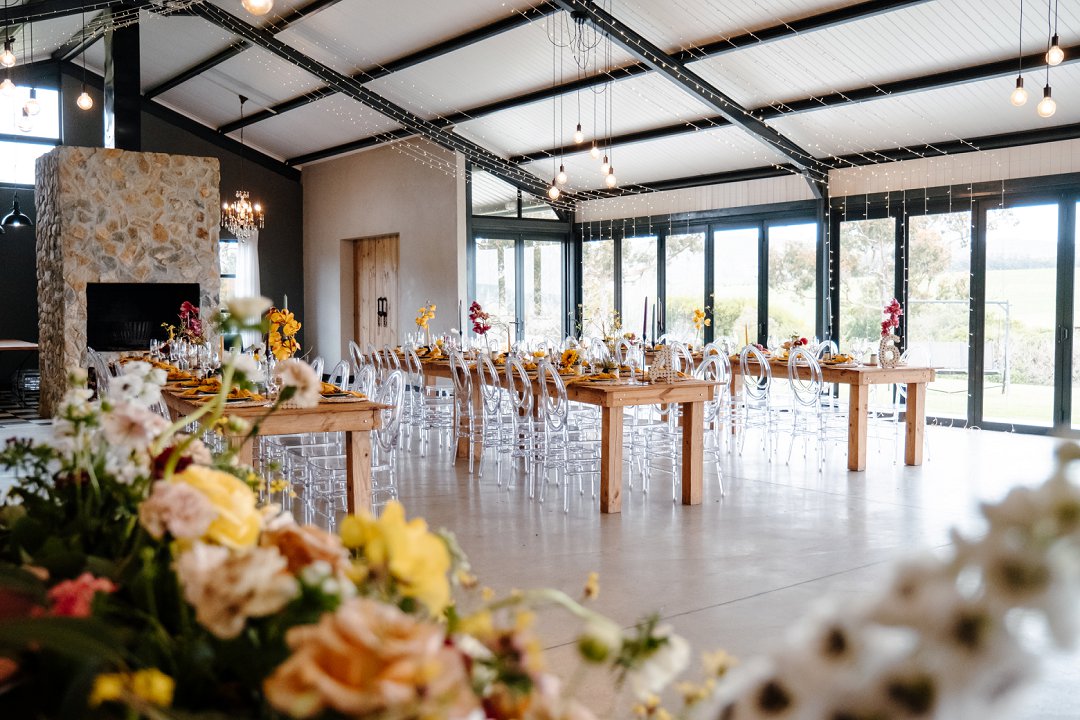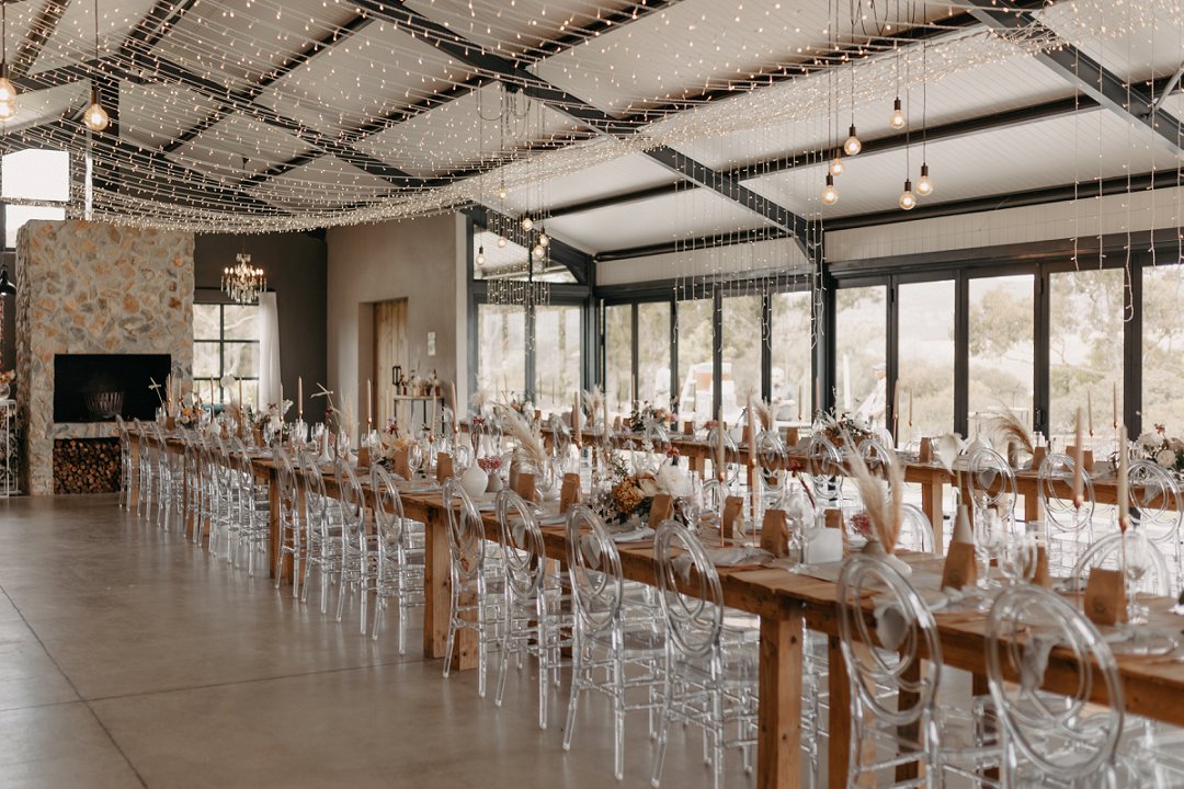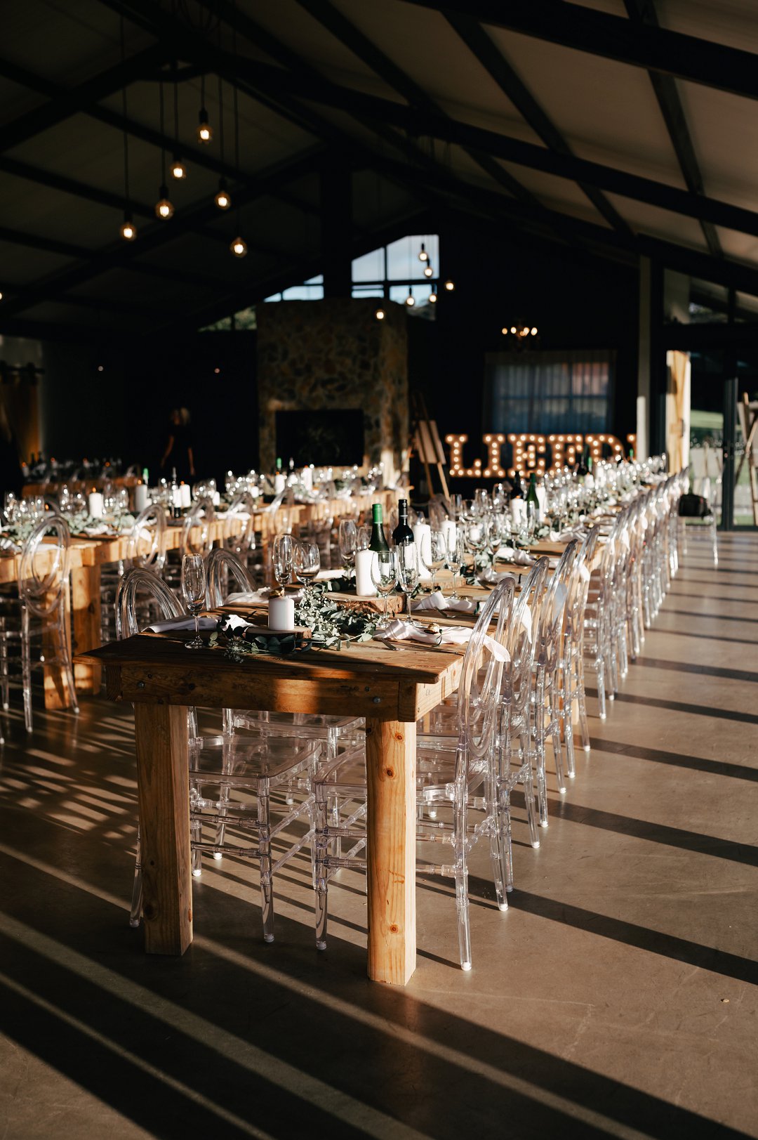 Die trou venue is ʼn moderne gebou met meestal glas aan die een kant van die onthaal-lokaal. As jy instap by die onthaal lokaal sal jy sommer onmiddellik tuis voel. Die rou steen mure gee daardie warm gevoel, waar die glas in kontras weer die moderne elemente in bring. Met die dubbel volume dak en die klomp glas deur is paartjies en hul trou gaste verseker dat hulle pragtige uitsigte sal hê en ook die sonsak vanuit die trou venue kan aanskou.