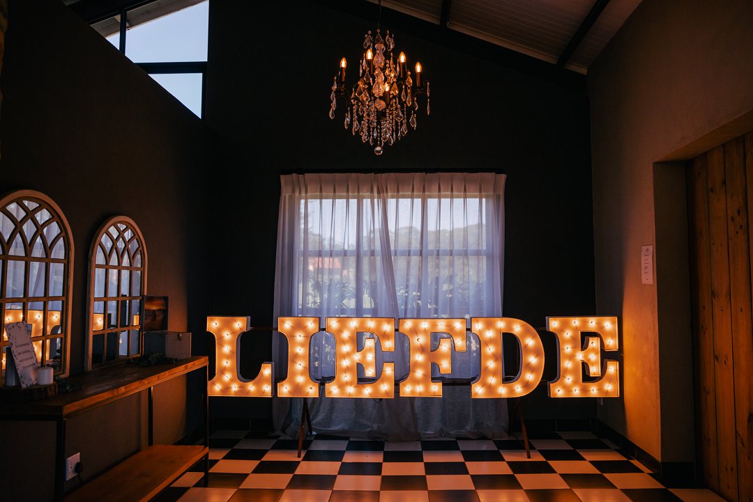 Murasie verskaf genoeg buite meubels vir die Canapés asook kussings vir die seremonie area. Verskeie groot dekor items byvoorbeeld die Seremonie Boog, Jenever Kroeg toonbank, kussings, esels, kroegmanne asook ʼn trou venue koördineerder. Die seremonie area is ook ingesluit. Ons het ook ‘n braai lapa waar ons gaste heerlik braai en kuier die Vrydagaand en gedurende die naweek.