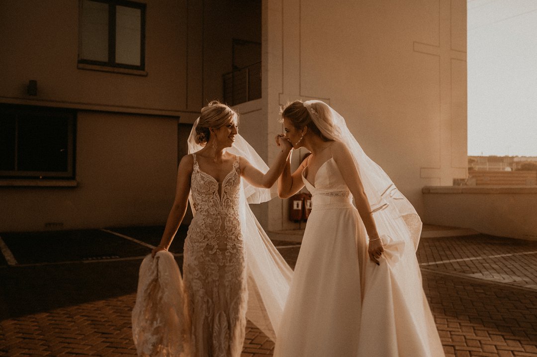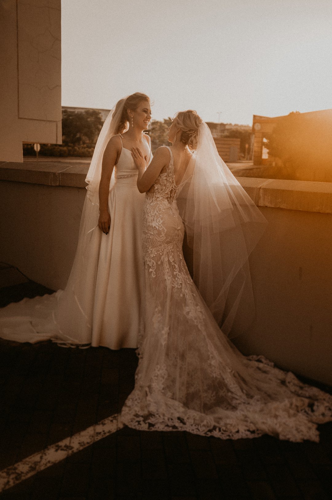 Albei bruide het beeldskoon gelyk in hul pragtige trourokke uniek na elk se styl. Die paartjie het elkeen hulle eie trourok styl gehad, wat so mooi mekaar gekomplimenteer het. Een trourok met baie fyn kant detail op en ʼn ander met ʼn meer simplistiese satyn styl.
