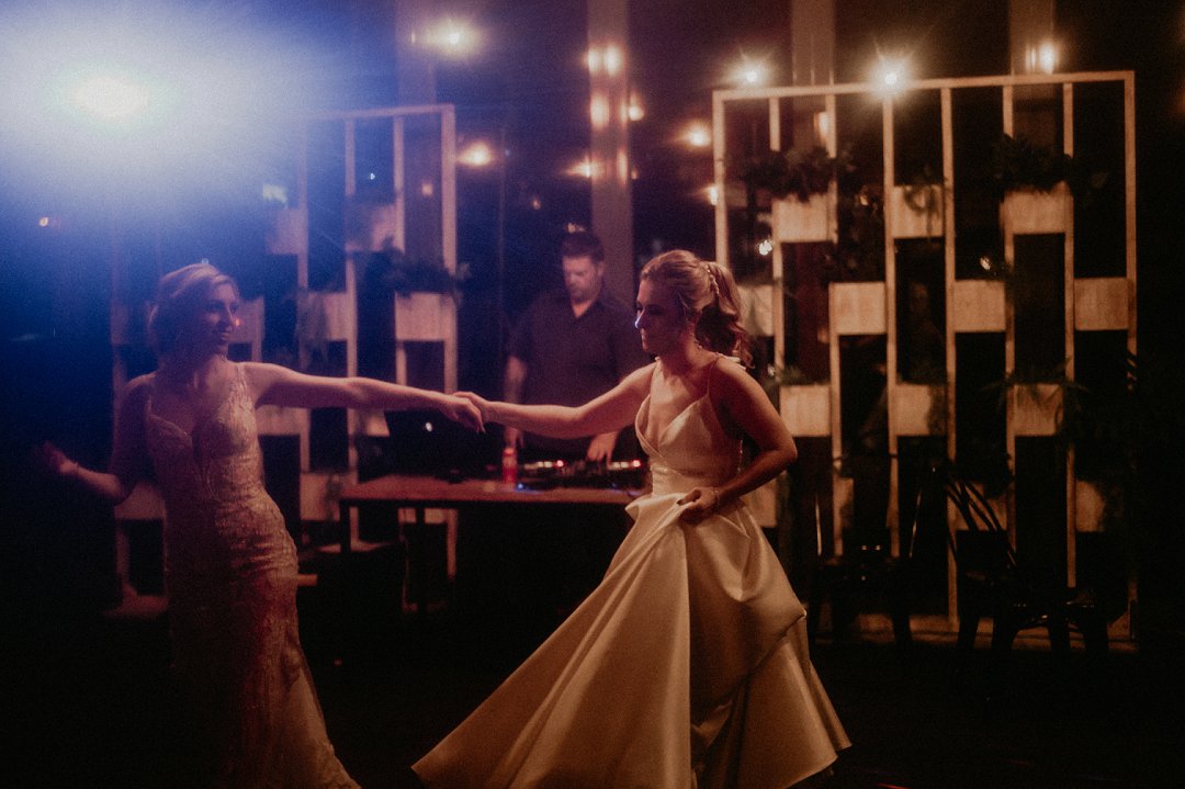 Daar was nie ʼn eerste dans nie. Ons geniet dit dikwels om met mekaar te dans, maar het gedink dit was nie nodig of prakties vir ons om daardie dag te dans nie. Die dag wou ons net geniet en nie gestres voel oor enigiets nie. Ons het gekies dat ons kunstenaar, Stella Rose, die dansbaan oopmaak. Na sy die vloer oopgemaak het, het ons die hele nag om gedans en het blase op ons voete gehad om dit te bewys.