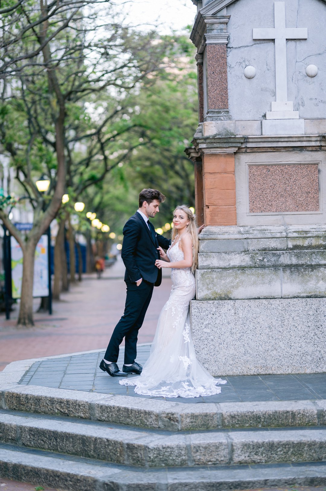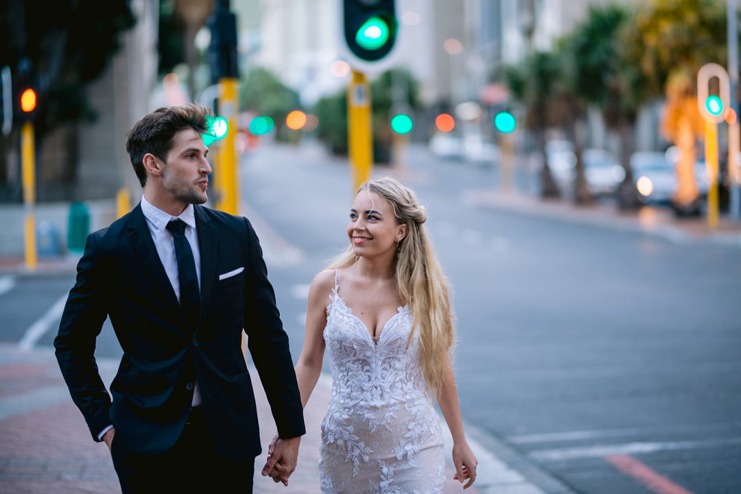 Daar is soveel elemente wat mens mee kan werk wat jy nie gewoonlik sien in ʼn trou fotosessie nie. Dinge soos die ligte van die stad, al die beweging van verkeer en voetgangers, die hoë geboue met die verskillende style argitektuur. Dit skep ʼn unieke atmosfeer deur die sag teen die hard af te speel.