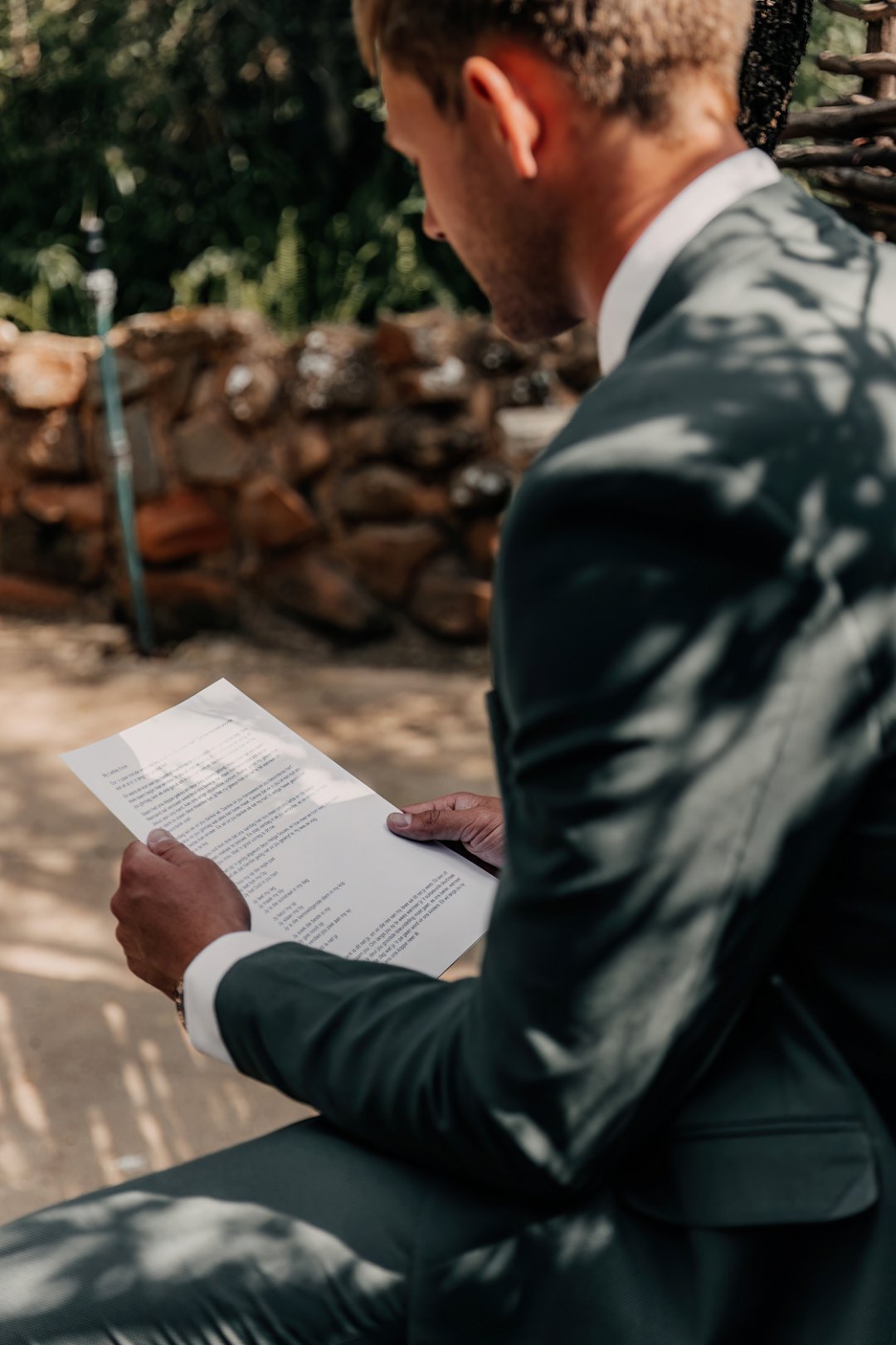 Alles het vlot verloop op ons trou dag, behalwe toe ek besef my toespraak op Erich is nie meer in die koevert waarin hy was nie, en ek het hom by die huis vergeet.
