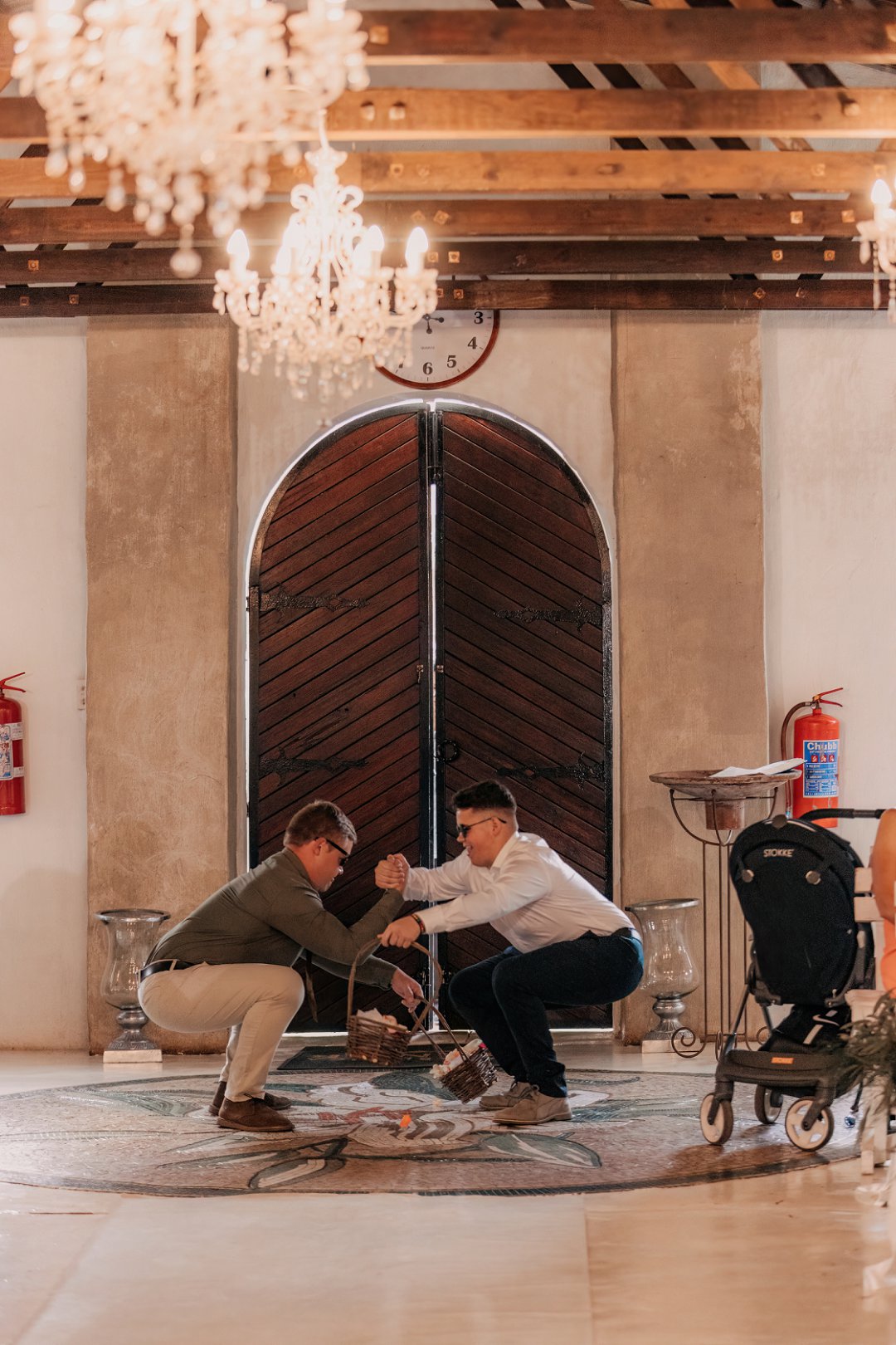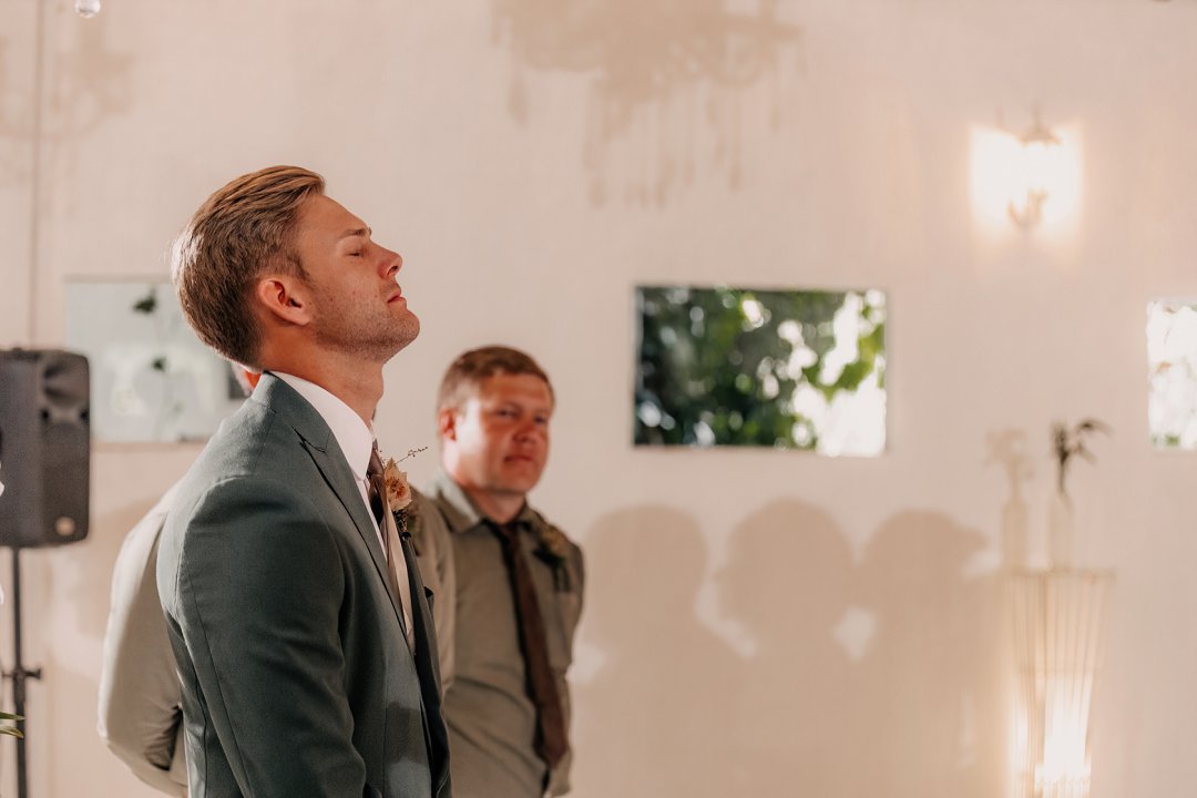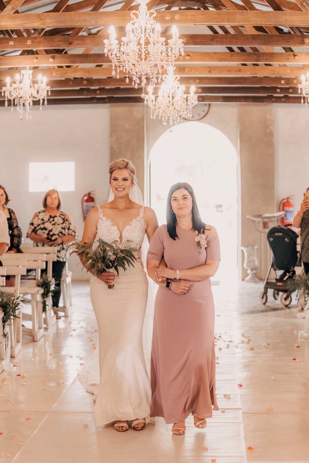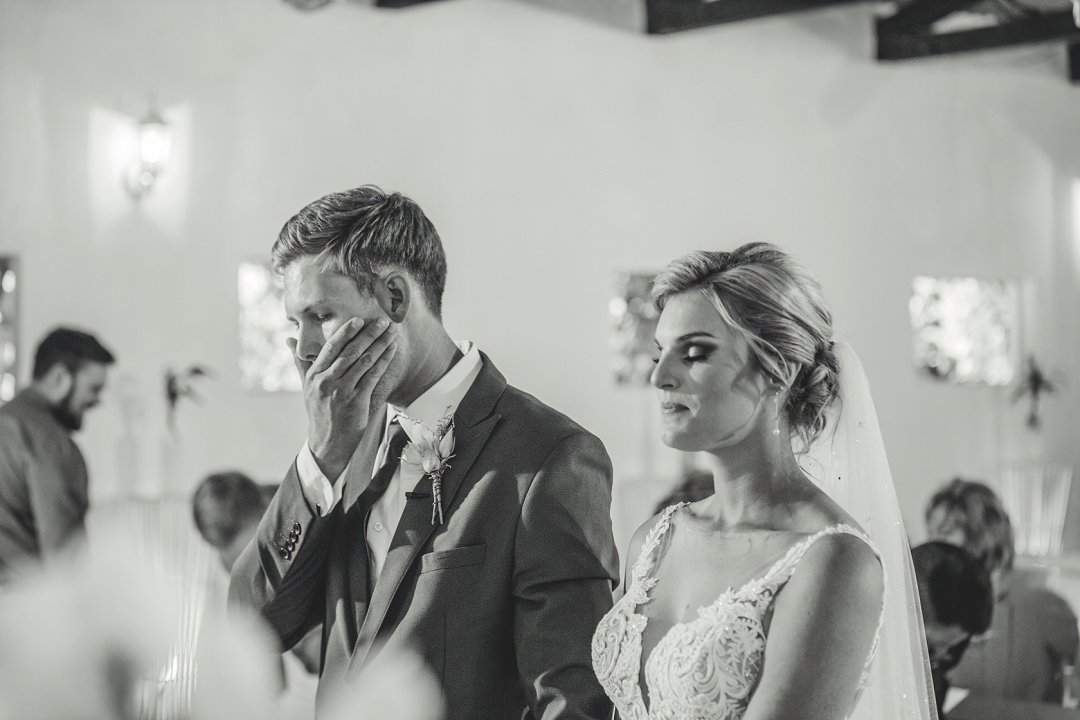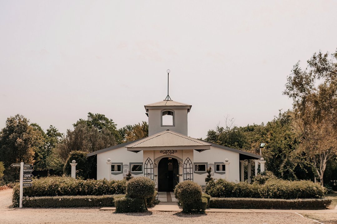 Hulle het hul seremonie gehad in die mooi moderne kapel geleë op die 8 hektaar van die trou venue, wat dit lekker gemaklik maak vir trou gaste om tussen die seremonie en trou venue te beweeg.