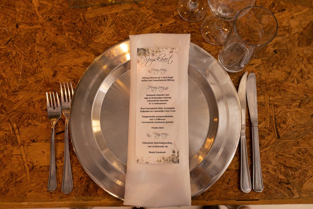 Nie net is die trou venue mooi nie, maar hulle spyseniering is lip lek lekker. Erich en Gerhaldine se trou gaste het ʼn lekker gesellige kuier gehad saam met die paartjie.