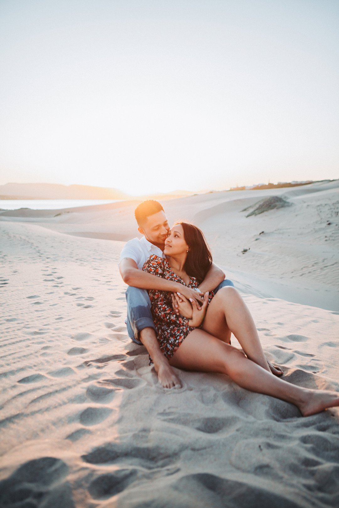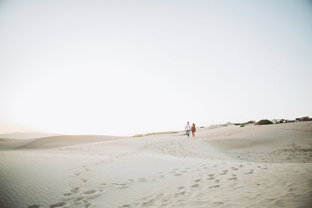 ʼn Strand verlowing fotosessie hoef nie noodwendig net in die water te wees nie. Ons is dol verlief op die duine foto’s wat deel was van die paartjie se fotosessie. Die mooi sagte lig in die agtergrond en die riffels in die duine se sand maak die foto’s soveel meer interessant en só mooi.