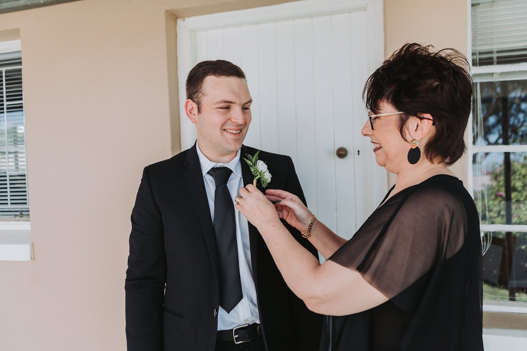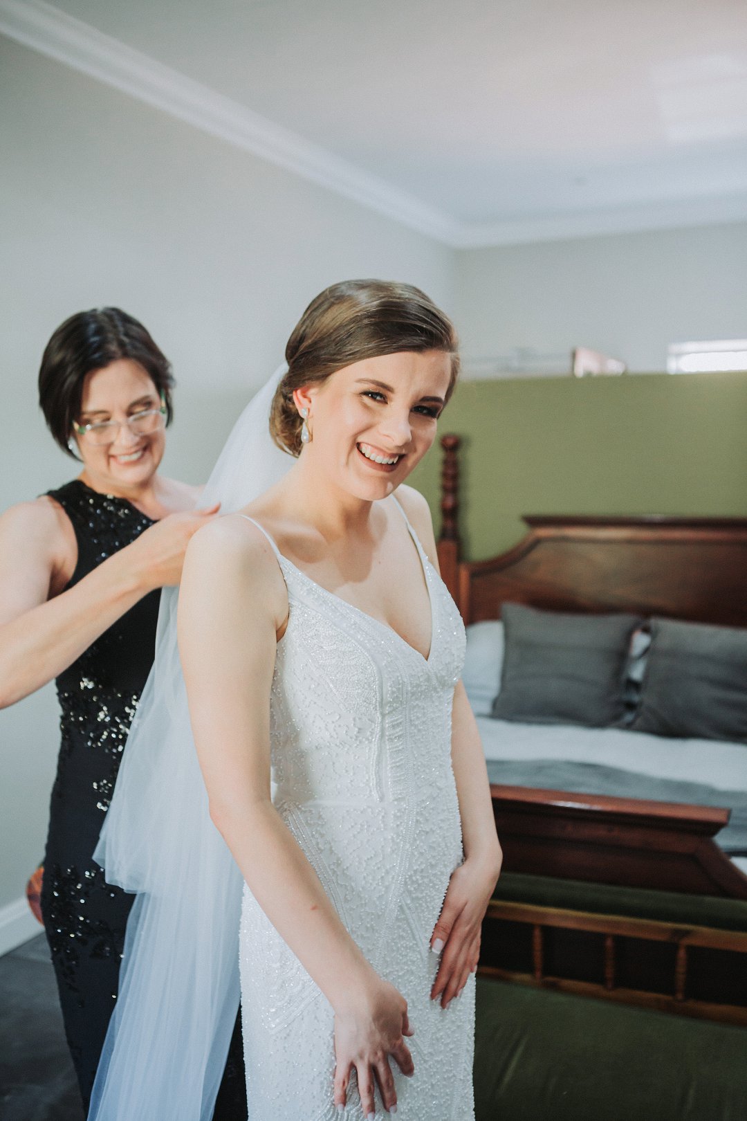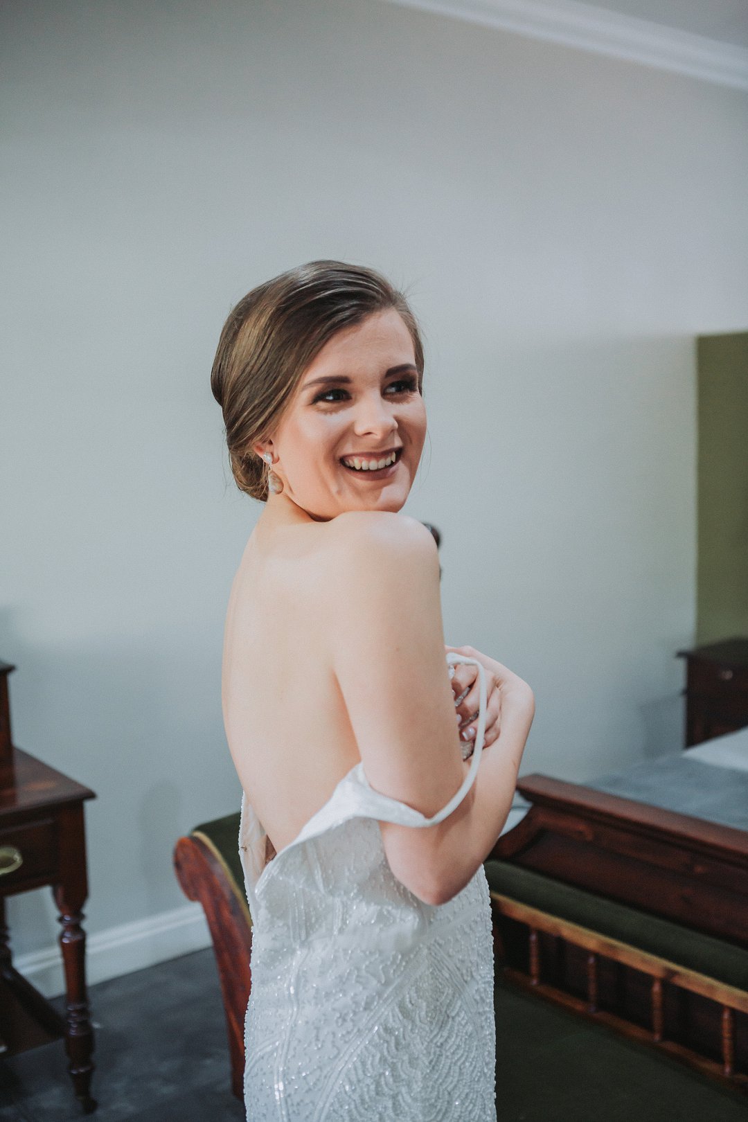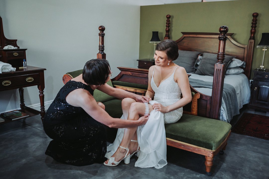 Toe ek my rok moes aantrek het ons perongeluk die zippie in die lining van my rok vas gezip, toe sit hy halfpad op gezip vas. Ons het seker 20 minute gesukkel om dit los te kry … Ek het al begin dink ons gaan die rok aan my moet vas steek met haakspelde. Gelukkig is my ma altyd voorbereid vir die ergste en het sy ʼn naaldwerk stelletjie in die kar gehad. Met haar en my twee sussies se hulp kon ons darem die zippie loskry. Maar as ek eerlik moet wees was die bruidjie half paniekerig vir ʼn oomblik.