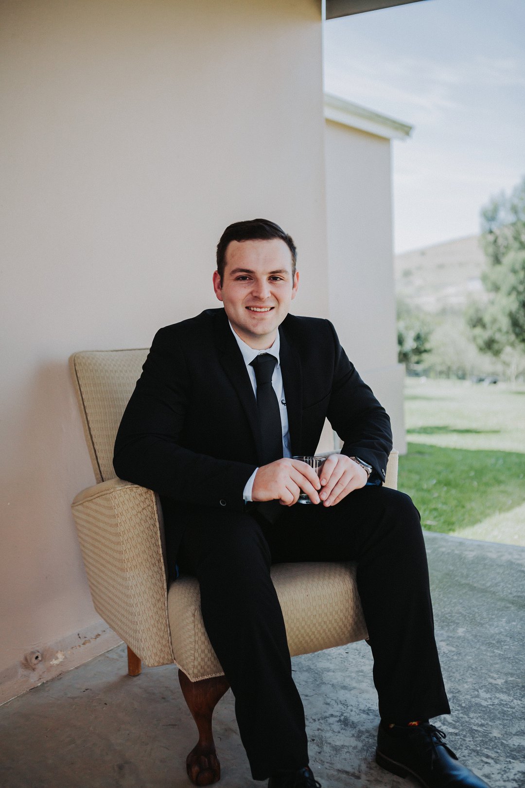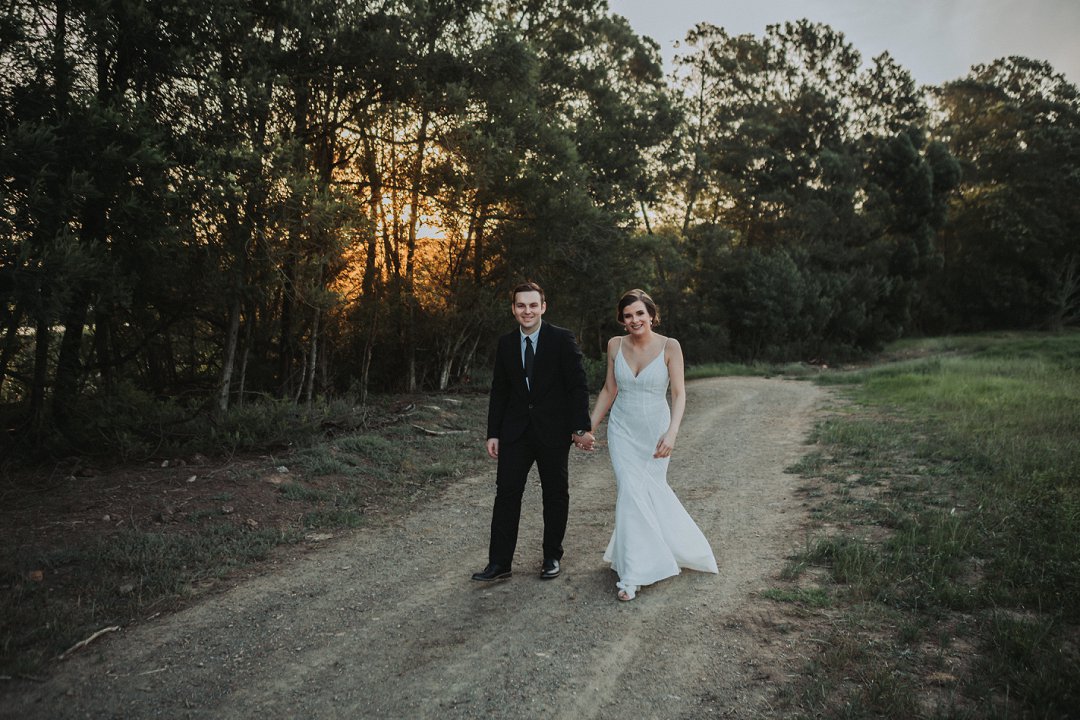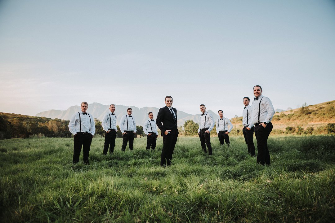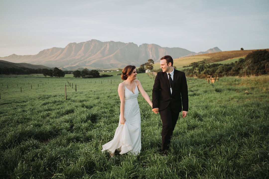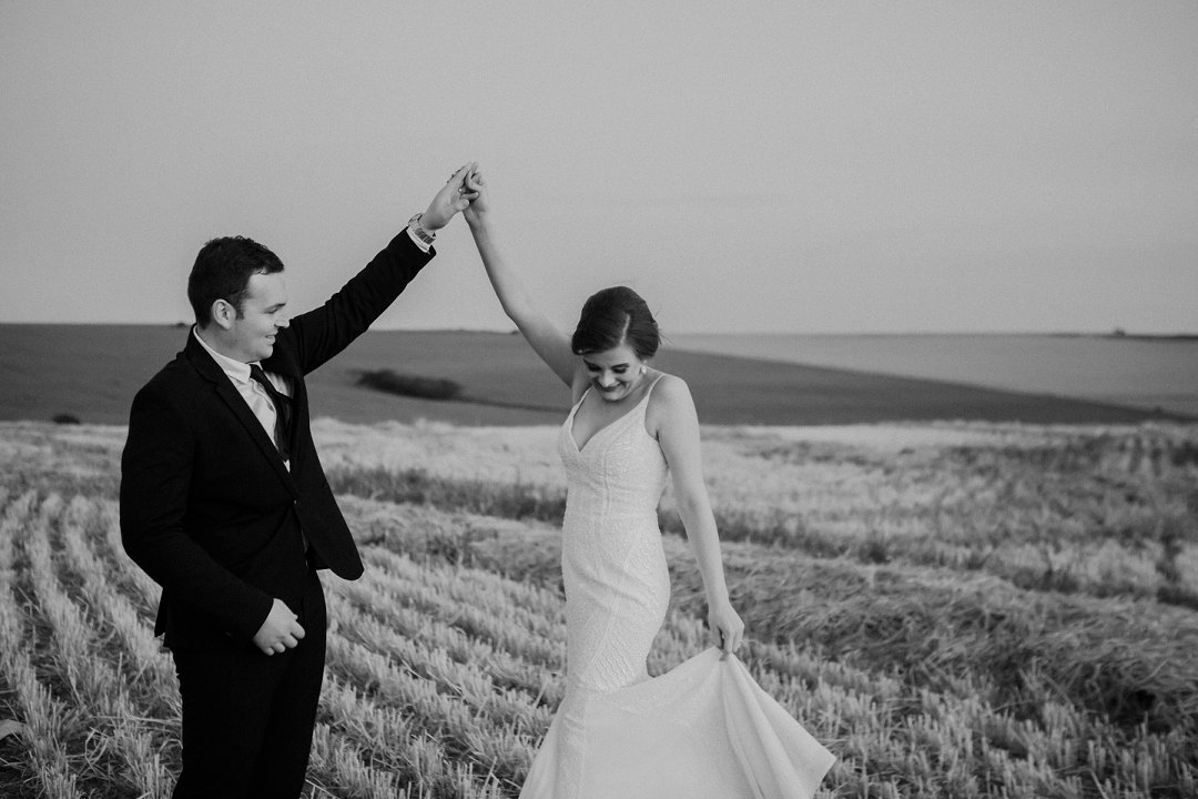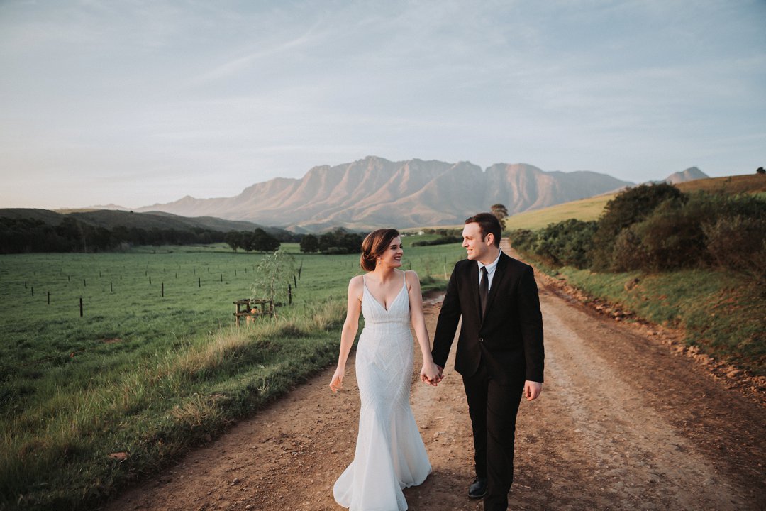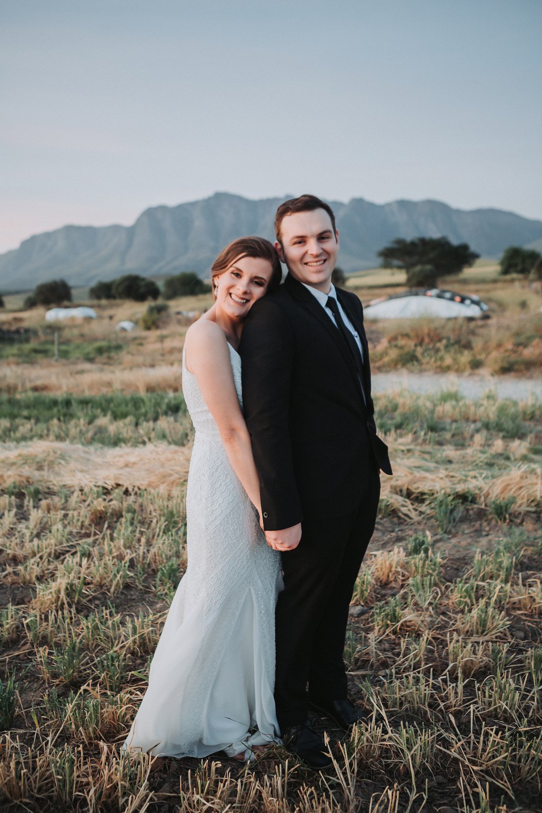 Die paartjie se buitelug seremonie was net so mooi. Hulle het die pragtige landskappe van die plaas waar hul getrou het goed benut in hul fotosessie. Nie net die pragtige groenigheid en grondpad nie, maar ook die berge en sagte sonlig in die agtergrond het gemaak vir die mooiste paartjie foto’s.