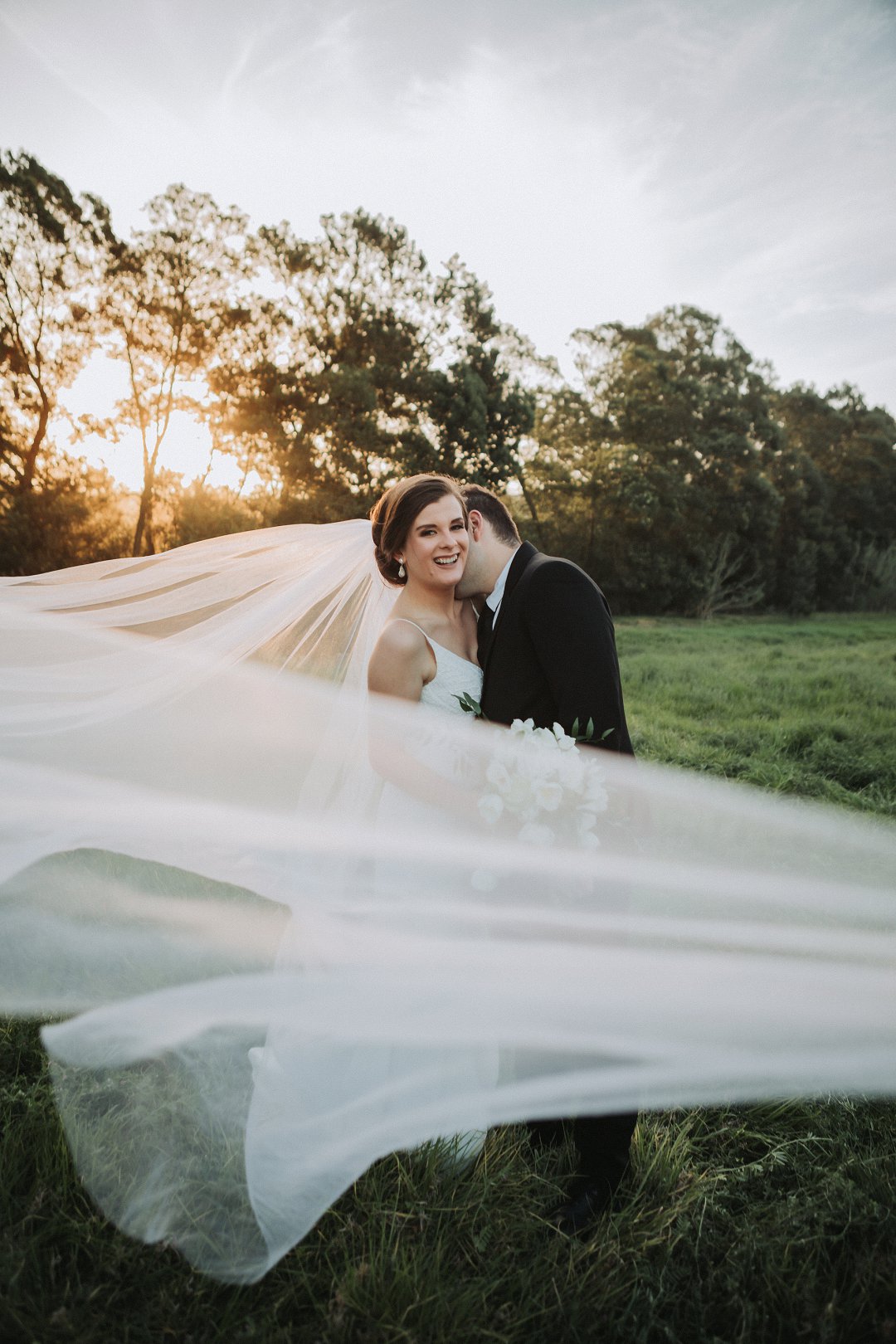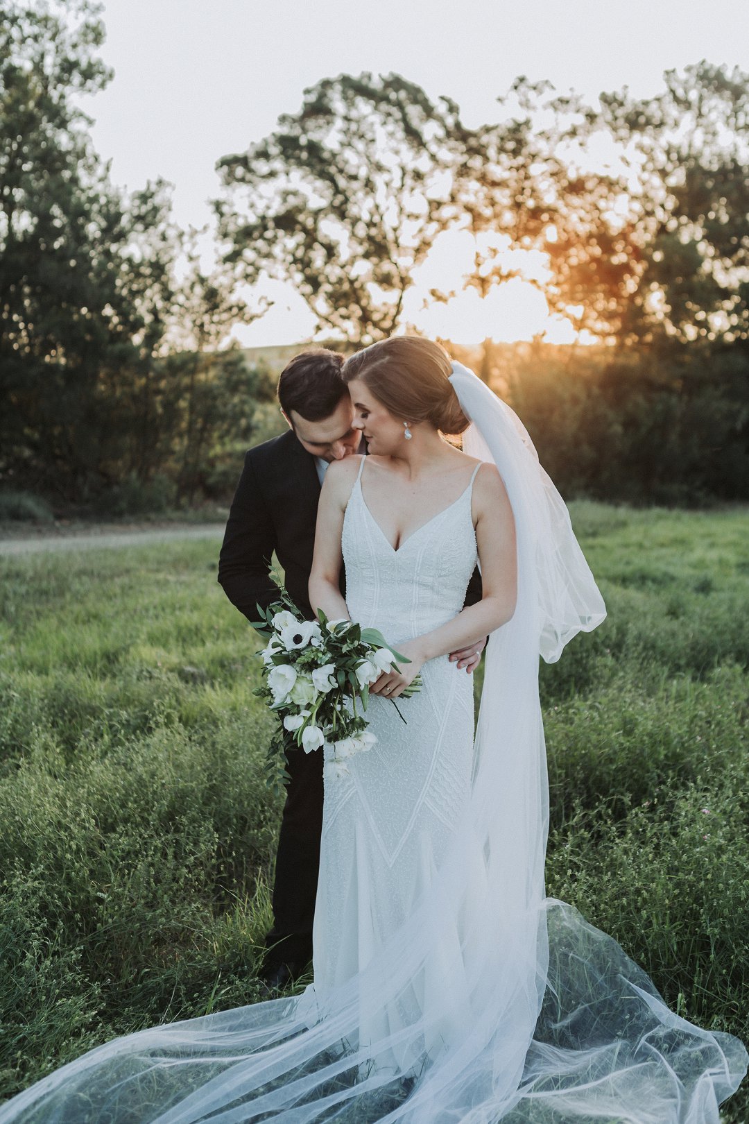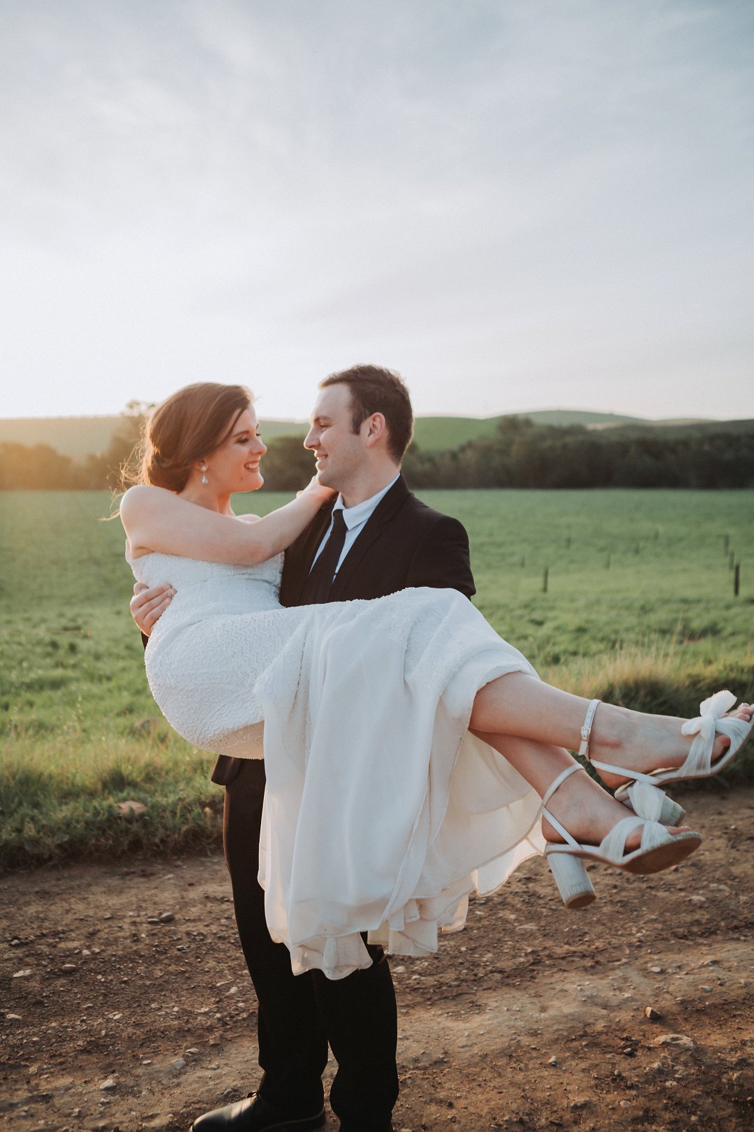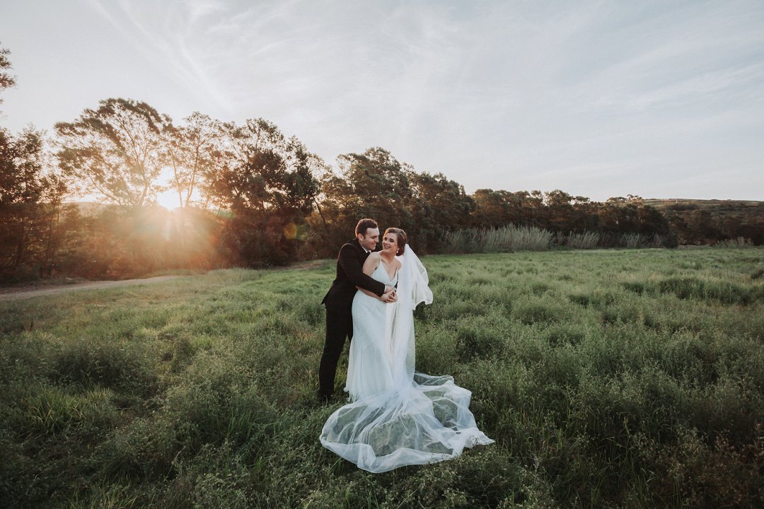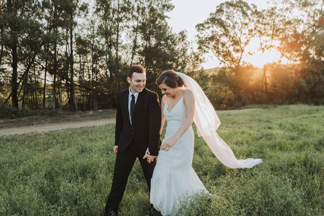 Die paartjie se buitelug seremonie was net so mooi. Hulle het die pragtige landskappe van die plaas waar hul getrou het goed benut in hul fotosessie. Nie net die pragtige groenigheid en grondpad nie, maar ook die berge en sagte sonlig in die agtergrond het gemaak vir die mooiste paartjie foto’s.
