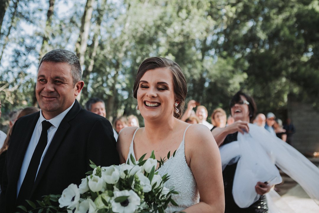 My pa wat my in die paadjie af stap was vir my ʼn baie spesiale tradisie en groot voorreg. Ons het ook die tradisionele Pa-en-Dogter en Ma-en-Seun danse gedoen. Ons het die ruiker en kousband later die aand gegooi. My sussie het die ruiker gevang en haar kêrel die kousband! So, ons sien uit na die volgende familie troue!