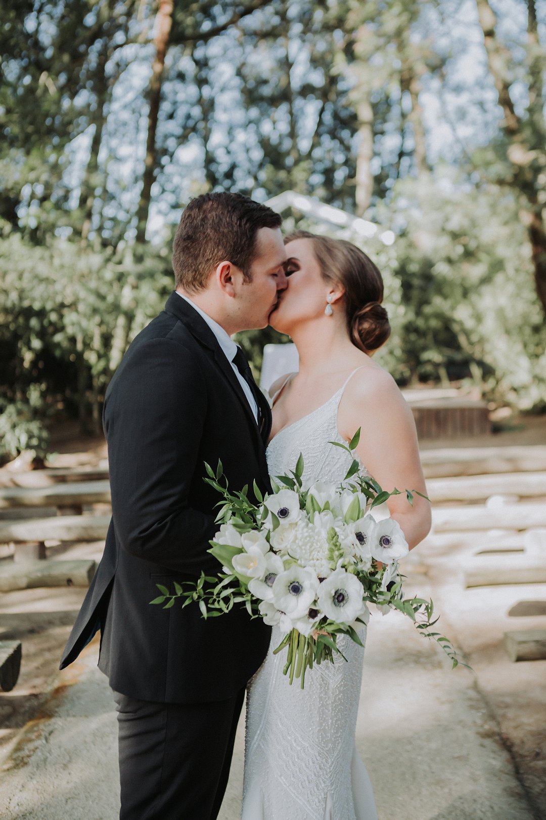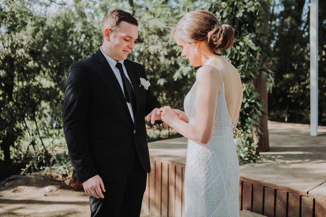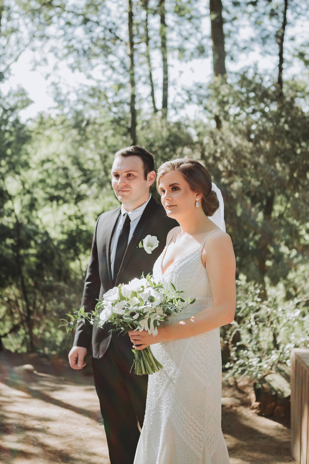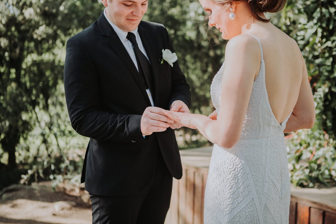 Stephanie het beeldskoon gelyk op haar troudag en so ook haar bruidegom, Inus, dapper in sy swart troupak. Haar mooi fyn trouring was ontwerp deur die talentvolle Viljoen Juweliers, wat kenners is in die veld van juweliersware. Mooi Troues se bruide ondersteun gereeld vir Viljoen Juweliers wat gebaseer is in Worcester, maar vir paartjies reg oor Suid Afrika pragtige juweliersware insluitende verloofringe, trouringe en meer ontwerp.
