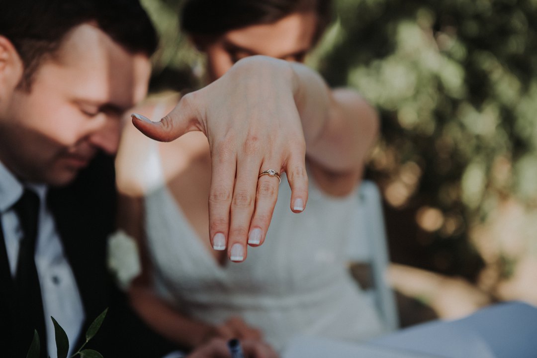 Ons trouringe spreek ook van daai minimalistiese styl, met ʼn erfstuk diamant vir my verloofring met net ʼn eenvoudige goue pandjie.