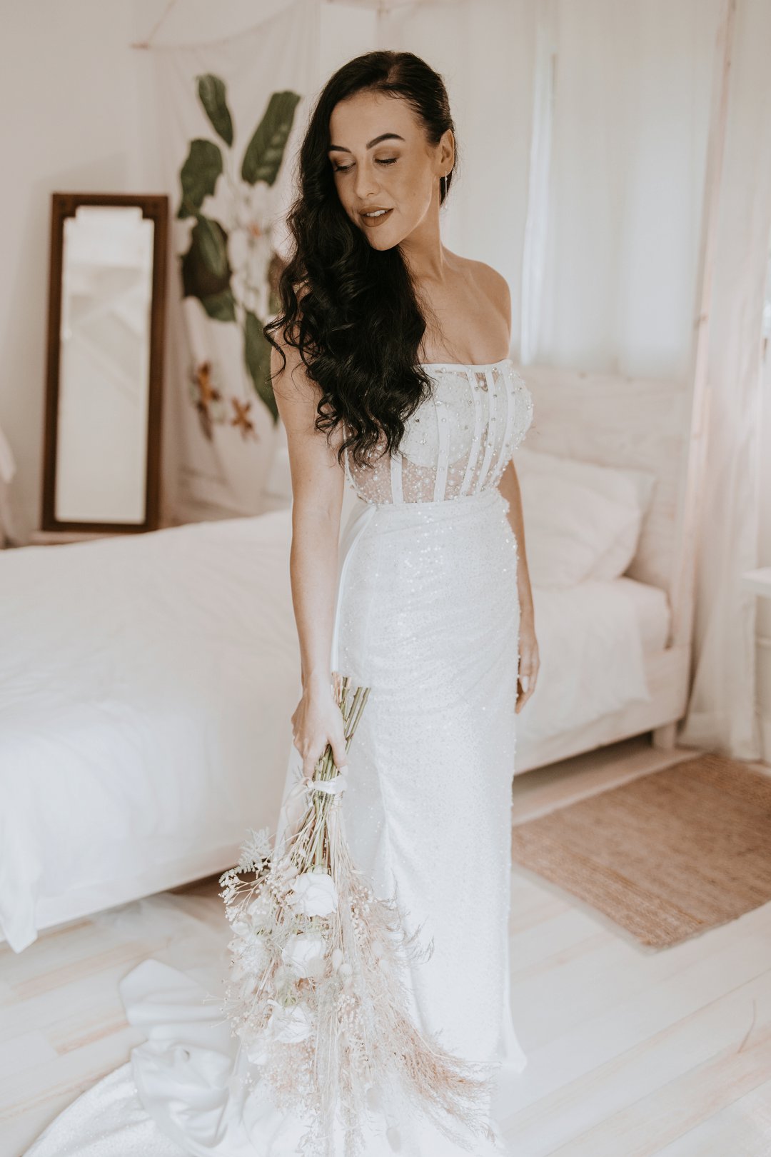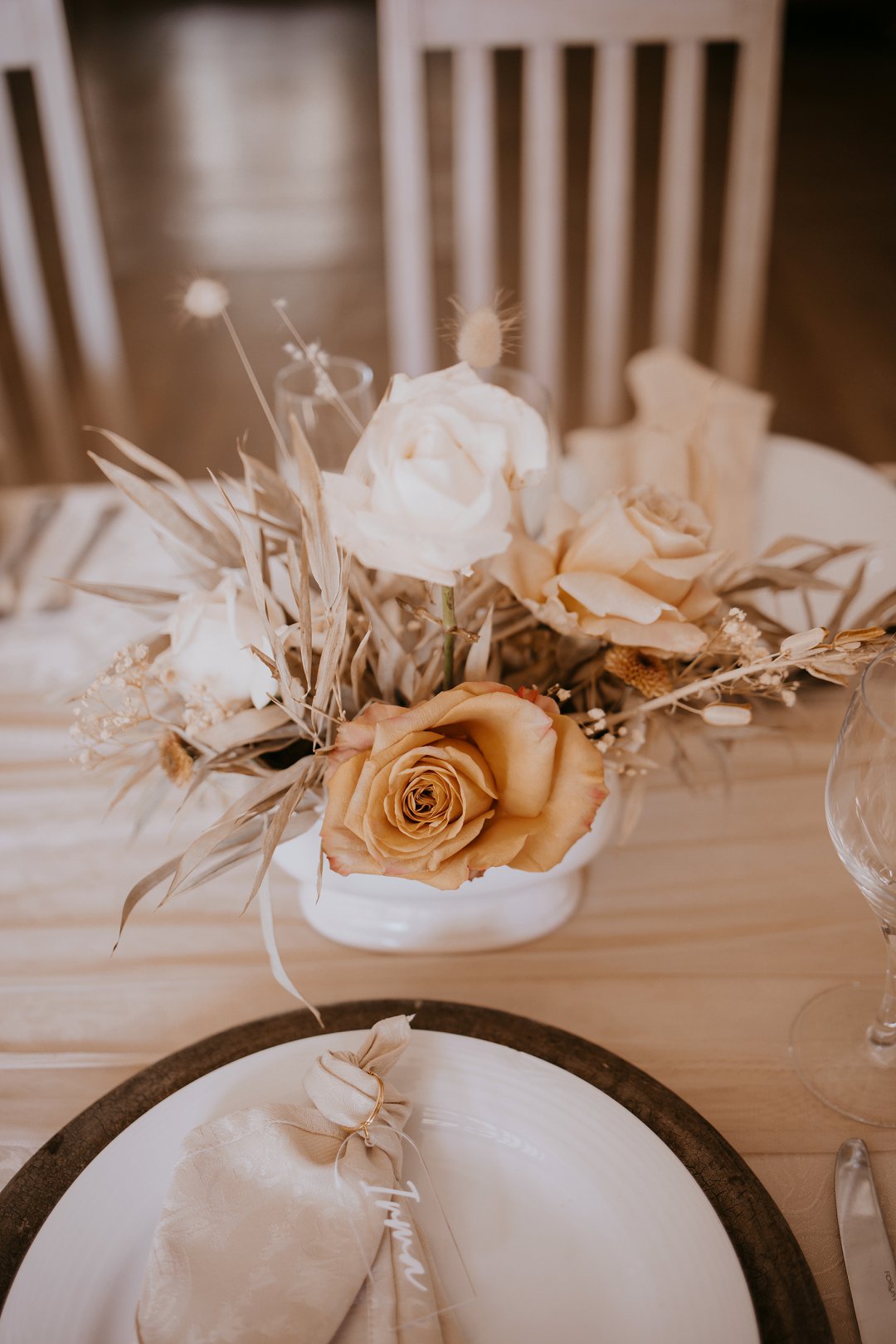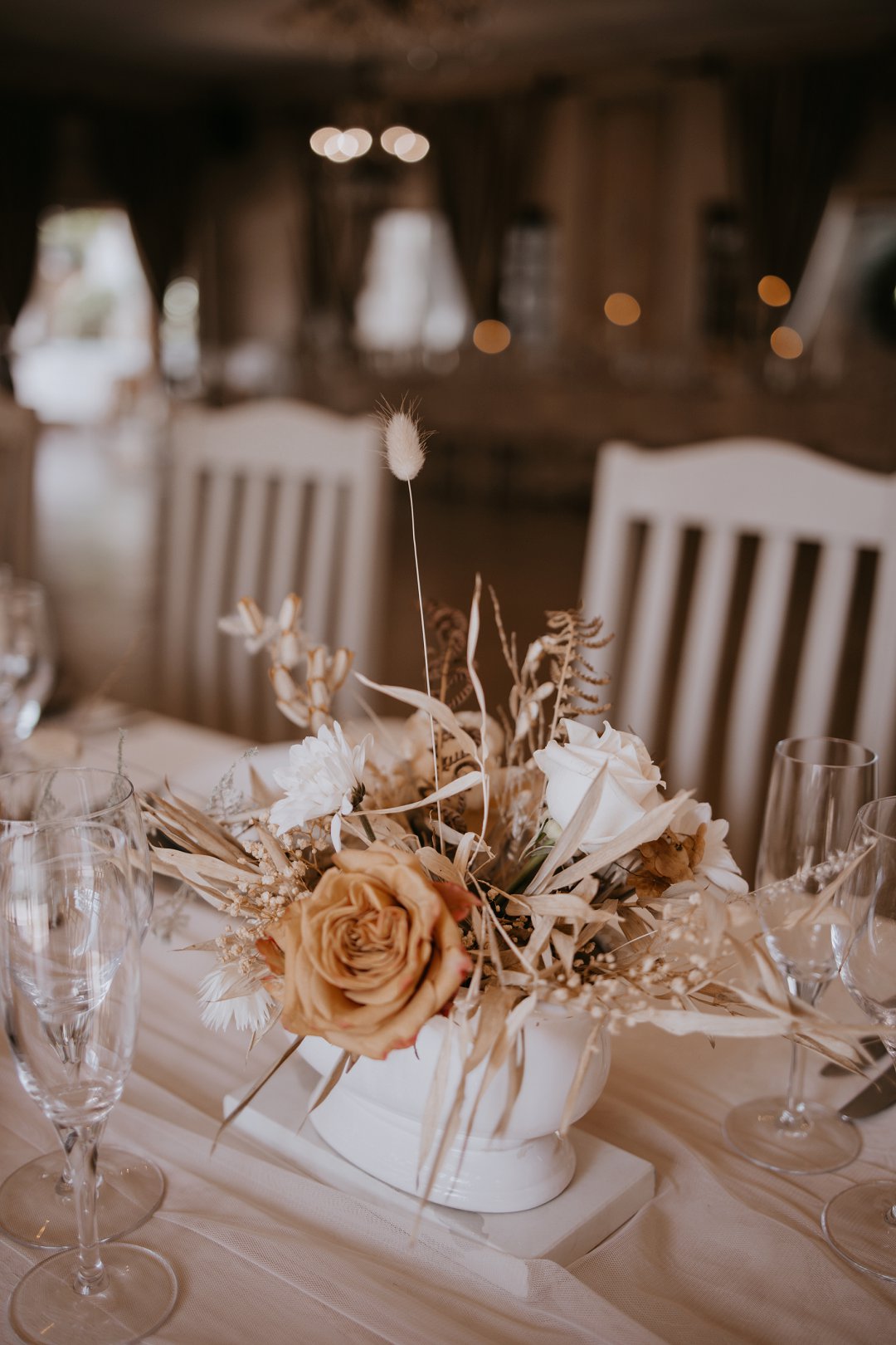 Ons dekor inspirasie was Minimal with forever detail. Die gedroogte blomme en plante speel op die forever, die kleure op minimal en die kerse, Zambiese rose en potjies die detail.