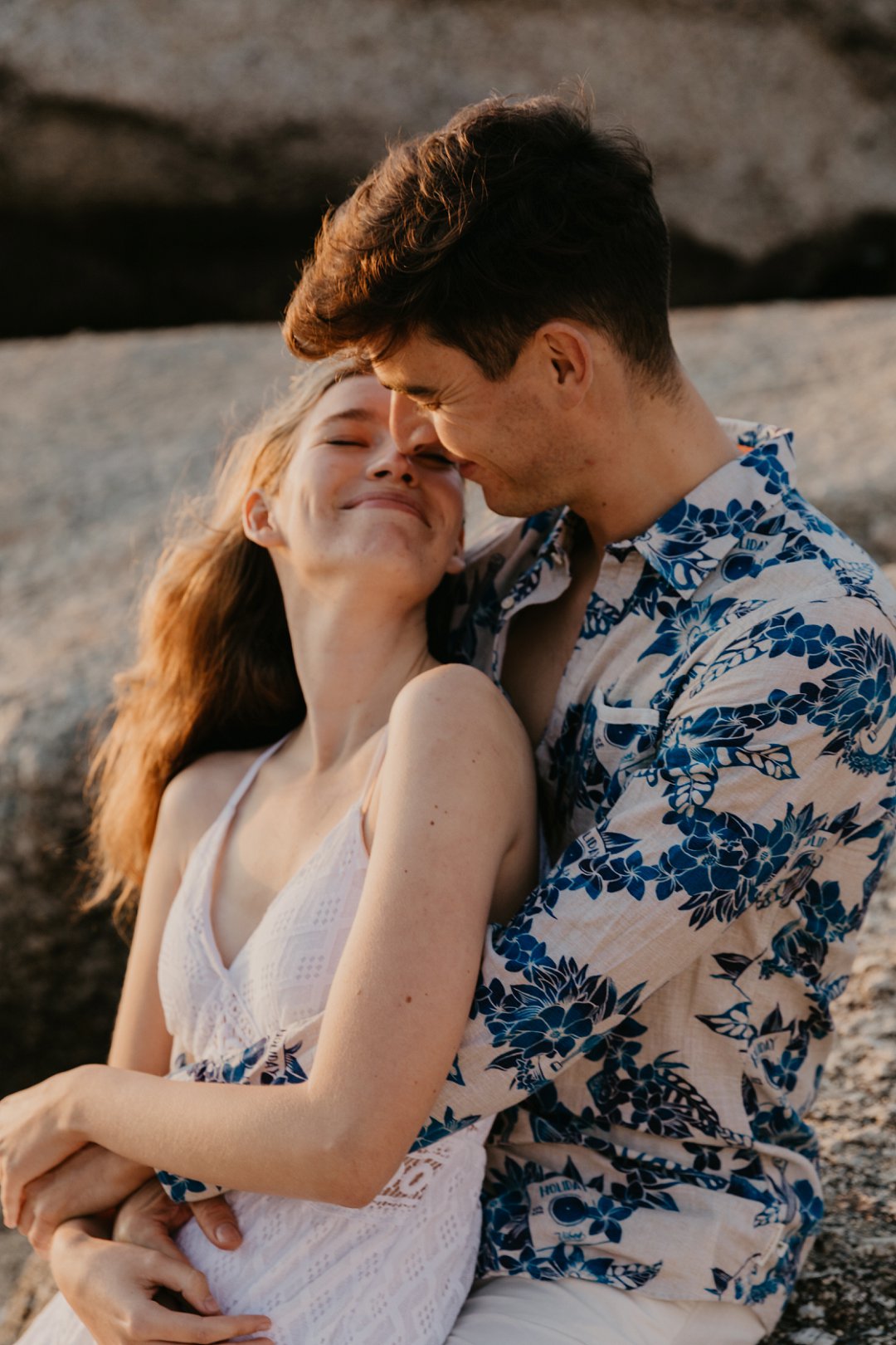 Ons wou ʼn fotosessie in een van die vele wonderlike liggings rondom Kaapstad doen. Ons het uiteindelik in Maiden’s Cove tydens die goue uur die fotosessie gedoen. Alles was in lyn om dit perfek te maak. Ons, die fotograaf, die ligging, die liefde …