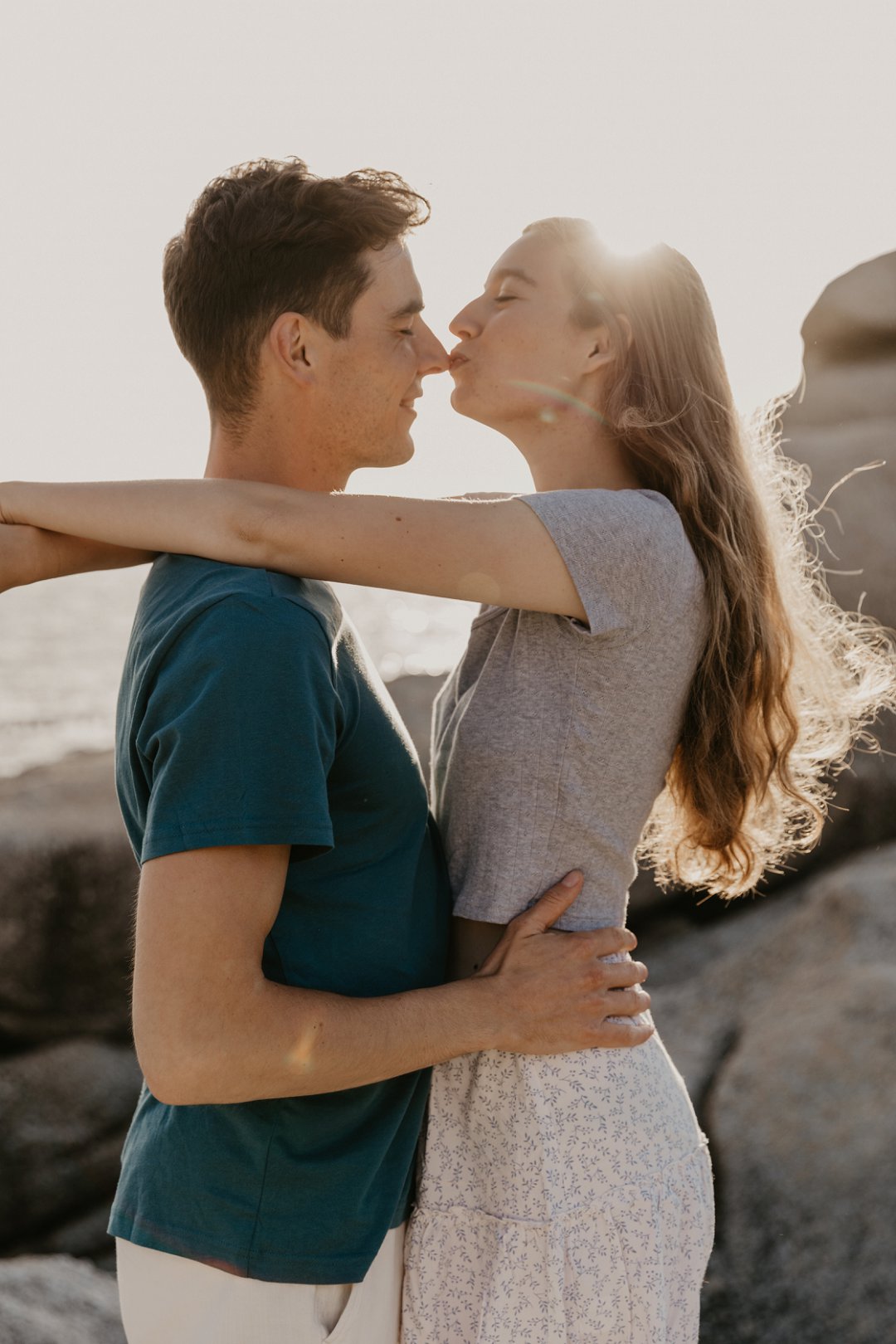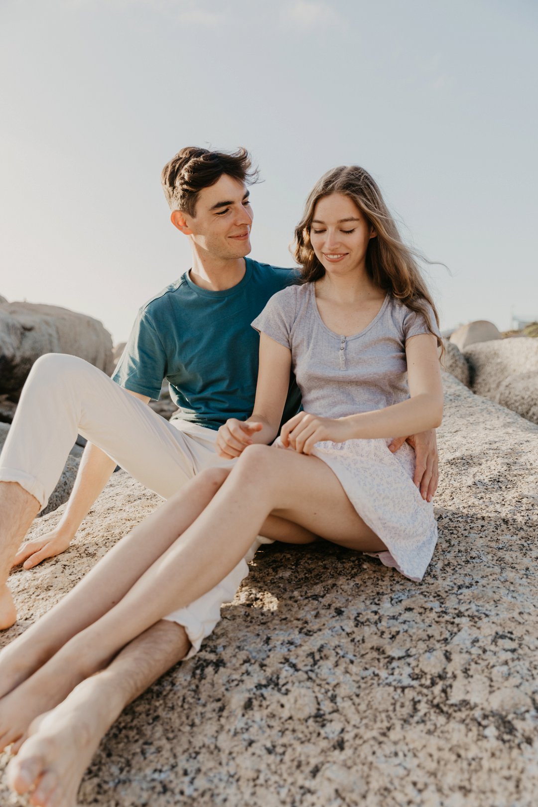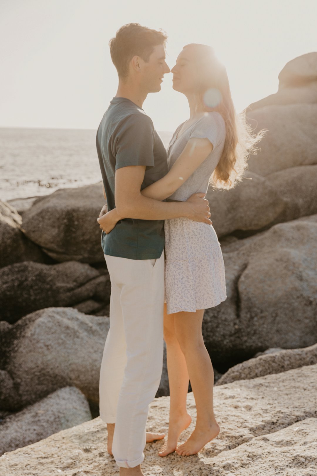 Ons wou ʼn fotosessie in een van die vele wonderlike liggings rondom Kaapstad doen. Ons het uiteindelik in Maiden’s Cove tydens die goue uur die fotosessie gedoen. Alles was in lyn om dit perfek te maak. Ons, die fotograaf, die ligging, die liefde …